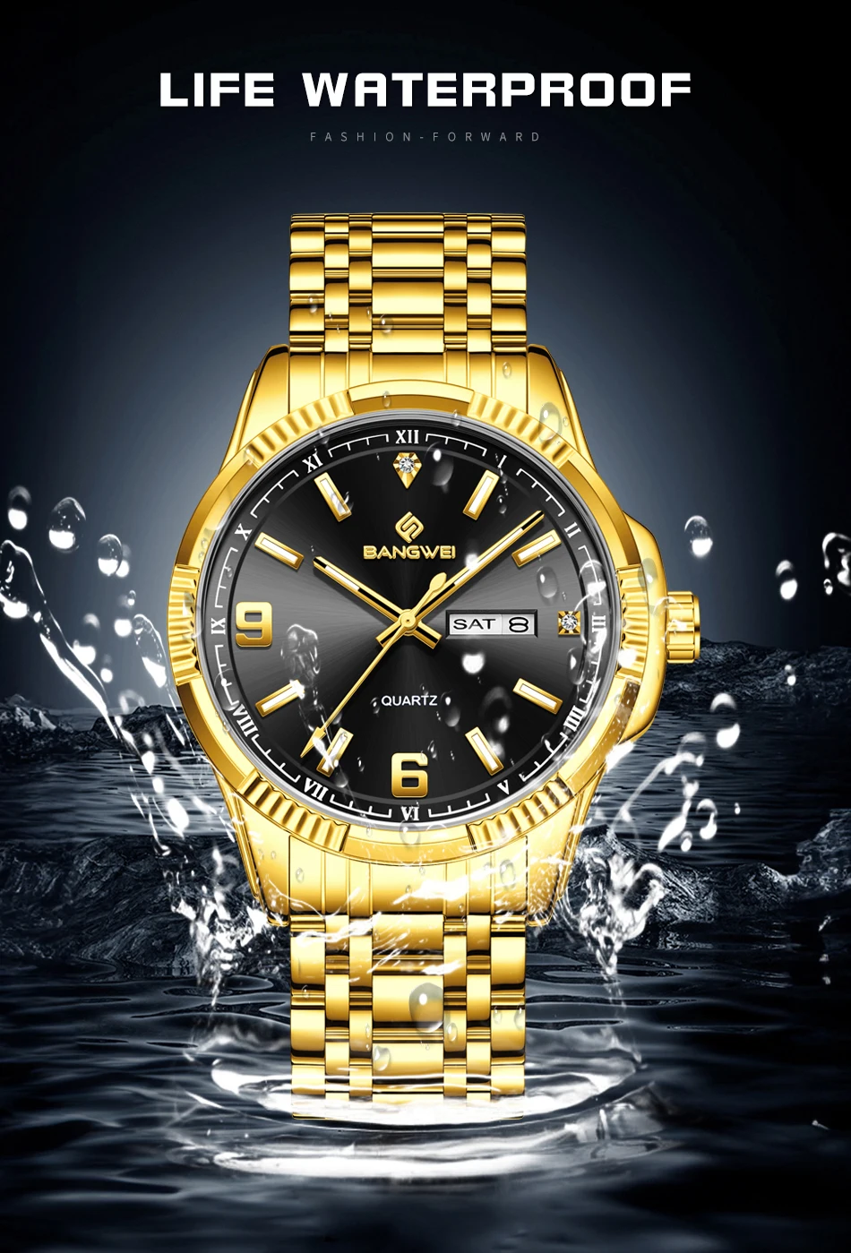 BANGWEI 2026 male watch quartz luminous calendar Men’s watches business casual male watch waterproof fashion men sports watches