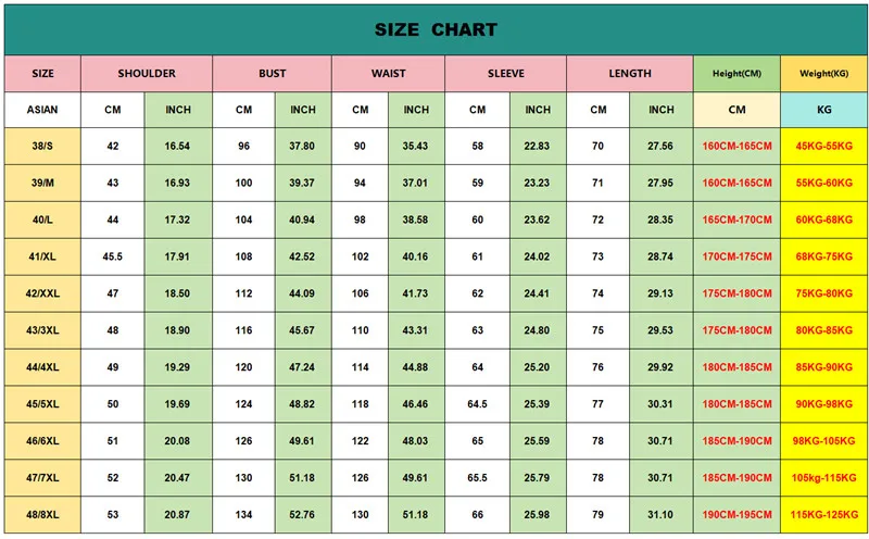 {"sizeInfoList":[{"length":{"cm":"42","inch":"16.54"},"size":"38 Size 160CM 50KG","vid":-108},{"length":{"cm":"43","inch":"16.93"},"size":"39 Size 160CM 60KG","vid":-109},{"length":{"cm":"44","inch":"17.32"},"size":"40 Size 170CM 68KG","vid":-110},{"lengt