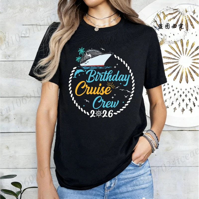 Birthday Crew 2026 Shirts,My Birthday Cruise Crew T-Shirts for Women,Family Party Tops Tees,Friends Cruise T-Shirts,short Sleeve
