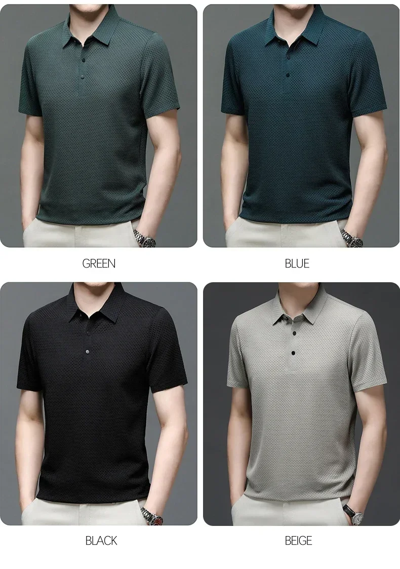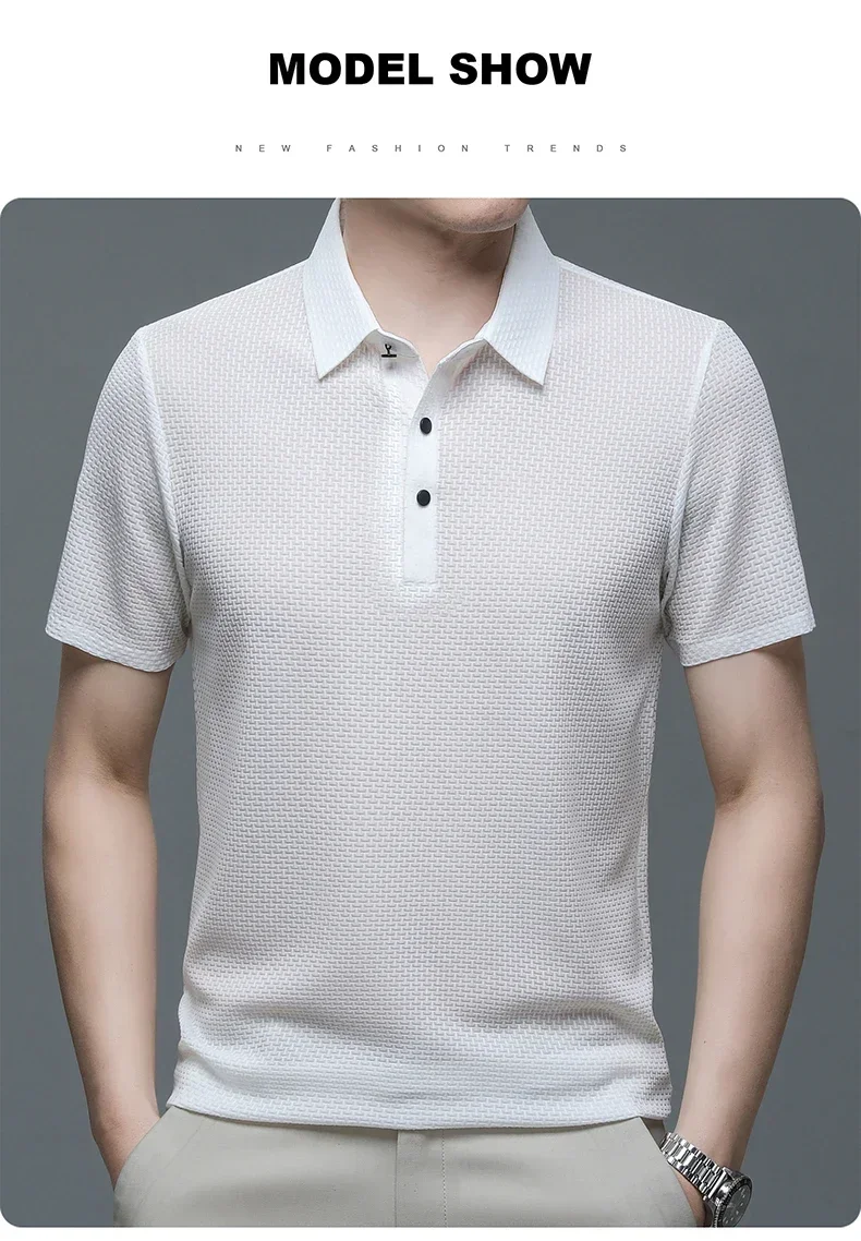 Brand Clothes Summer New Men’s Short Sleeve T-shirt Ice Silk Cool and Breathable POLO Shirt Business Casual Sweat-absorbing Top