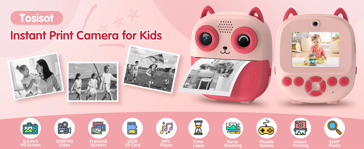 Camera Instant Print, Multifunctional Toddler Camera with Photo Printing Instantly, 2.4 Inch HD Screen Digital Camera for Photo