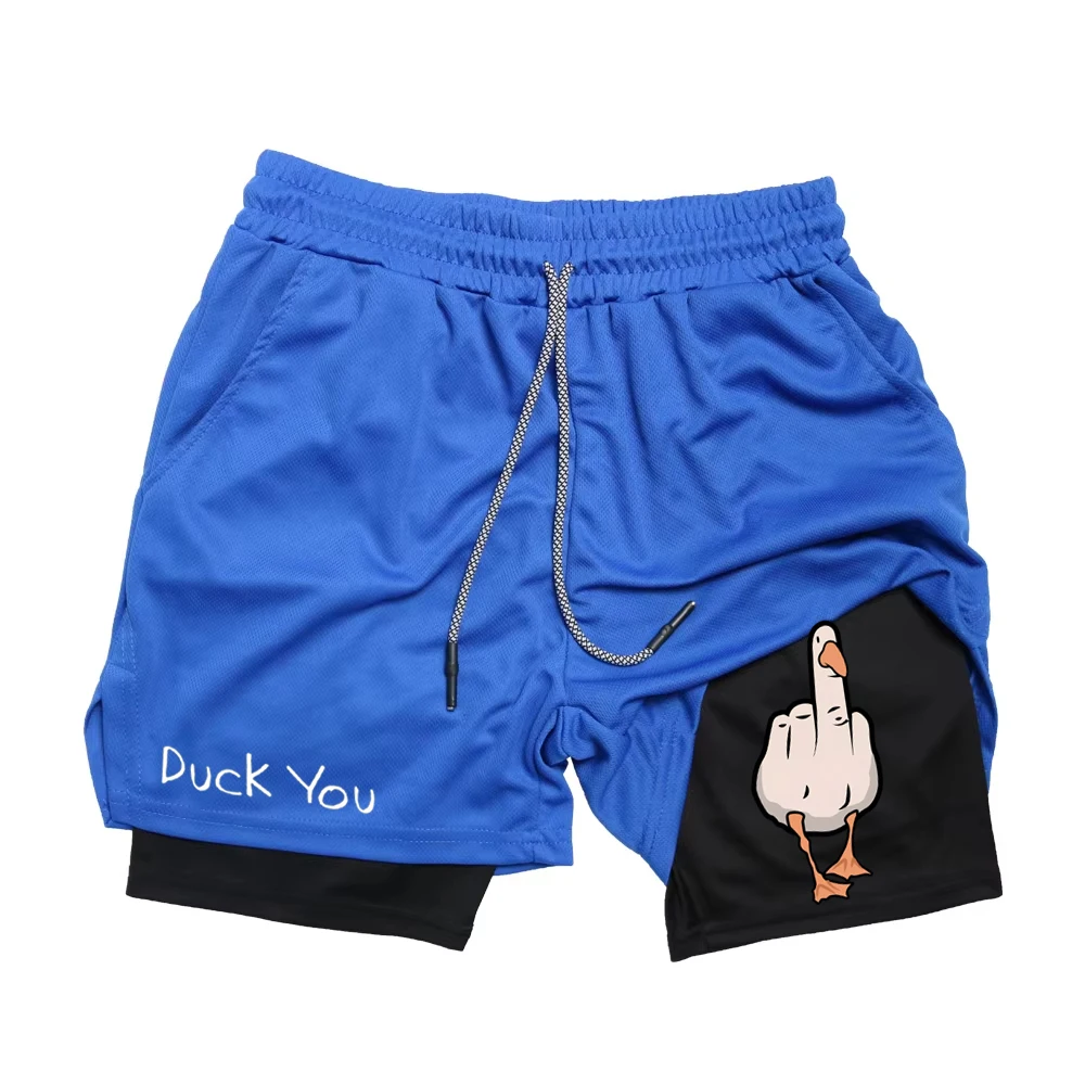 Cartoon Duck Print Men’s Shorts Summer Double Layer Letter Print Quick Drying Pants Fitness Tracksuit Beach Short Pants RL0358