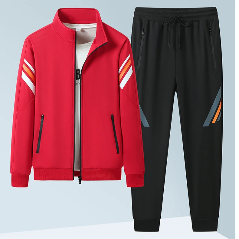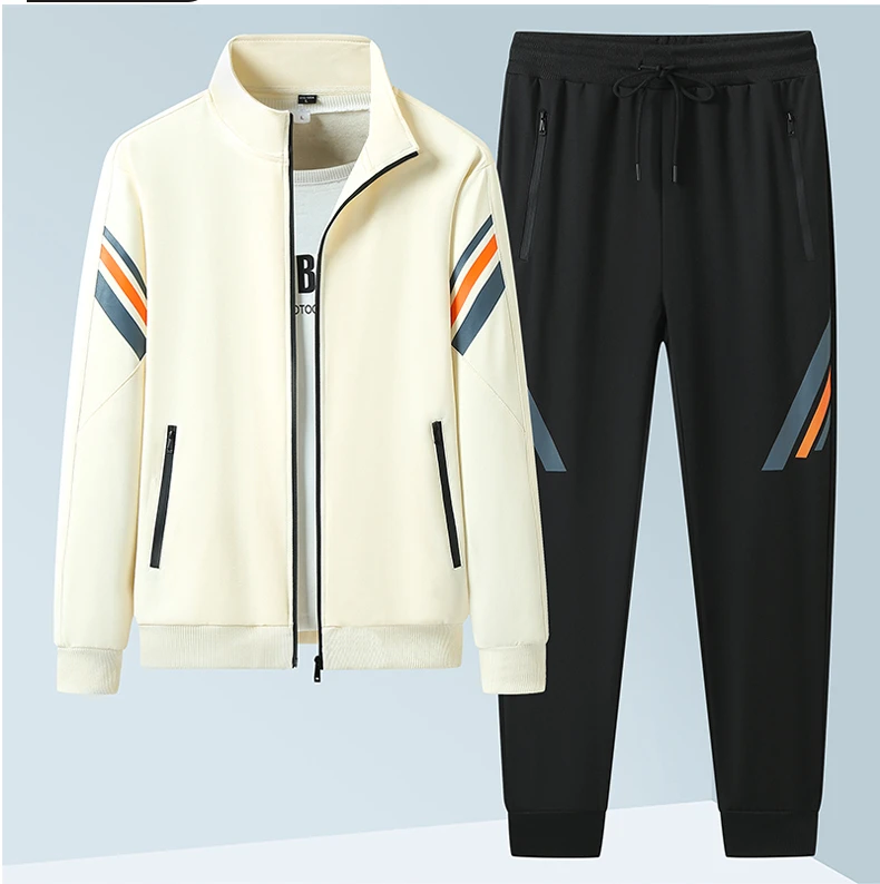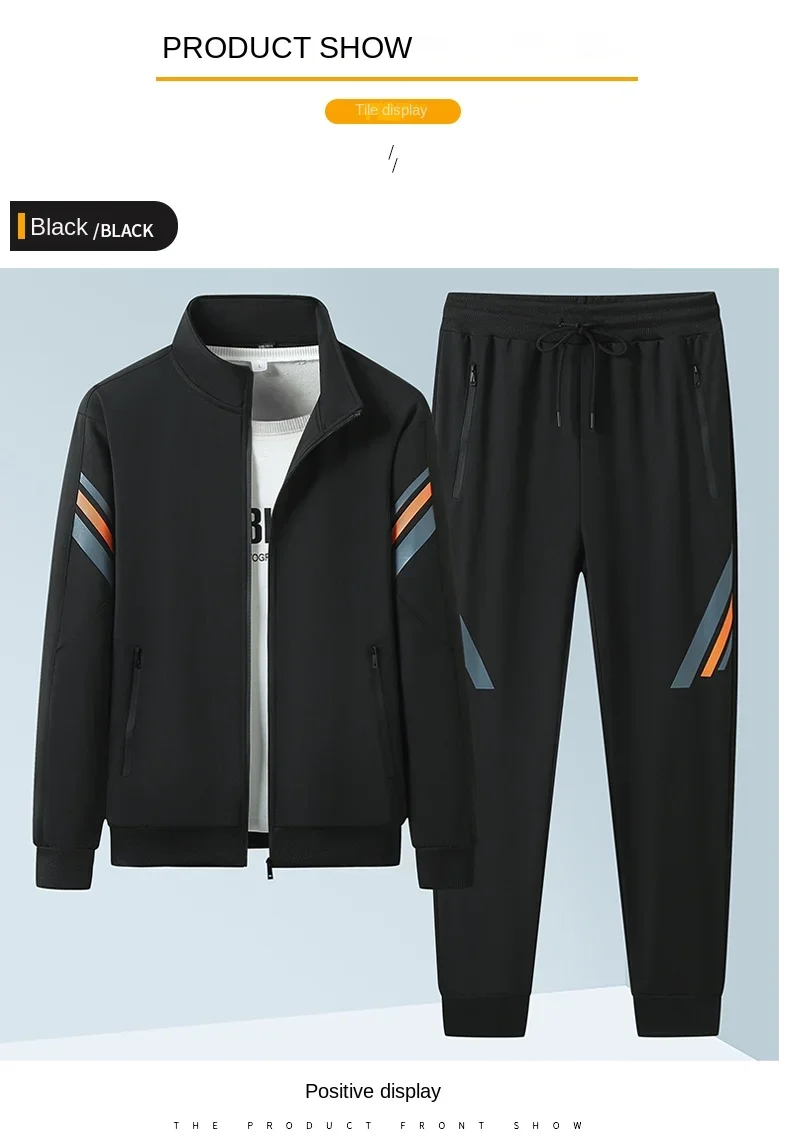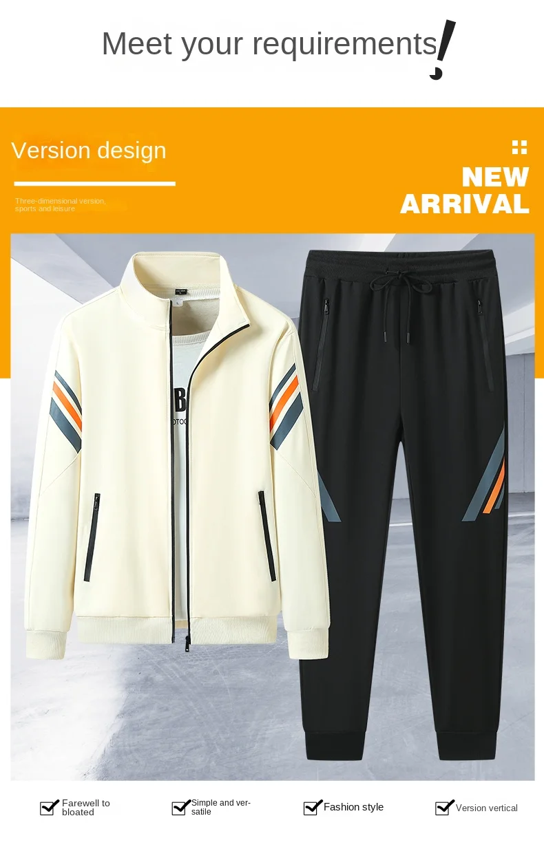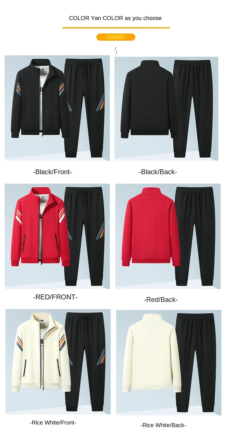 Casual Athletic Sweater Trouser Long Sleeve Sweatsuits Suit Men Sport Cardigan Stand Collar Sweatshirts Pant Sweatpants 2Pcs Set