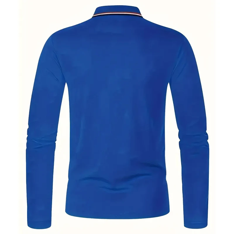 Casual Men’s Long Sleeved Polo Shirt with Solid Color and Polyester Fiber Composition for Spring Fashion Outings