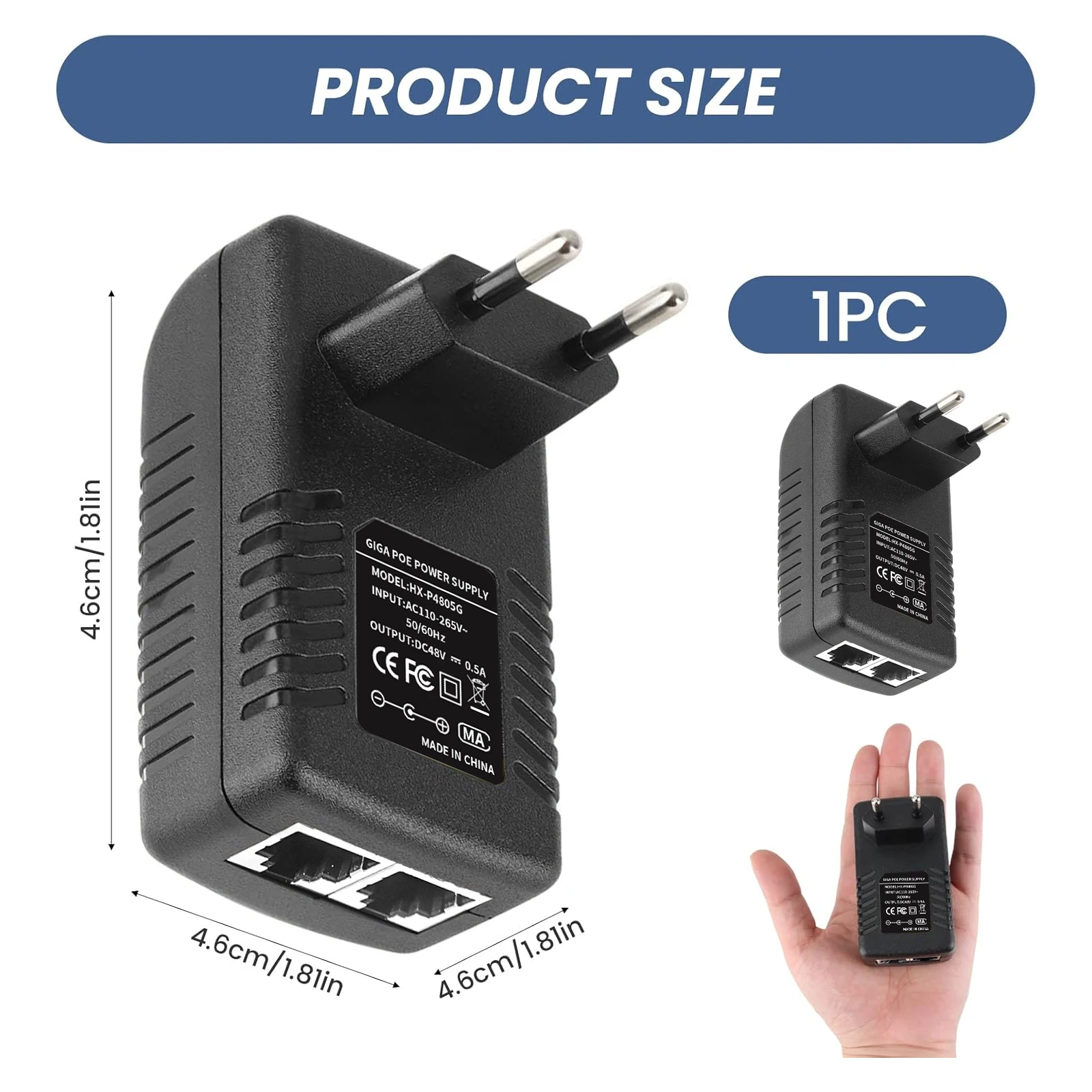 1 * DC 48V 0.5A POE power ( EU OR US plug 100Mbp OR 1000Mbp for Optional )