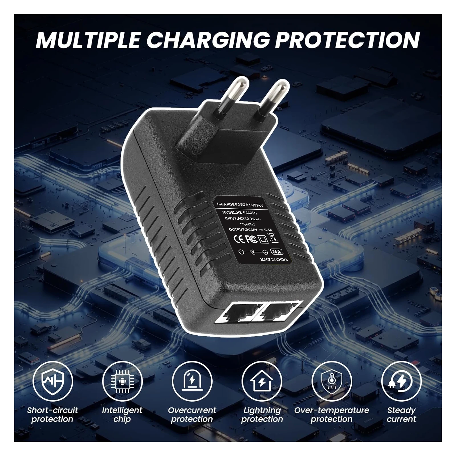 48v-0.5a wall plug poe injector Ethernet adapter IP camera power US / EU plug