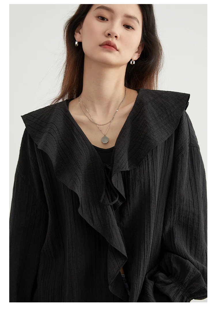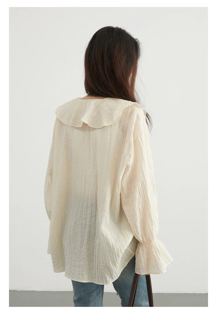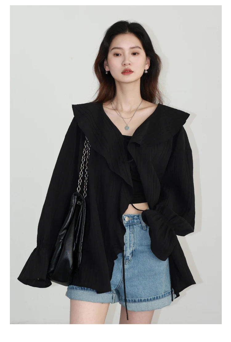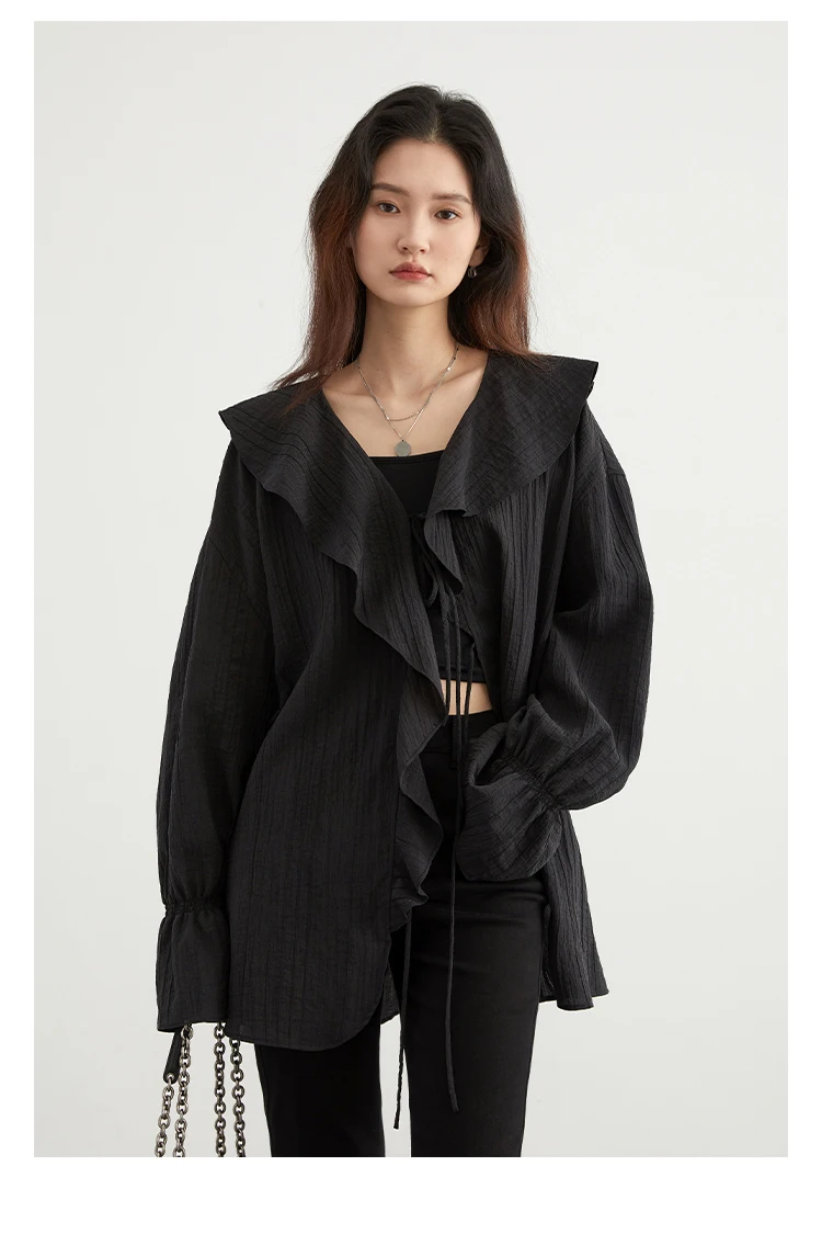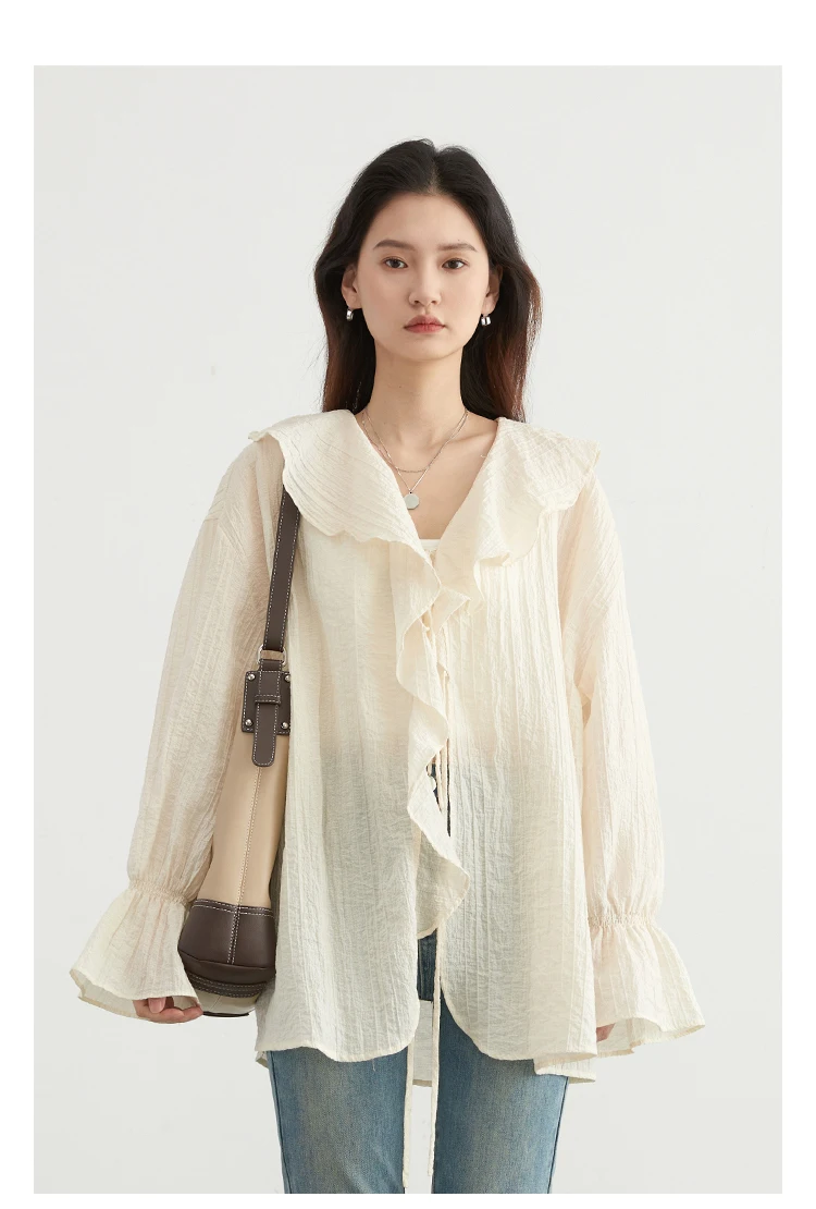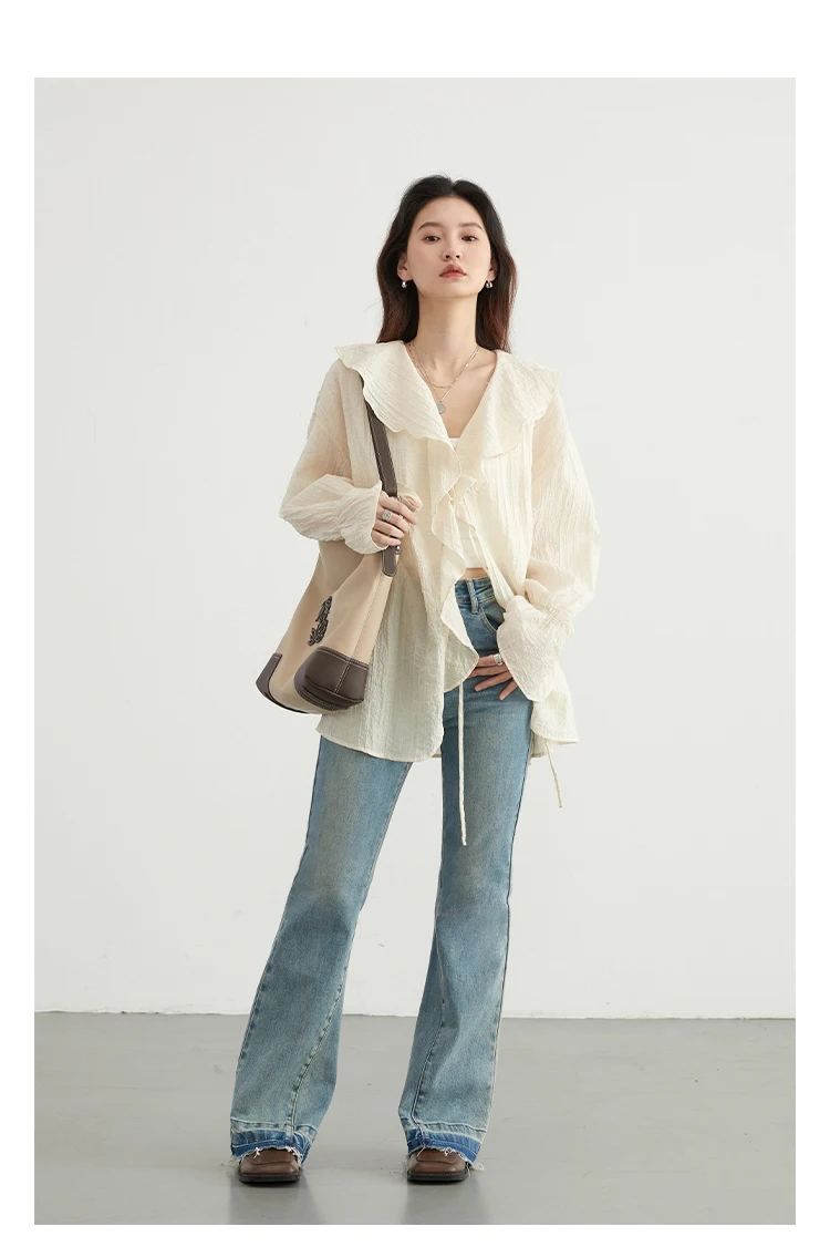 CHIC VEN Women Shirt Loose Casual Ruffled Edges Female Blouses V Neck Lace Up Mid Length Woman Shirts Spring Summer 2026