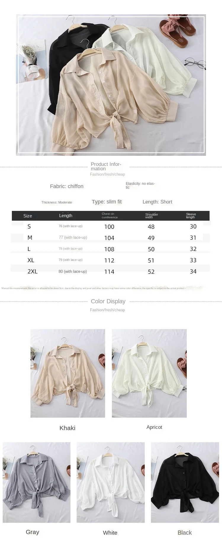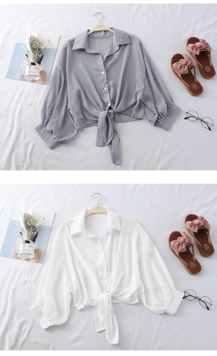 Chiffon Shirts Women 2022 Summer Half Sleeve Buttoned Up Shirt Loose Casual Blouse Tie Waist Elegant Blouses for Women