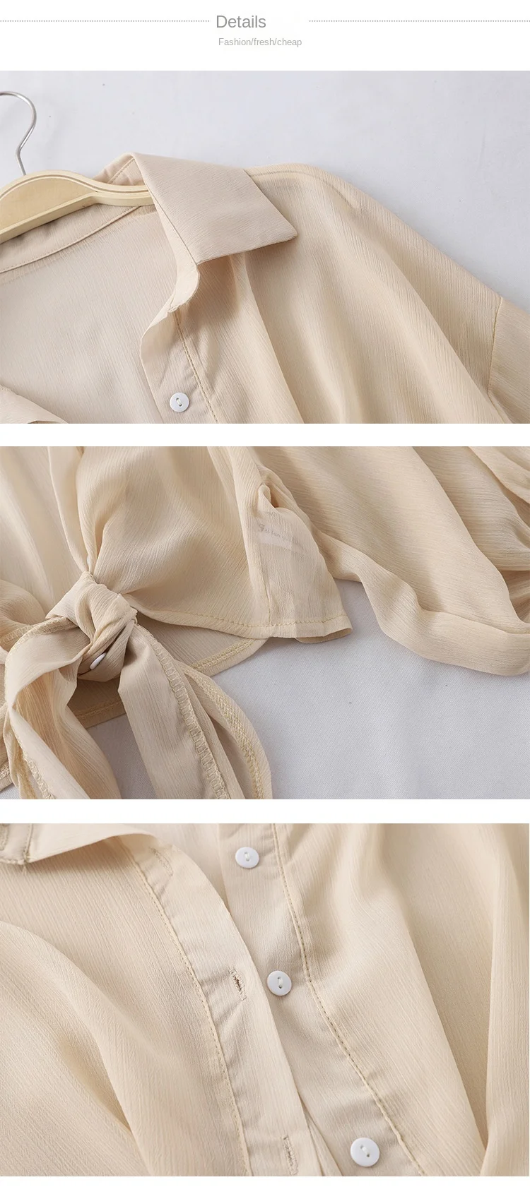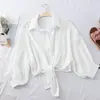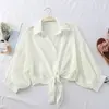 Chiffon Shirts Women 2022 Summer Half Sleeve Buttoned Up Shirt Loose Casual Blouse Tie Waist Elegant Blouses for Women