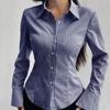 Classic Striped Long Sleeved Blouse Patchwork Single-breasted Stripe Shirts for Women Simple Korean Style Retro Chic Tops