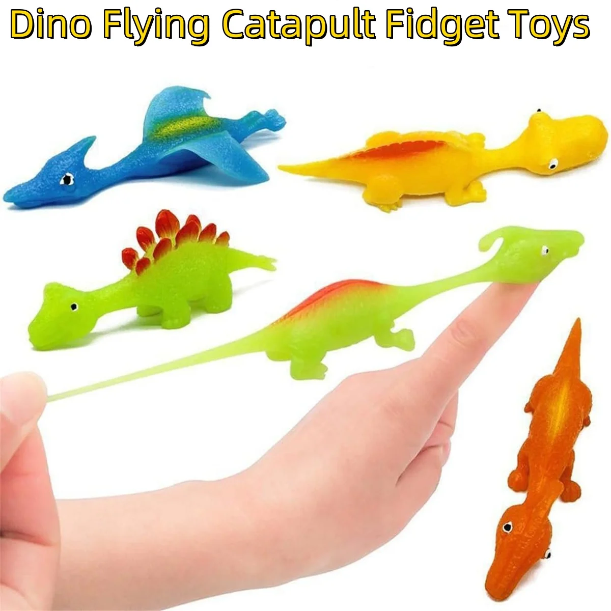 Colorful Dinosaur Finger Catapult Toys Party Favors Sticky Rubber Dino Flying Catapult Fidget Toys for Kids Birthday Party Gifts