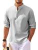 Cotton Linen Hot Sale Men’s Long-Sleeved Shirts Spring Autumn Solid Color Stand-Up Collar Casual Beach Style Plus Size S-5XL