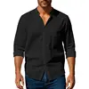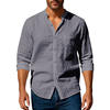 Cotton Linen Shirt for Men Henley Neck Solid Color Lightweight Breathable Single Breasted Slim Fit Casual Long Sleeve Button Top
