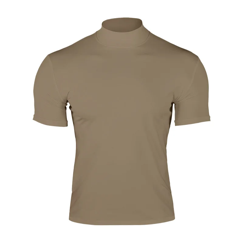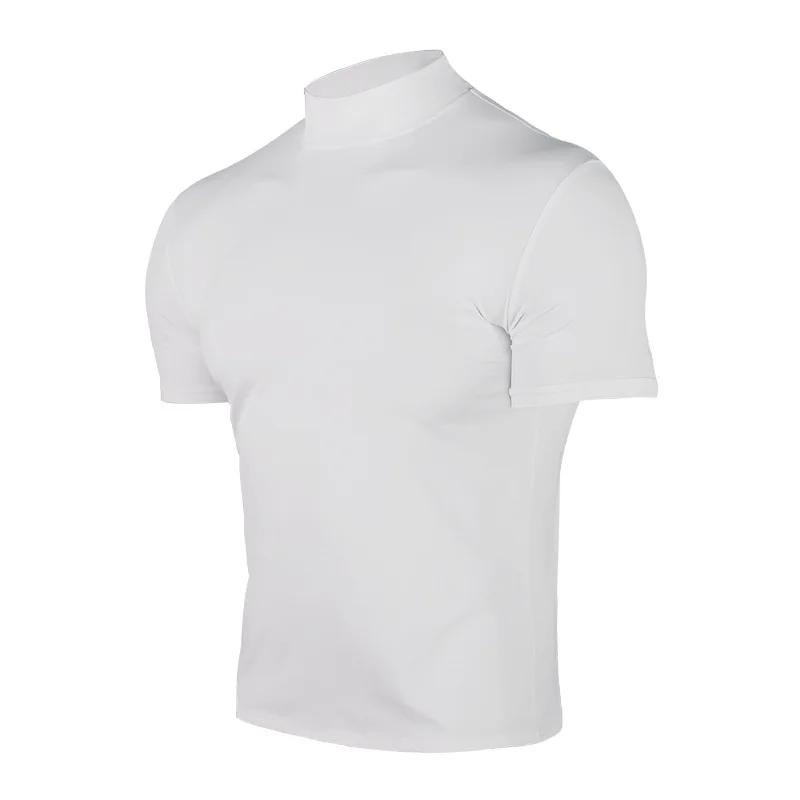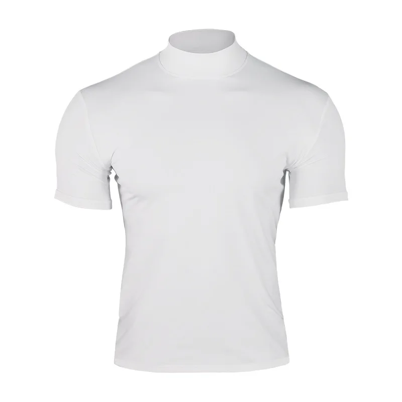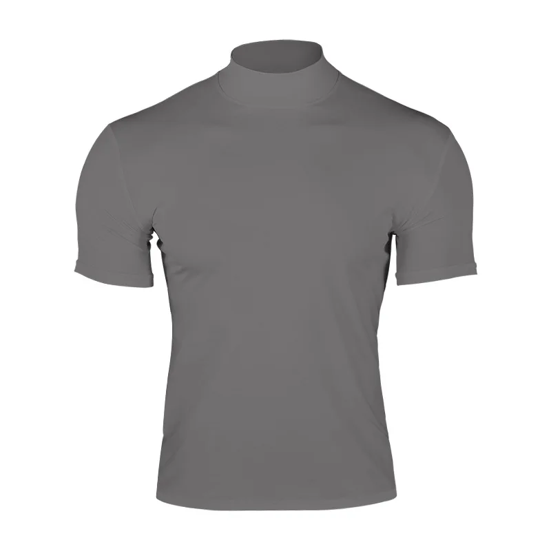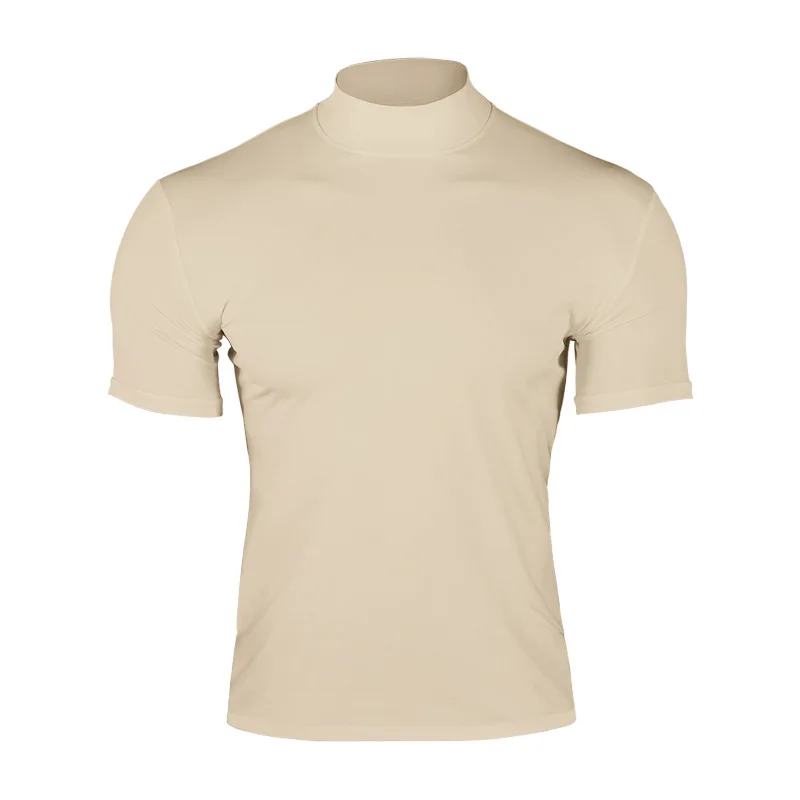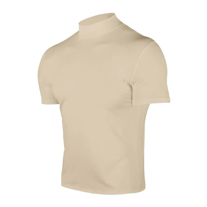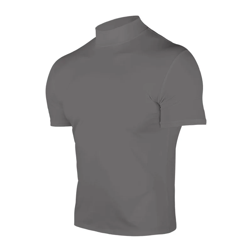 Cross-border Amazon 2024 summer solid color short-sleeved fashion bottoming shirt men’s tight turtleneck T-shirt