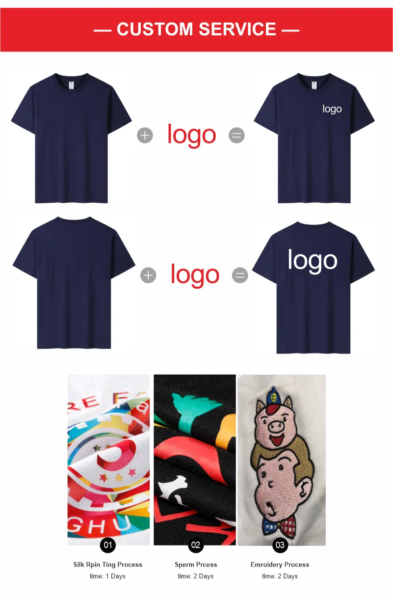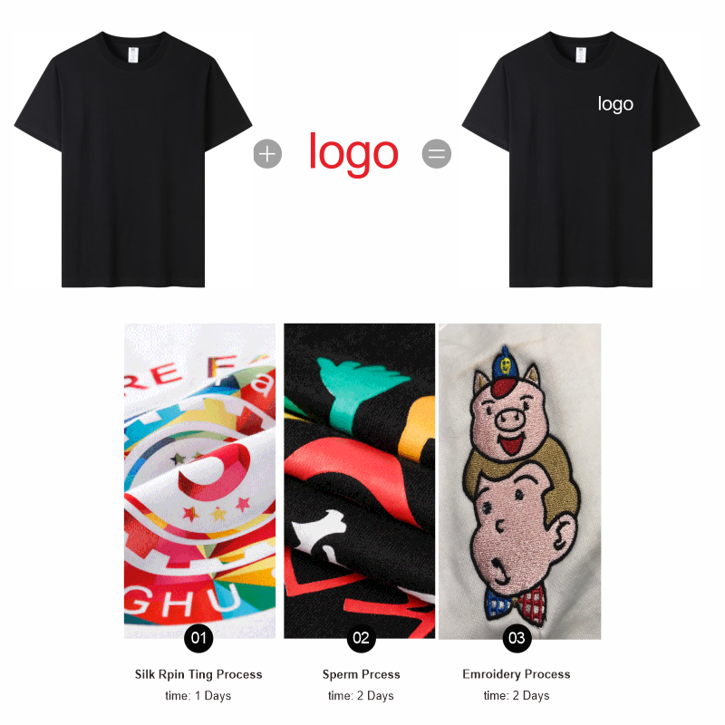 We support custom logo, embroidery, heat transfer printing, screen printing for all kinds of clothes.