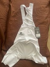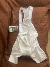 White bib shorts use grey blue color pad, the material is the same