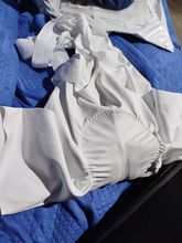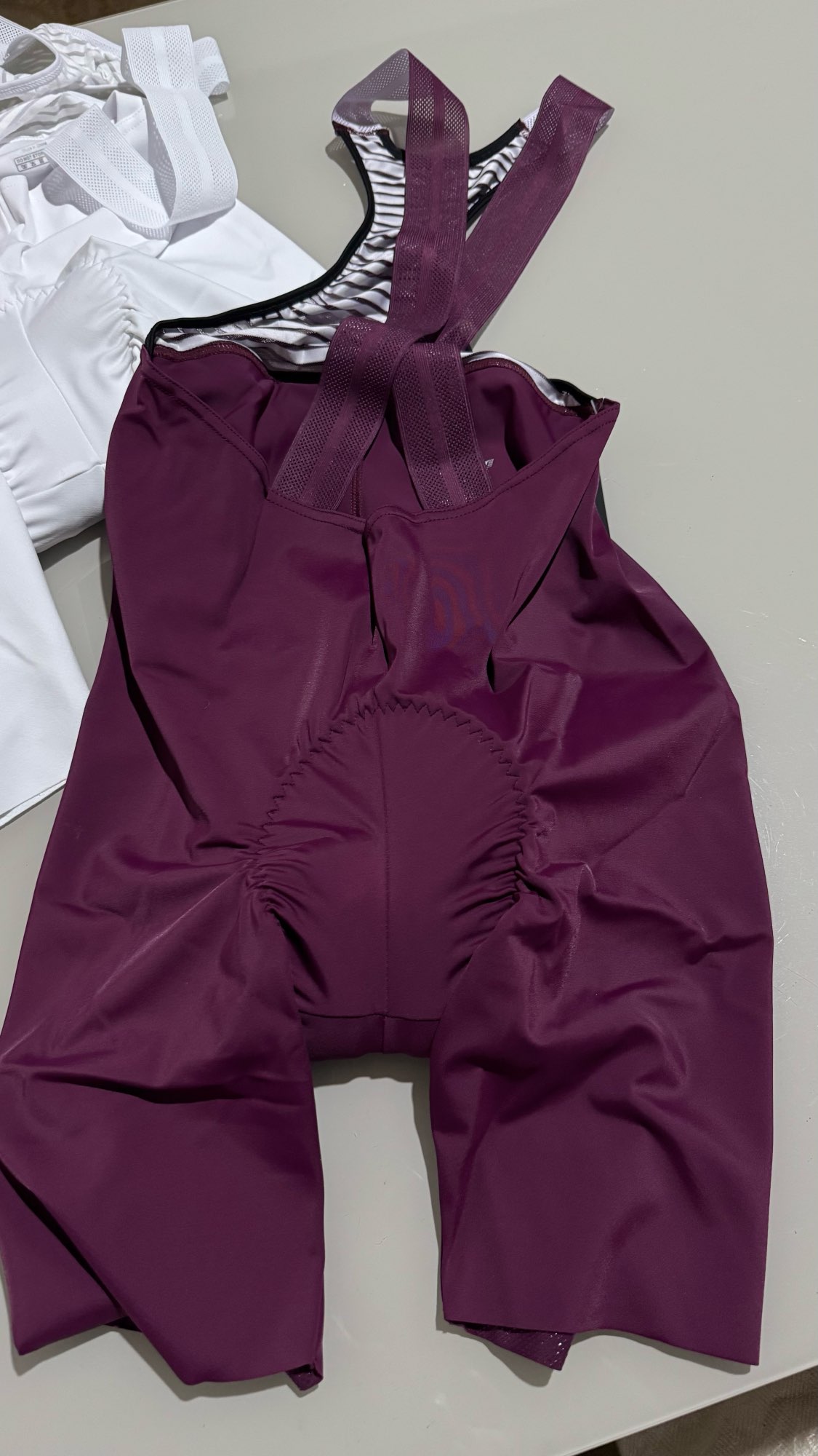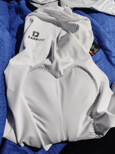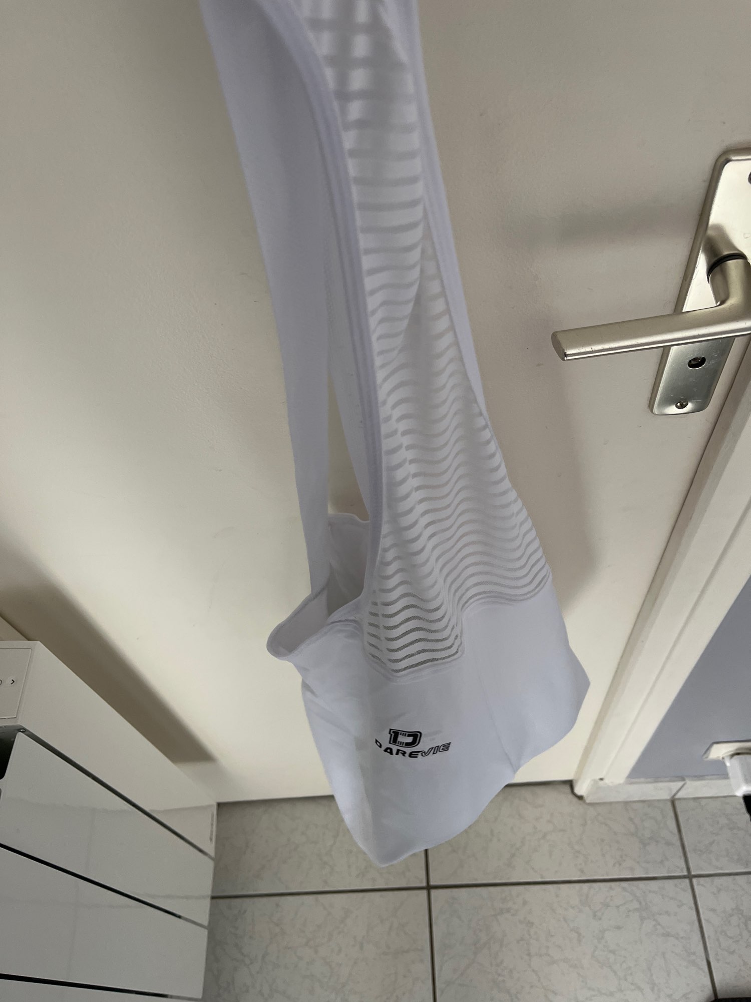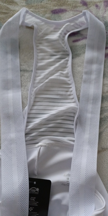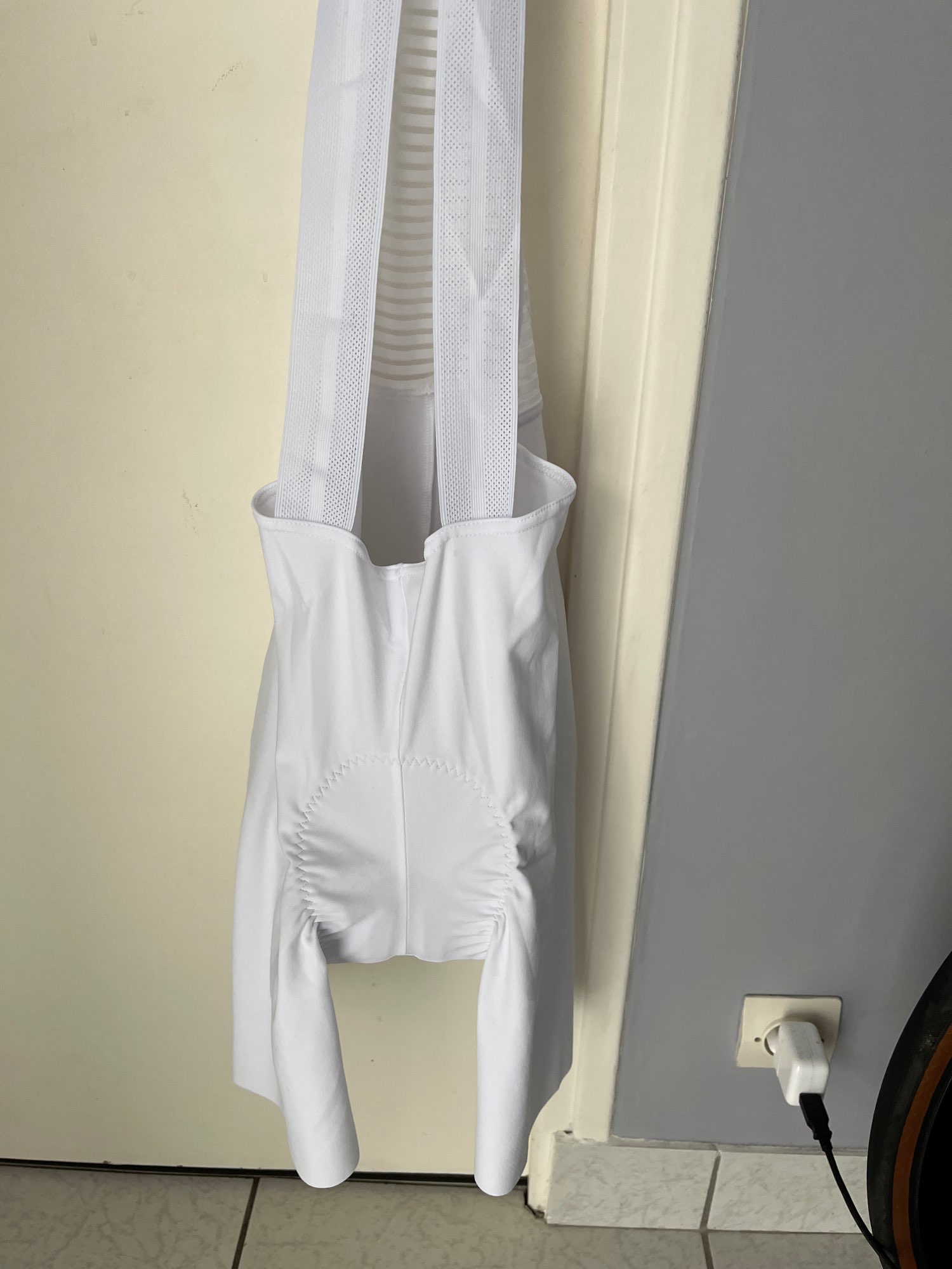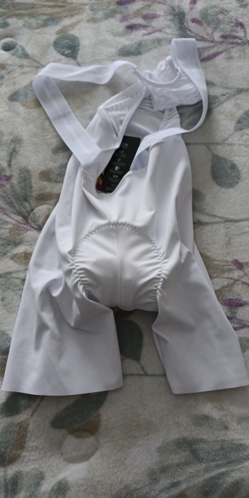 Cuissard de vélo bien blanc, la taille semble bonne mais il semble être un cuissard court et non long mais sinon il a une bande antidérapante donc il l'air bien, à tester
