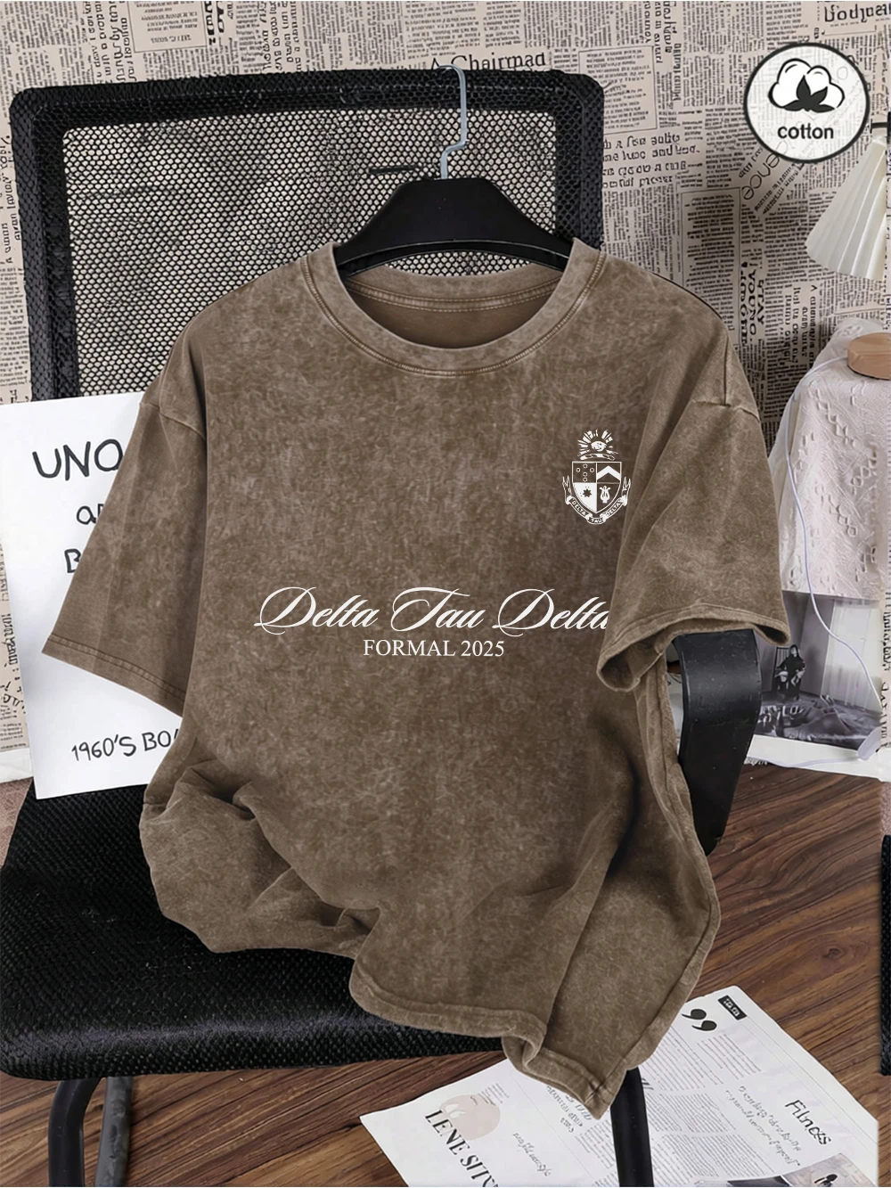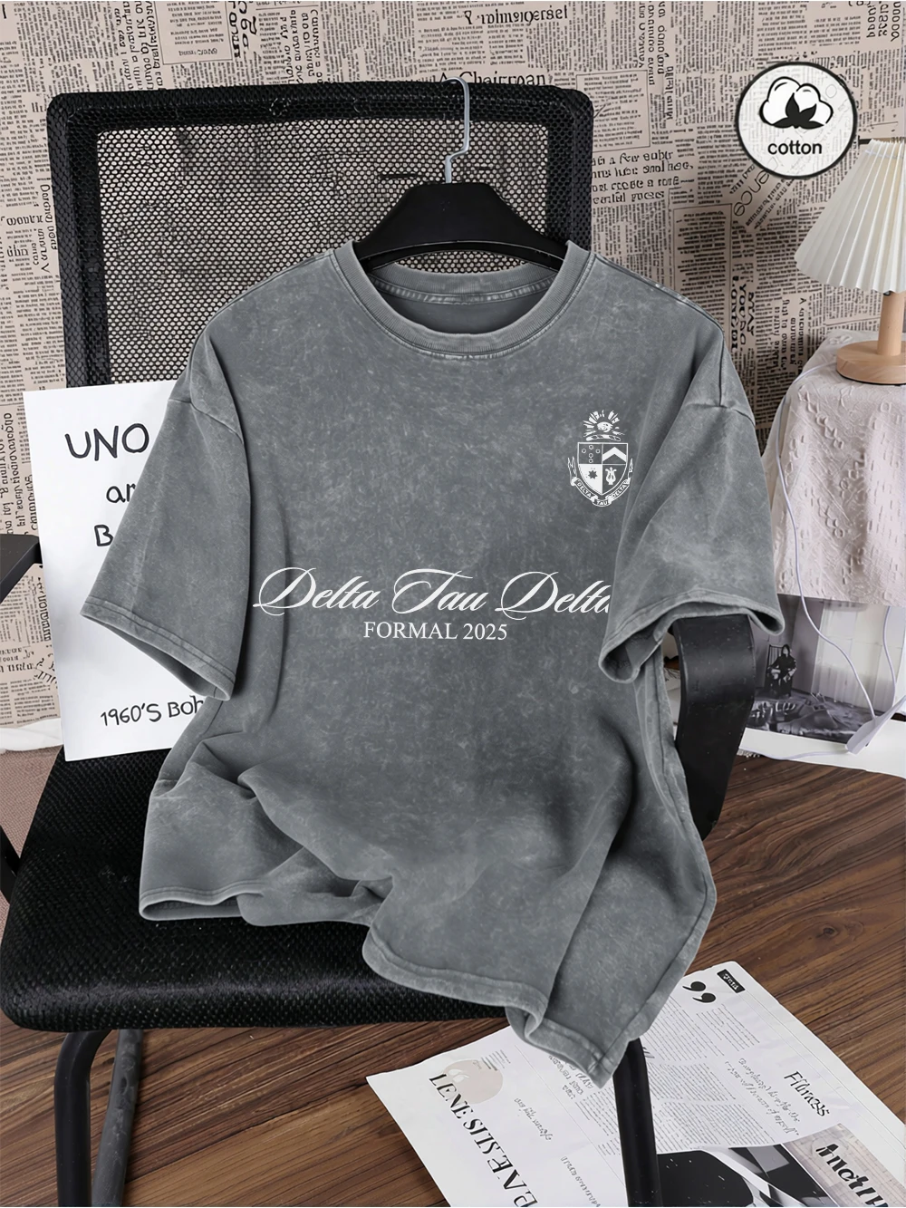 Delta Tau Delta Formal 2025 Prints Washed T-Shirts Mens Oversize Cotton Tops Summer O-Neck Short Sleeve T Shirt Casual Male Tees