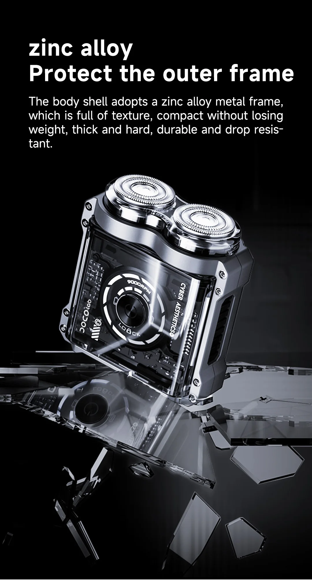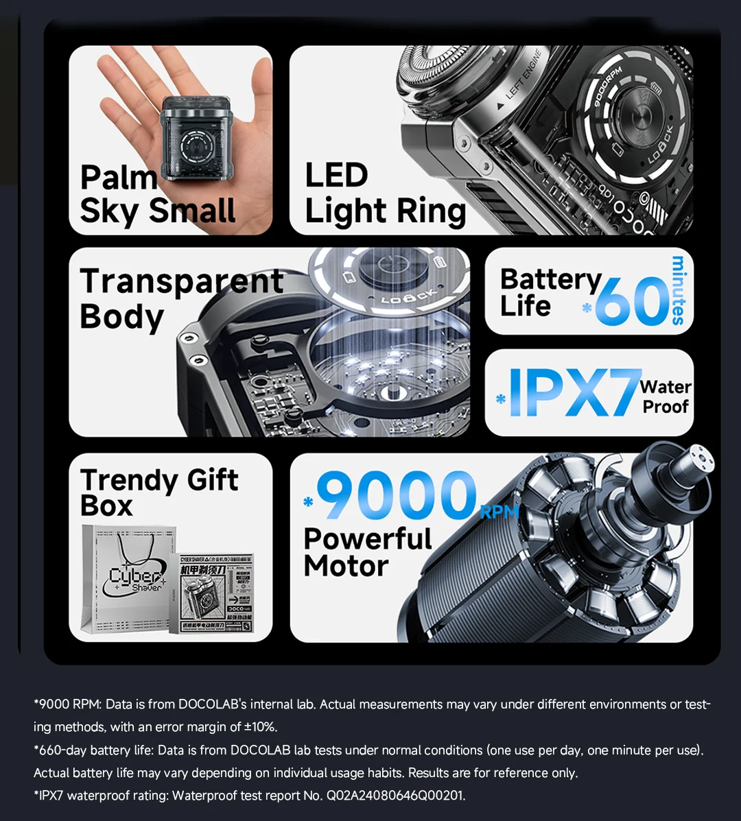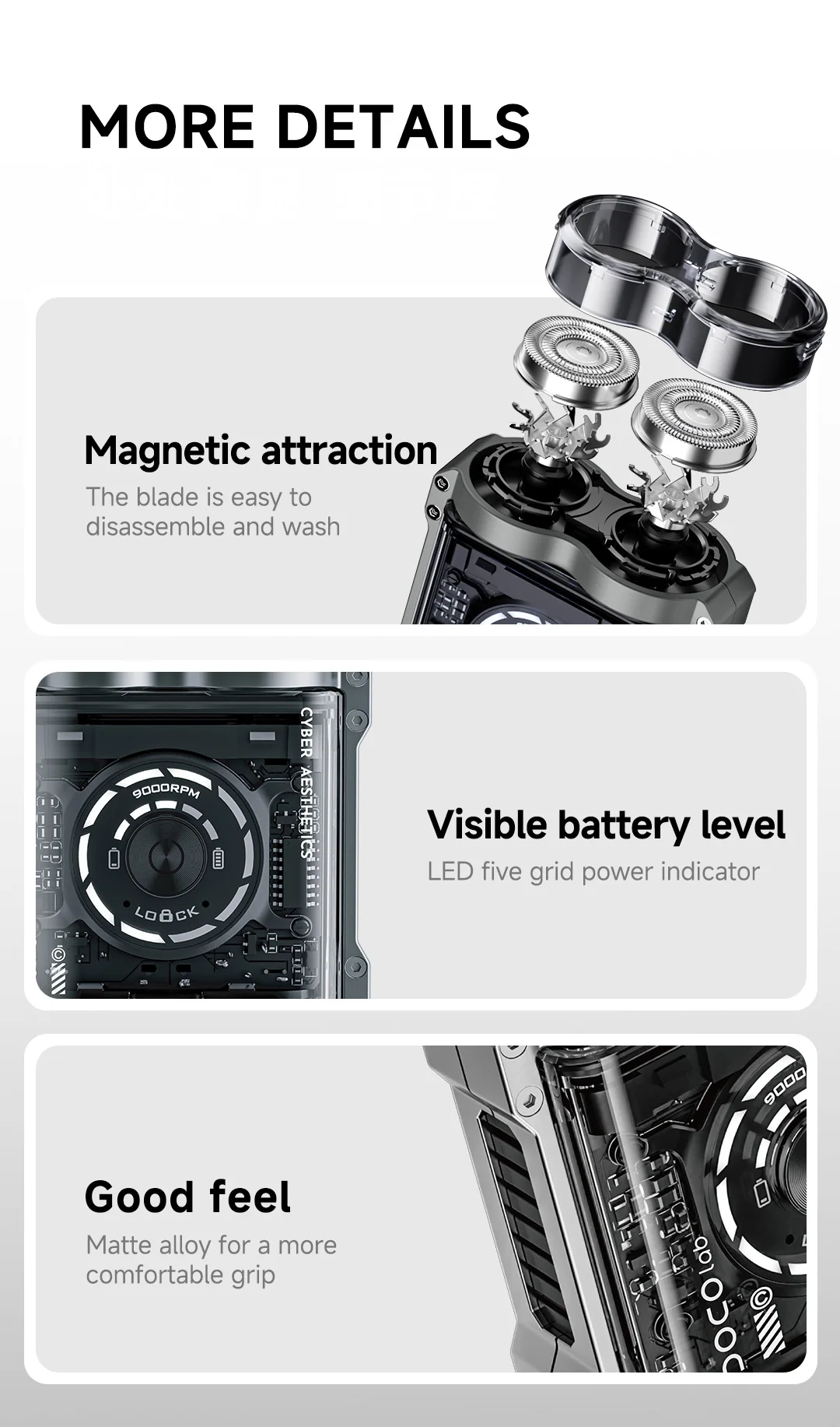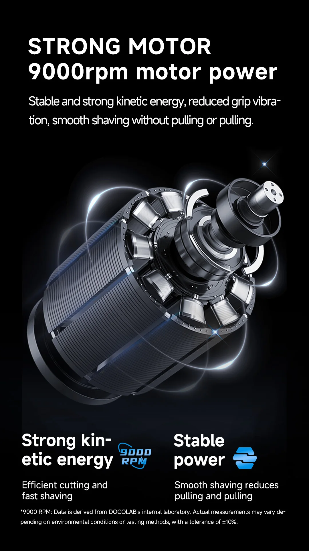 5. 9000 revolutions per minute, stable and strong kinetic energy, reduced grip vibration, smooth shaving without pulling, capable of shaving thick and hard beards.