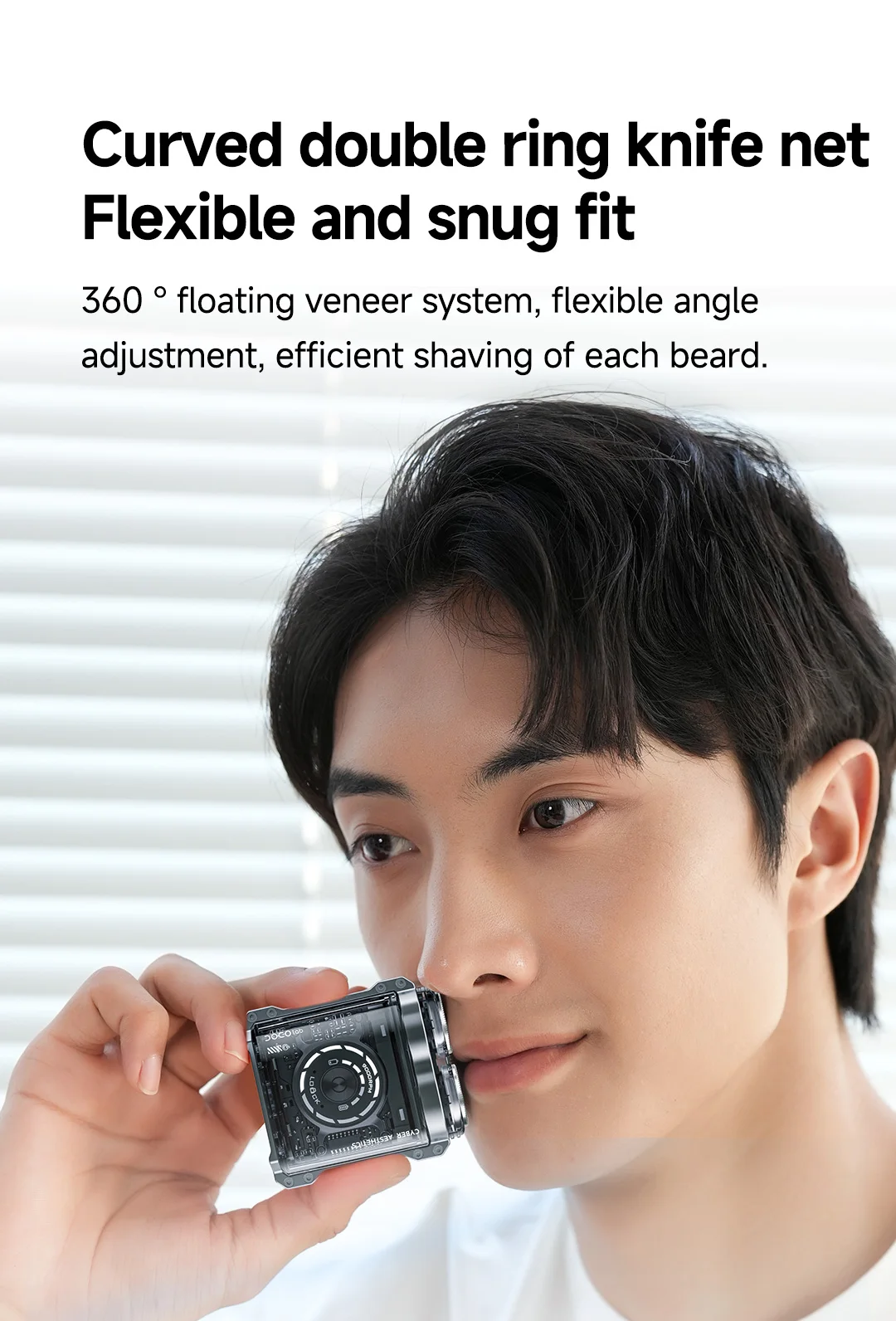 4. 360 ° floating veneer system, adaptive facial contour changes, closely adheres to the skin, and shaves from the root of each beard.