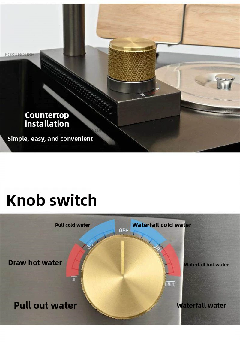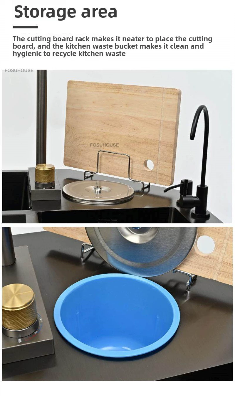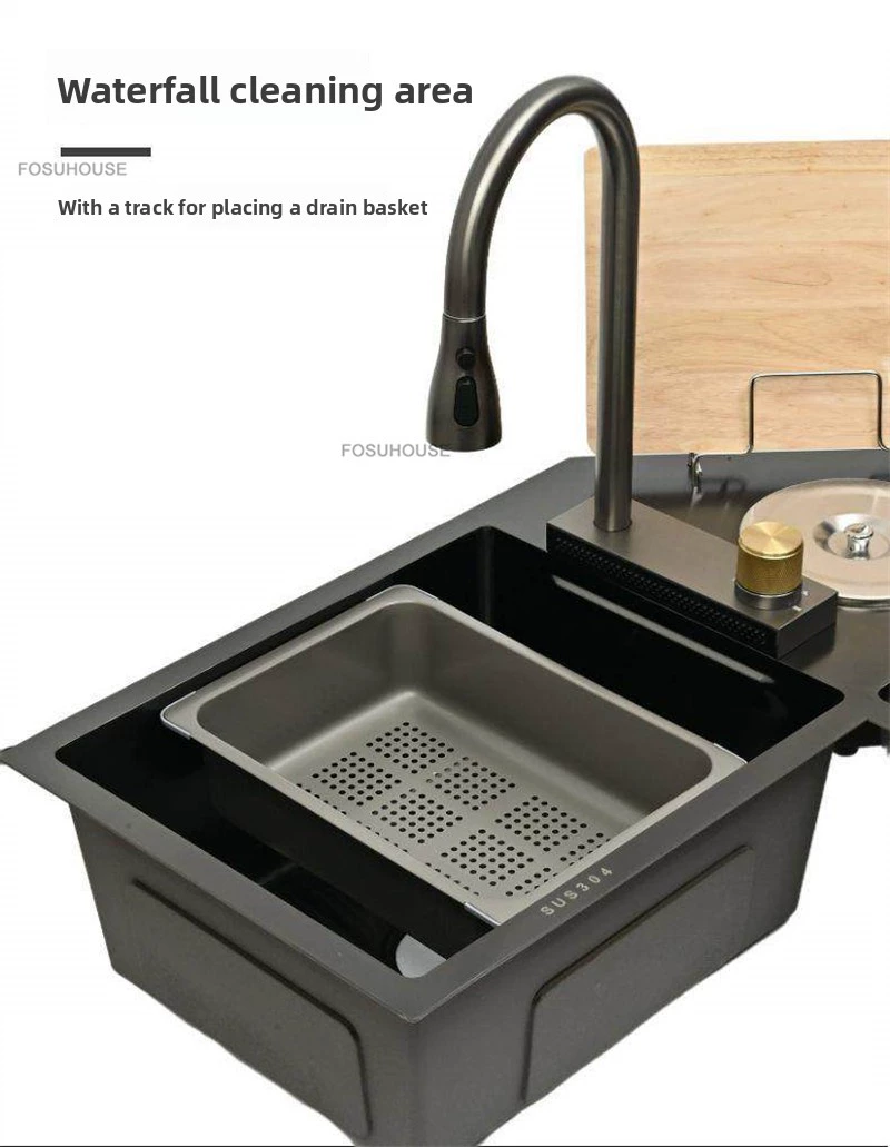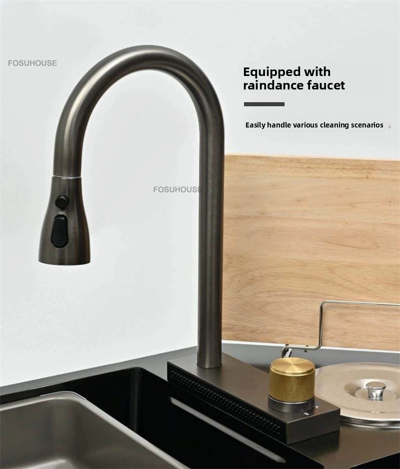 Double-slot Washbasin Nano Corner Kitchen Sinks Creative Kitchen Accessories Thickened Shaped Handmade Basin with Knife Holder H