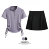 DRUR Women Tennis Skirt Set Lightweight Summer Sports Outfit Fitness Top Skort Sets Golf Wear Two Piece Athletic Suit Activewear