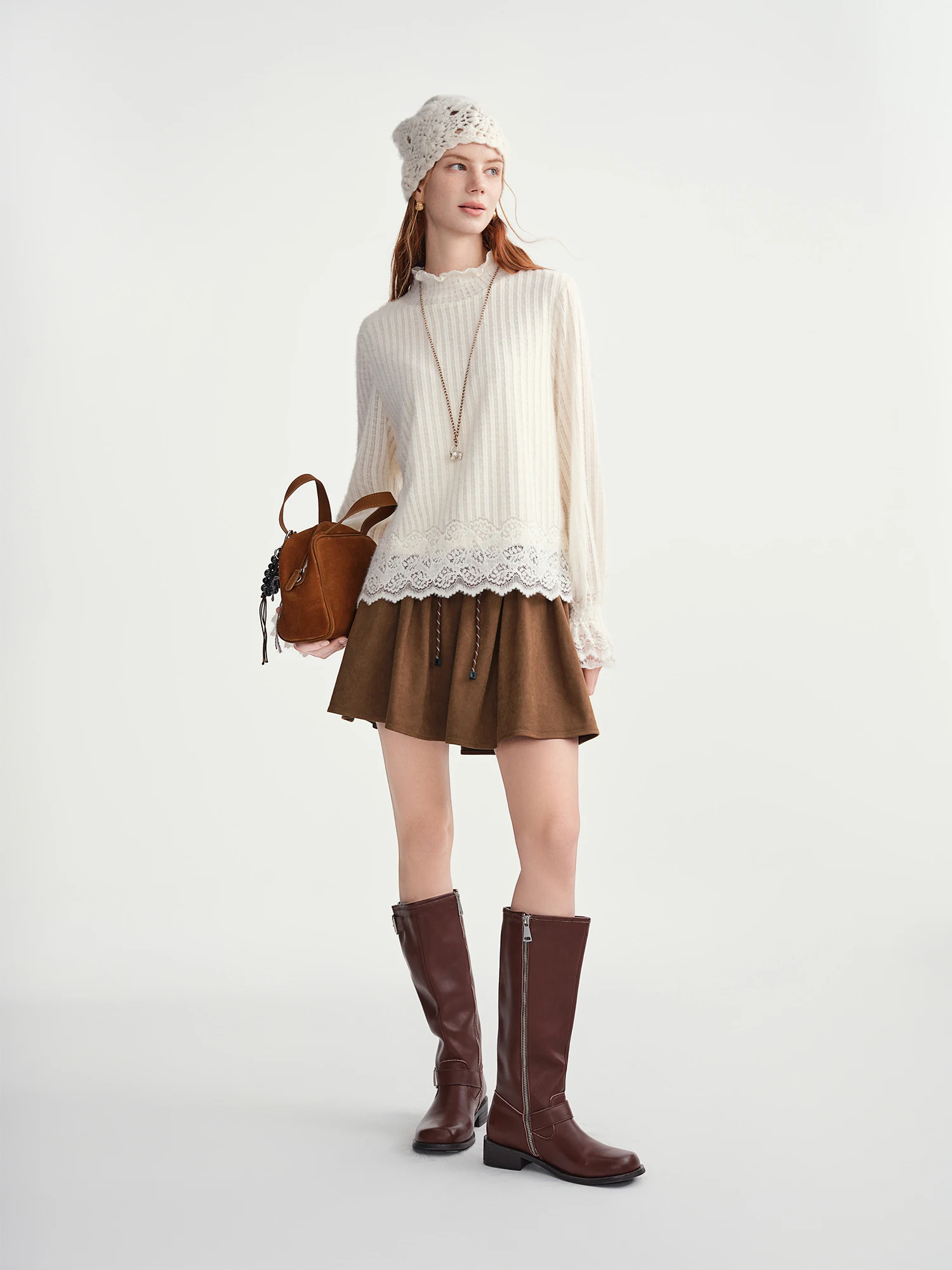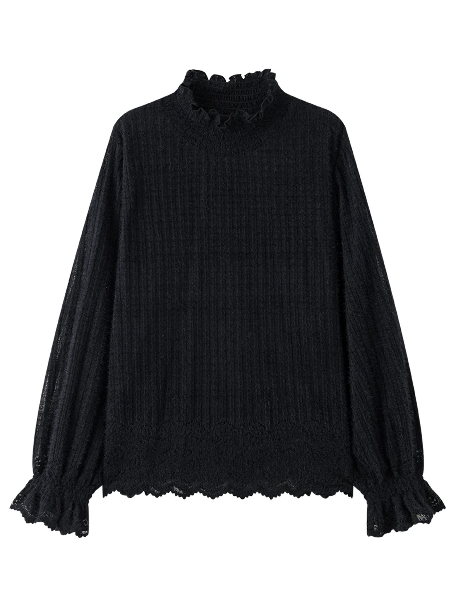 DUSHU Gentle Bottoming T-shirt Women 2025 Autumn and Winter Wear Pullovers Wear Fairy Lace Top Loose All-match Elegant Ladies