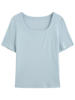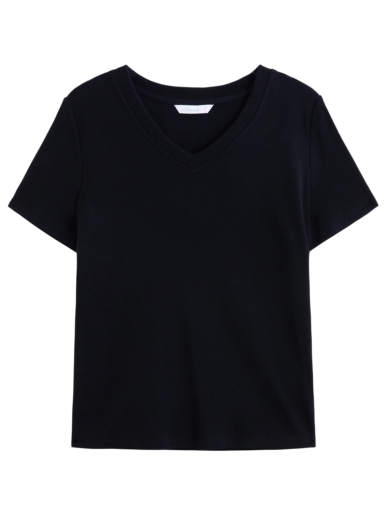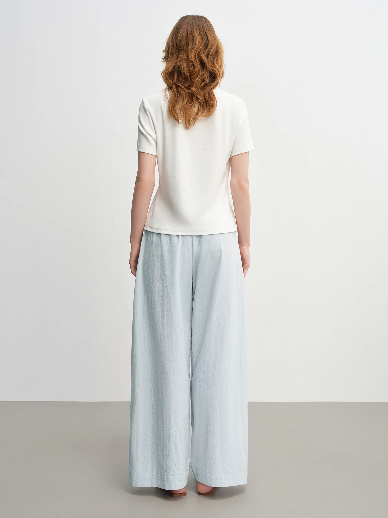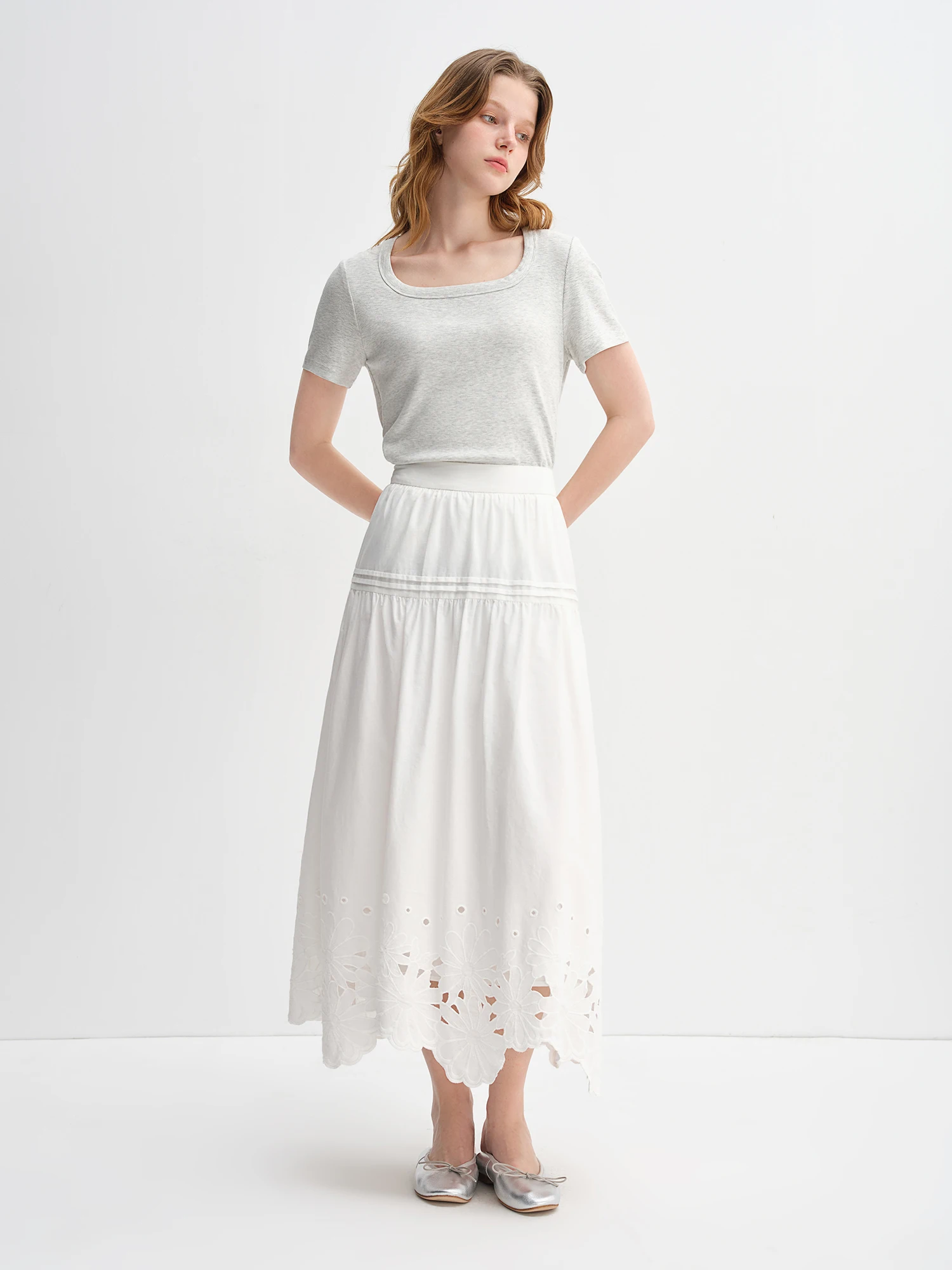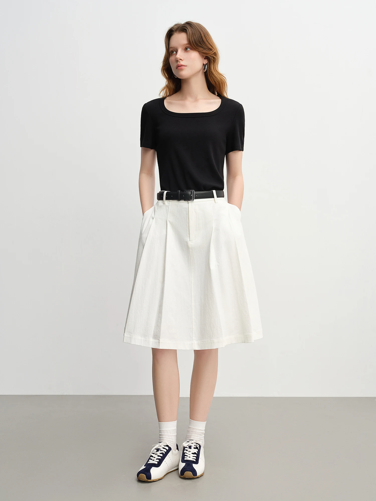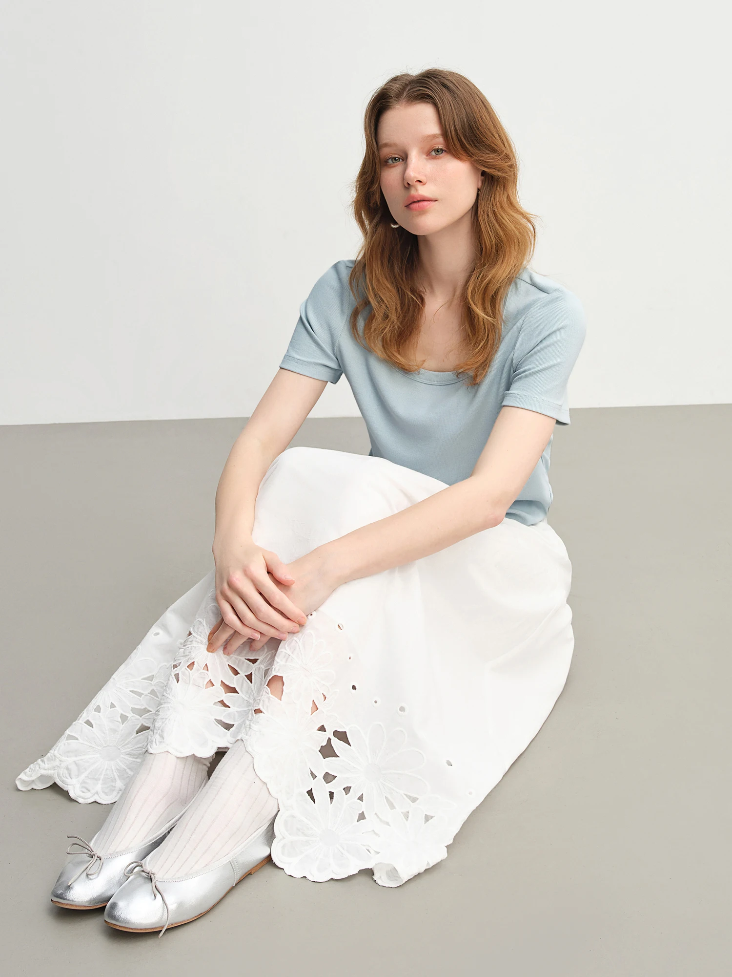 DUSHU Women High-Stretch Structured Shoulder V/U Neck Tee 2025 Summer Casual T-Shirt Elastic Cotton Y2K Fashion New Arrival