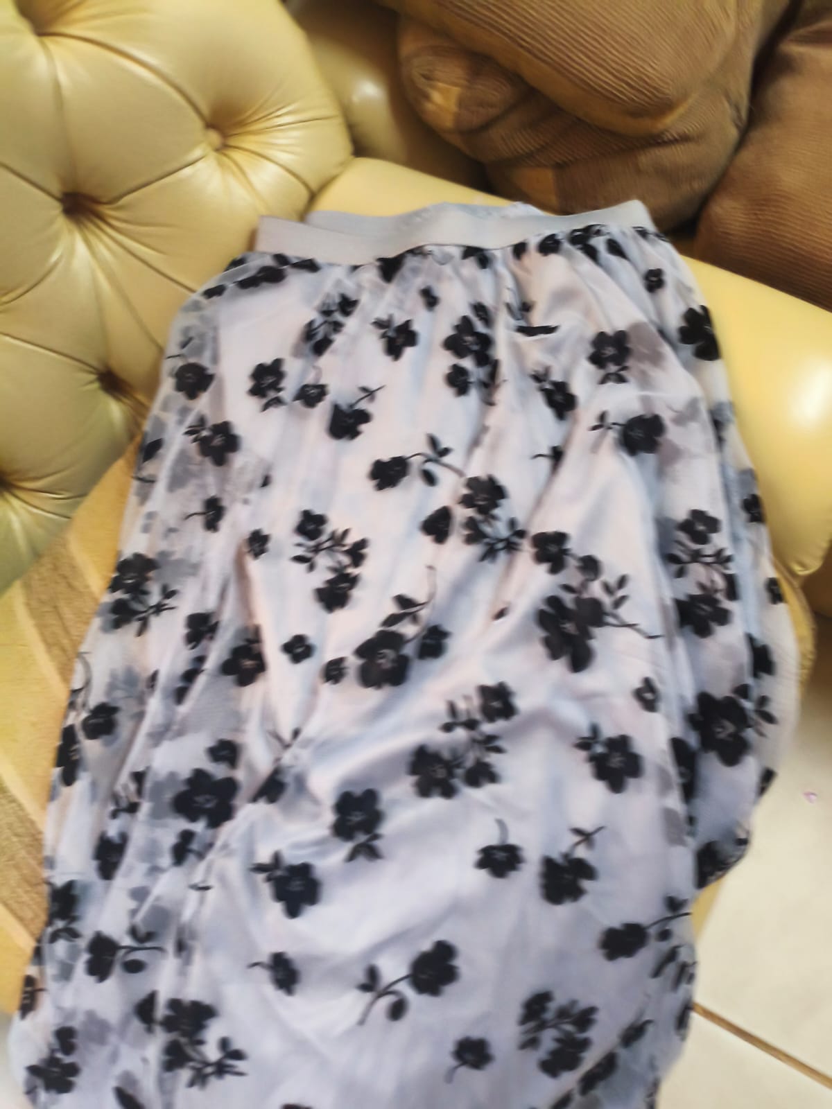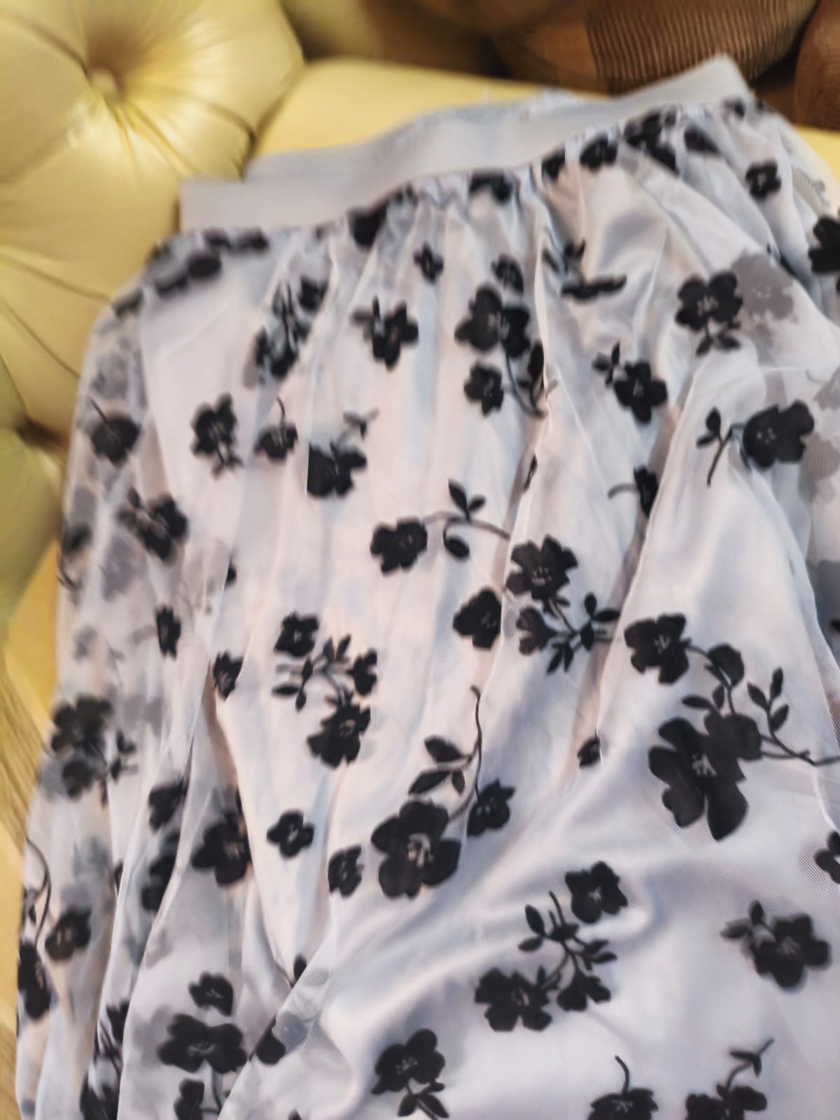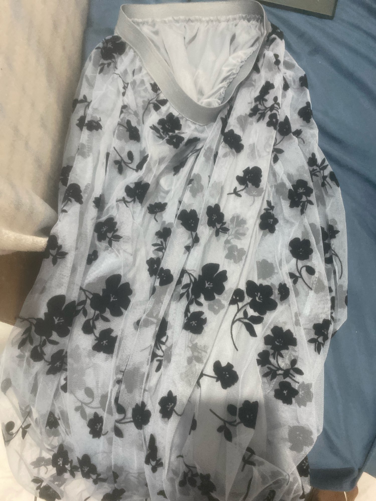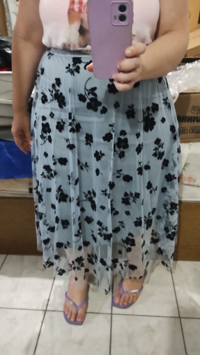 Elegant Floral Women Tulle Skirts High Waist Korean Flocking Pleated Midi Skirts Mesh Summer Office Ladies Skirt New