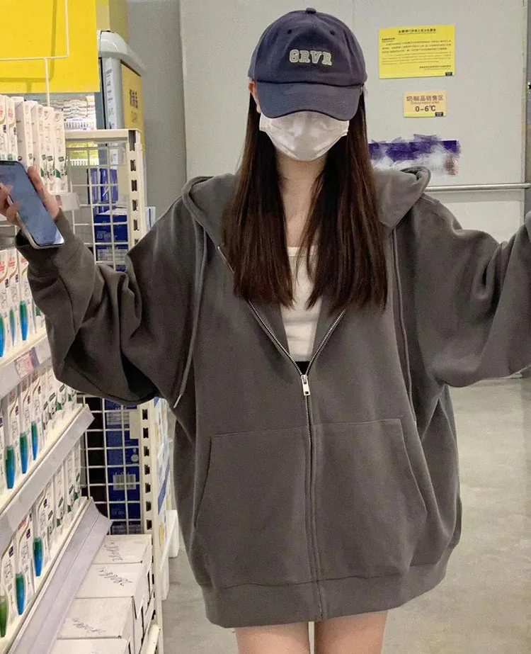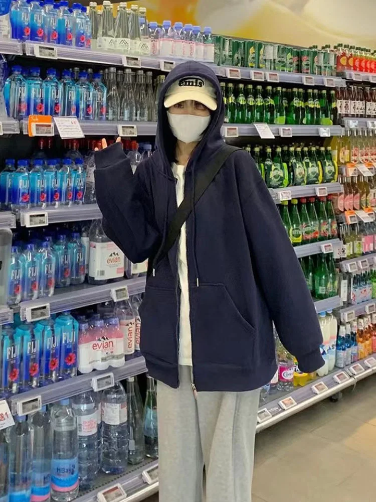 Fashion Casual Zip Up Hoodies Women 2026 Spring Long Sleeve Loose Sweatshirt Streetwear Hood Shirt Y2K Tops Solid Coat Jackets