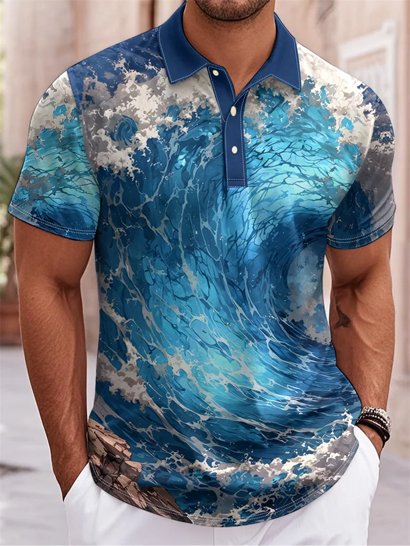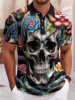 Fashion Skull Rose Print Polo Shirts For Men Breathable Moisture Wicking Casual Collared T Shirt Streetwear Gothic Party Top
