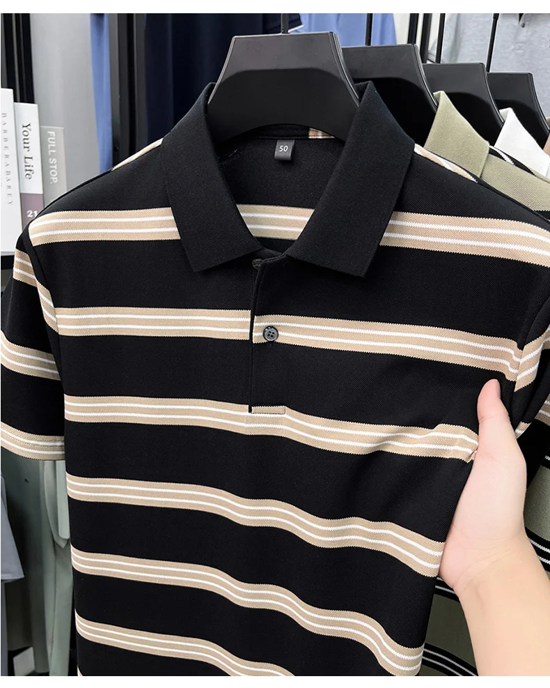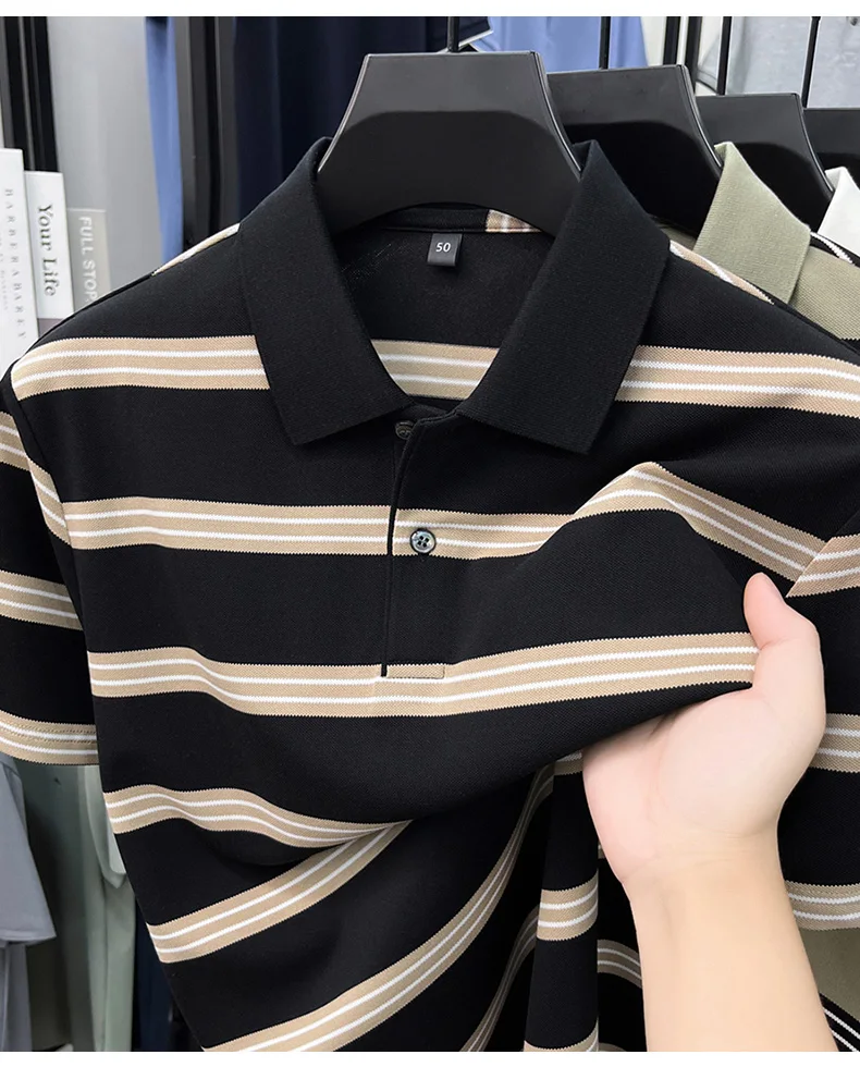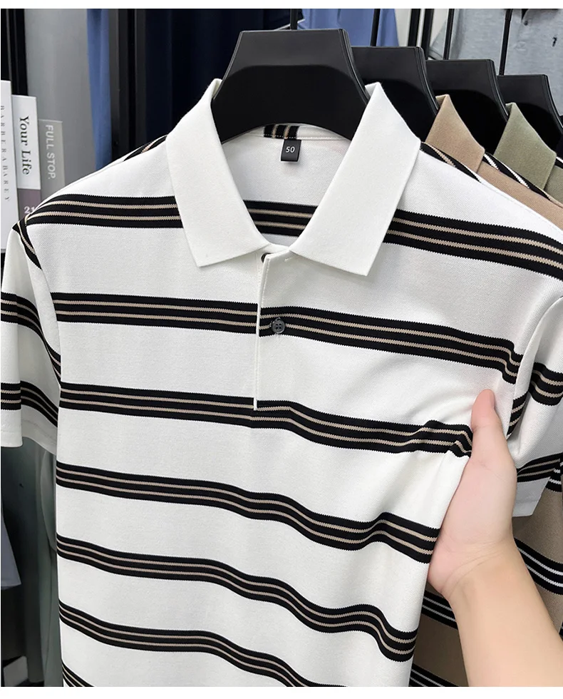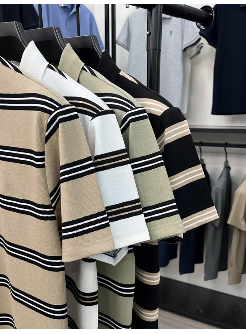 Fashion striped color blocked short sleeve polo shirt light luxury men’s summer breathable comfort business casual lapel T-shirt