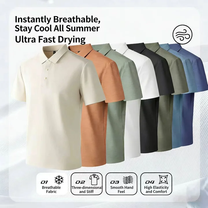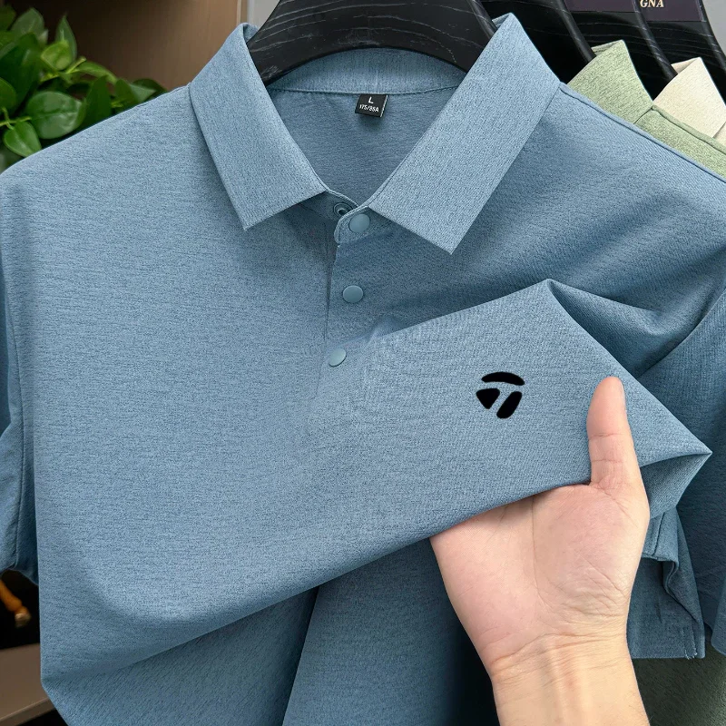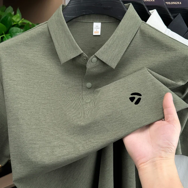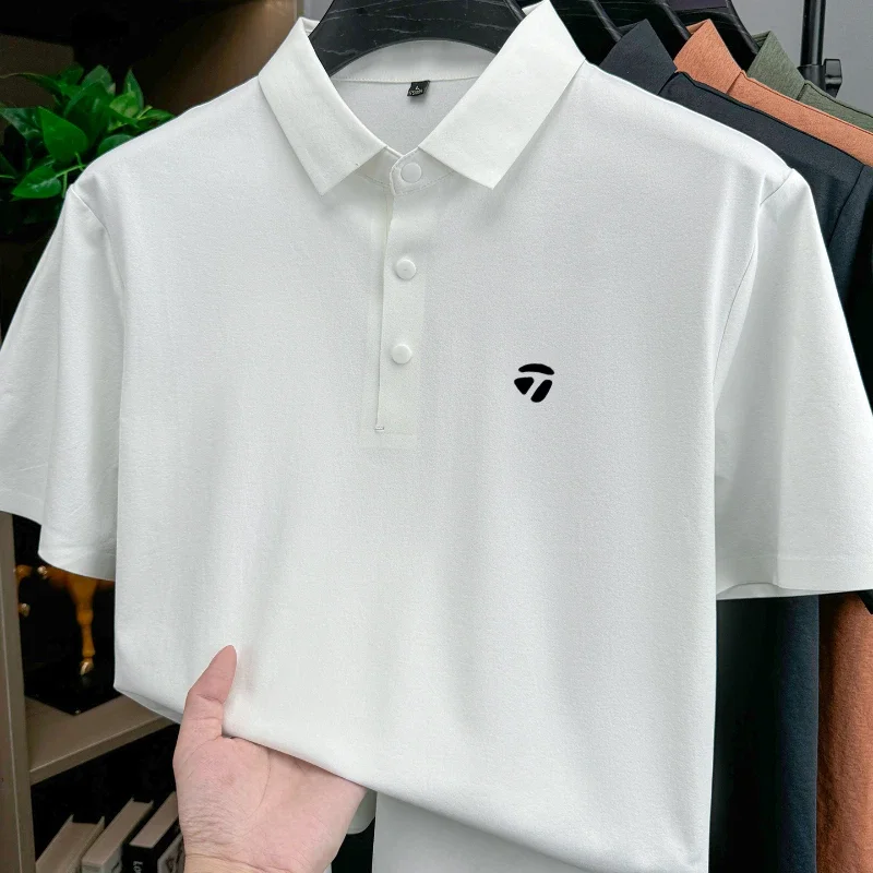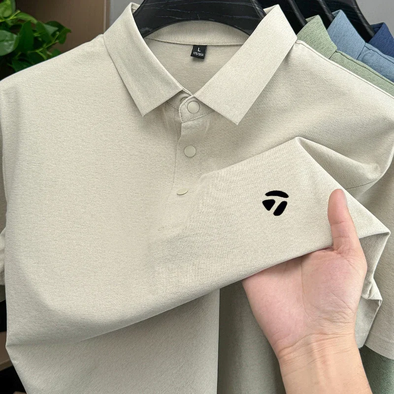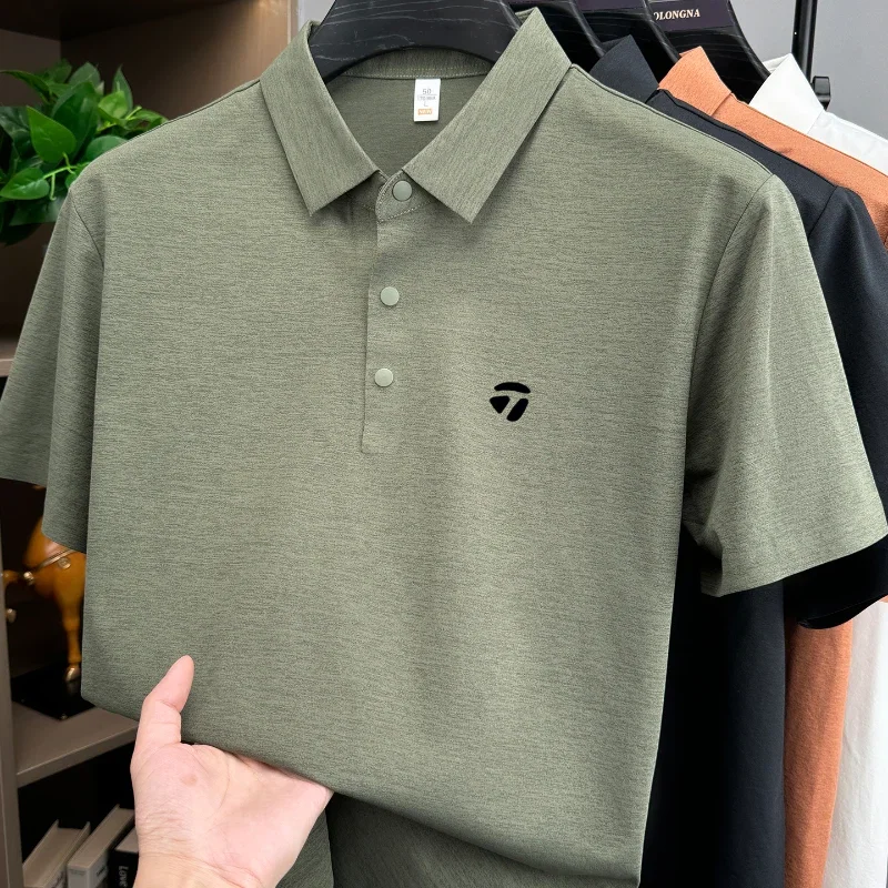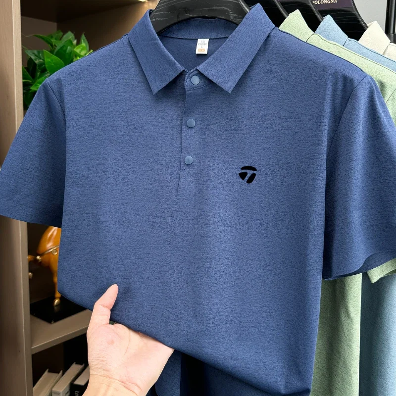 Fashionable men’s polo shirt short sleeved golf brand printed top 2026 summer new ice silk comfortable casual breathable T-shirt