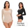 Female Underwear Open Crotch One-Piece Bodysuit Long Sleeve Seamless Waist Trainer Body Shaper Sheath Flat Belly Shapewear Woman