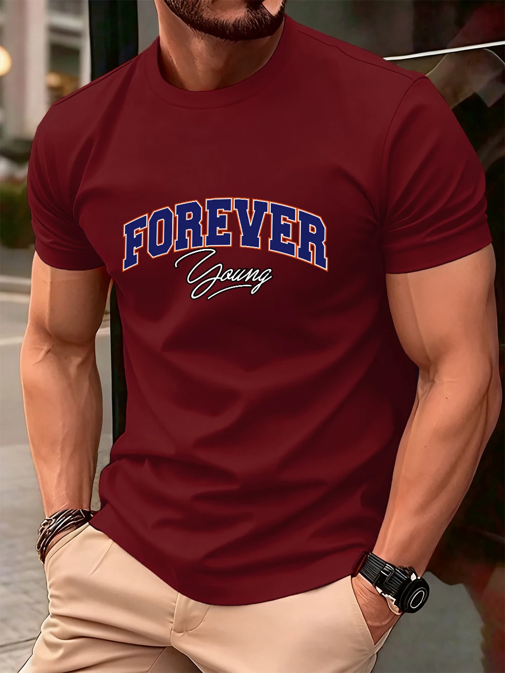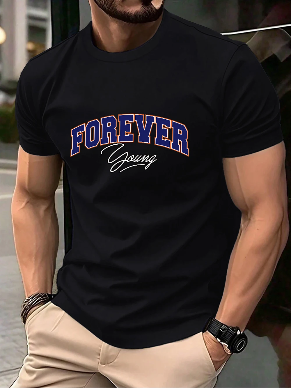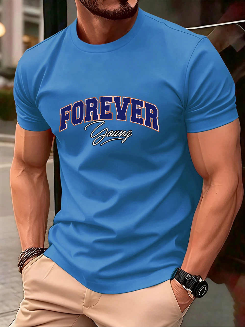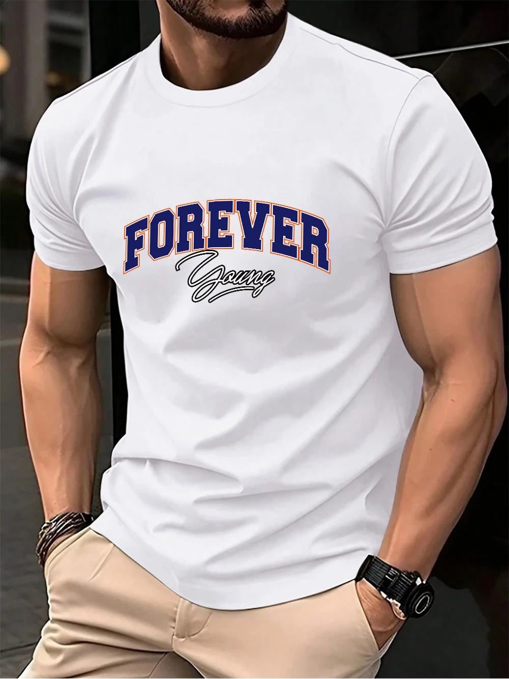 Forever Young Letter Printed Cotton T-Shirts Men’S Summer Oversized O-Neck T Shirt Short Sleeve Soft Tops Basic Mens Clothes
