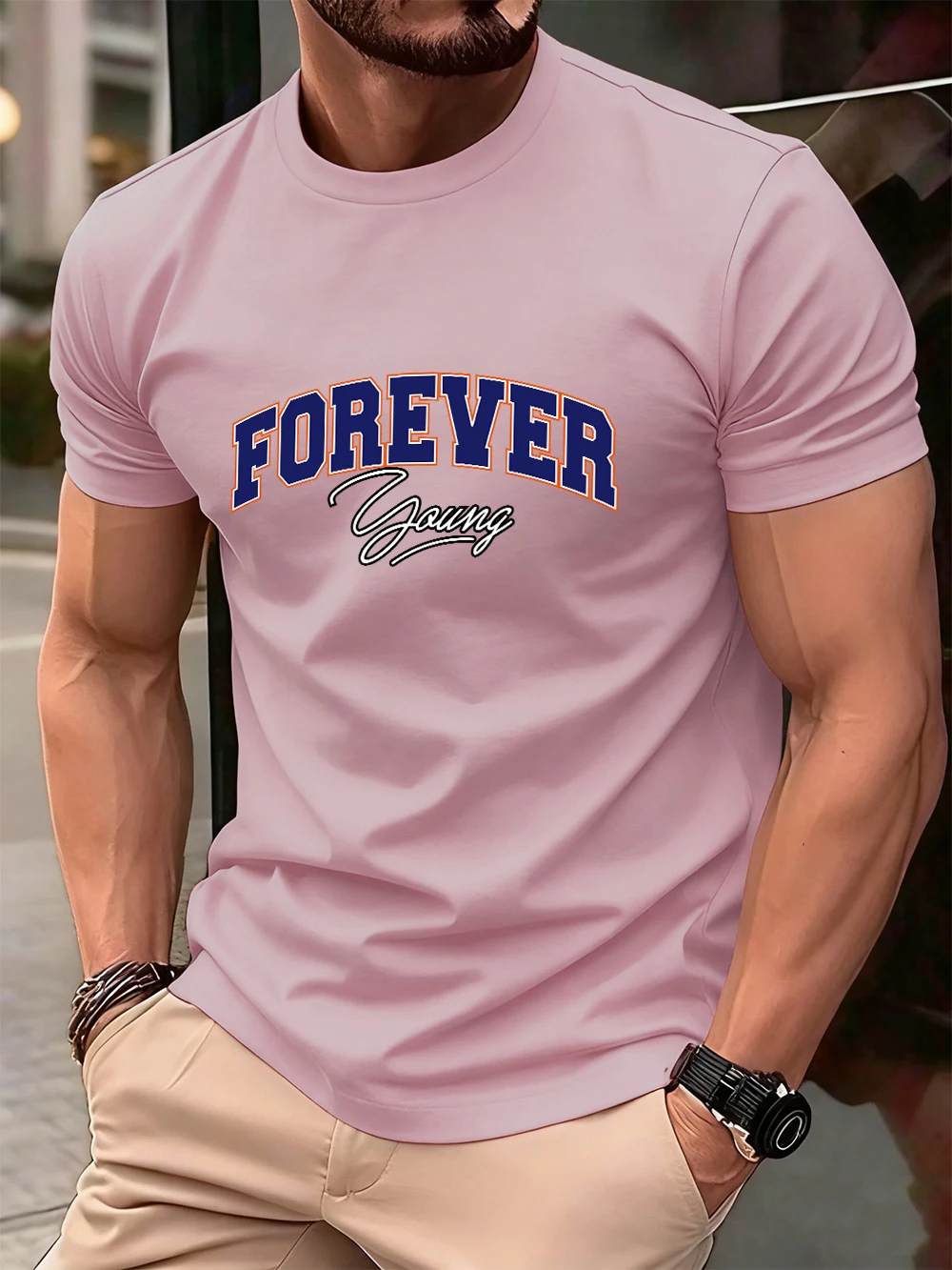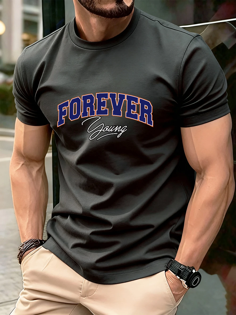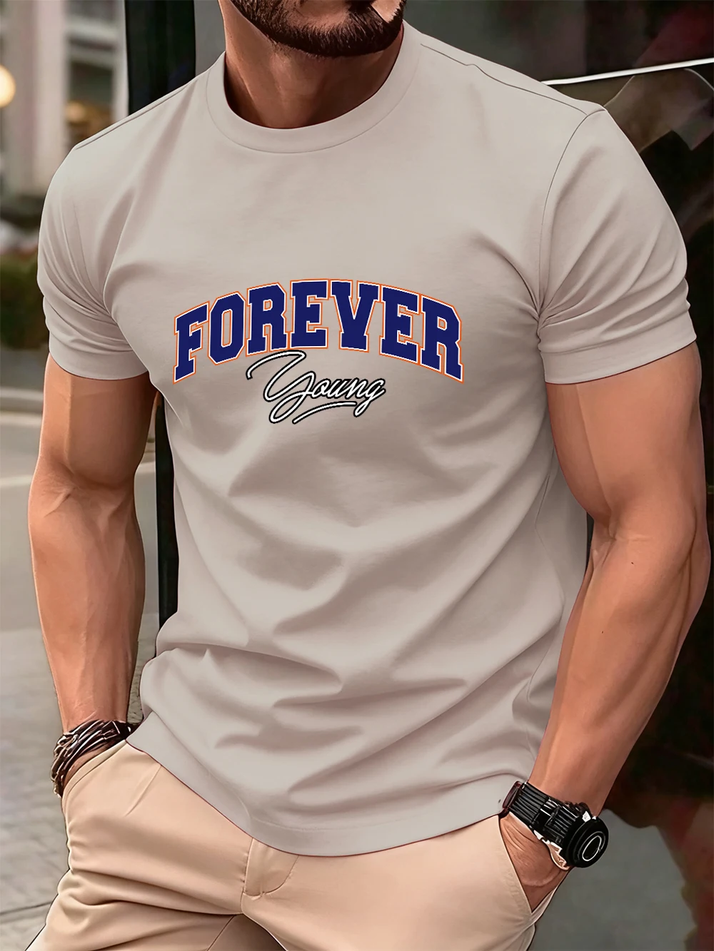 Forever Young Letter Printed Cotton T-Shirts Men’S Summer Oversized O-Neck T Shirt Short Sleeve Soft Tops Basic Mens Clothes