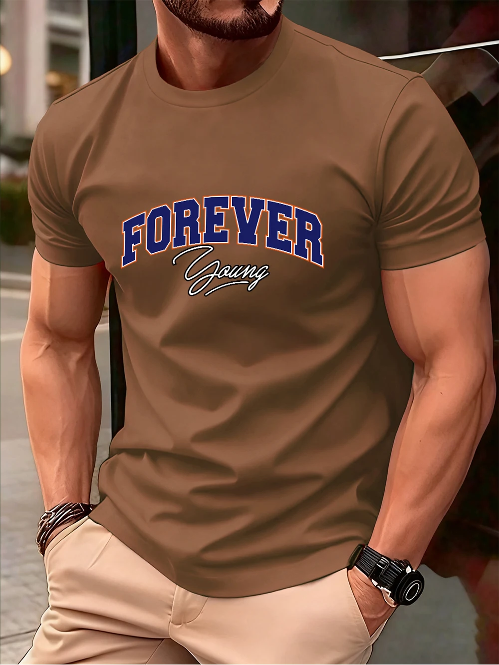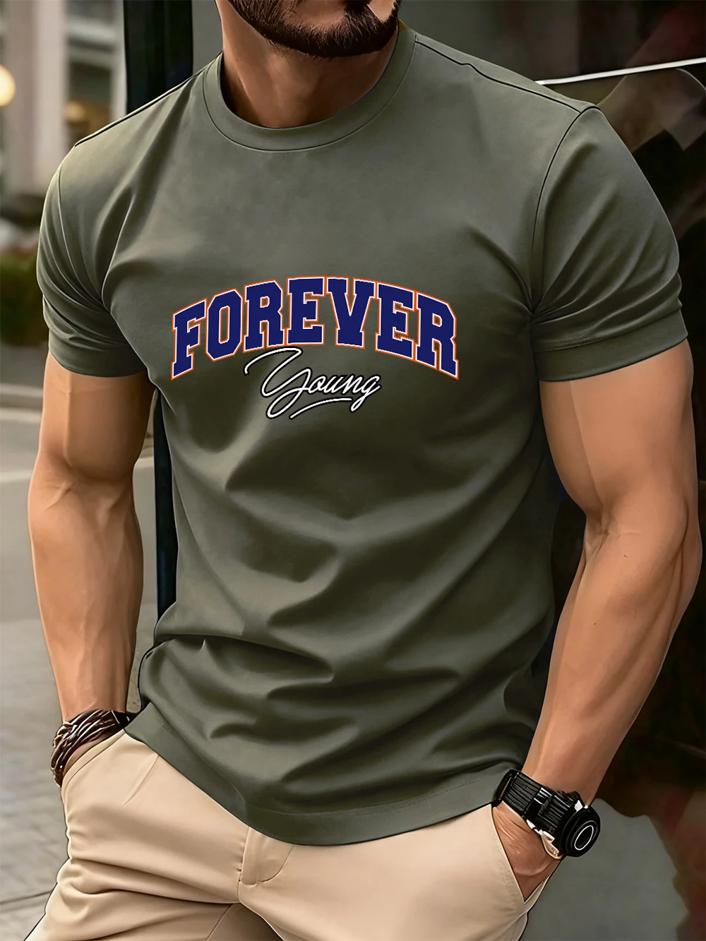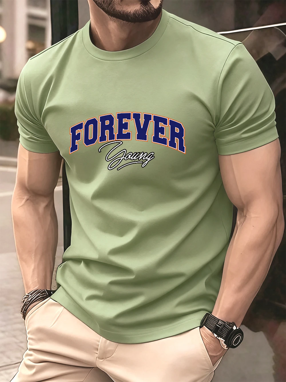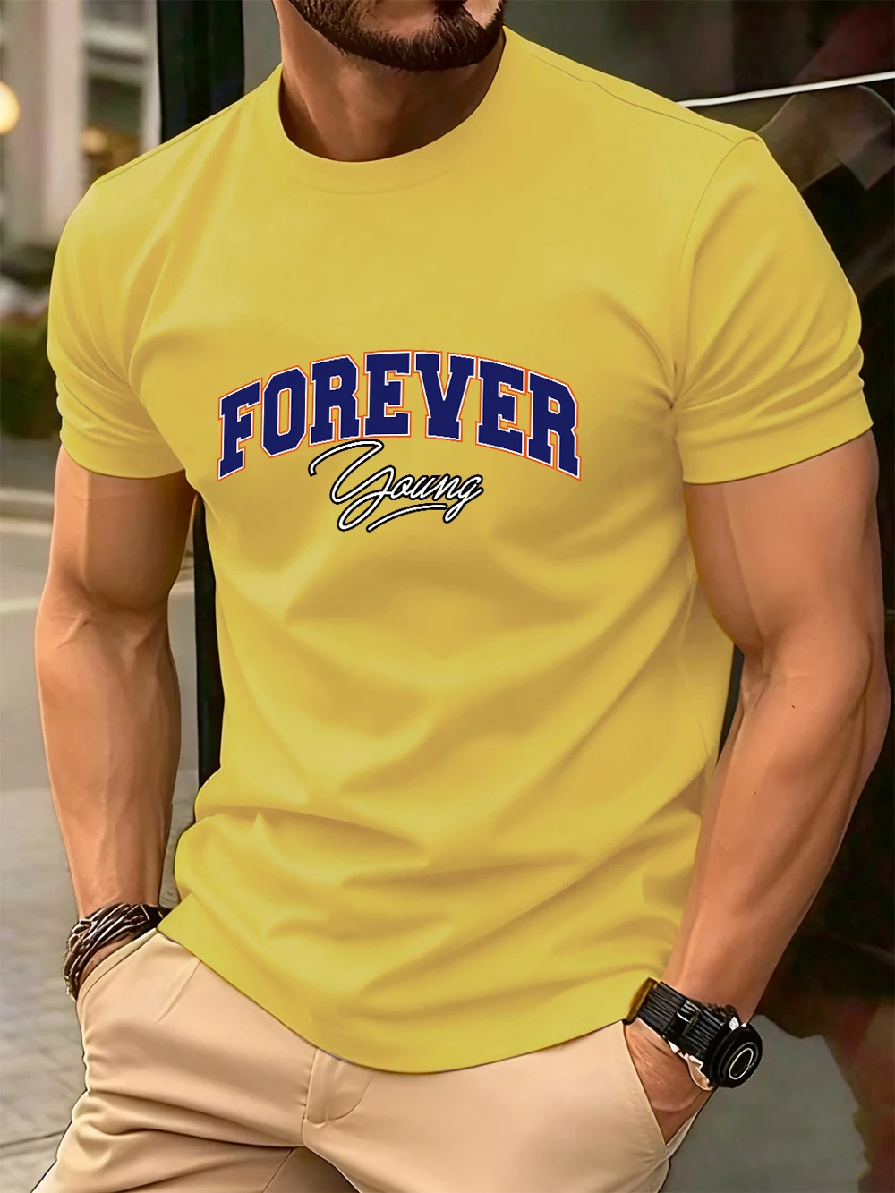 Forever Young Letter Printed Cotton T-Shirts Men’S Summer Oversized O-Neck T Shirt Short Sleeve Soft Tops Basic Mens Clothes