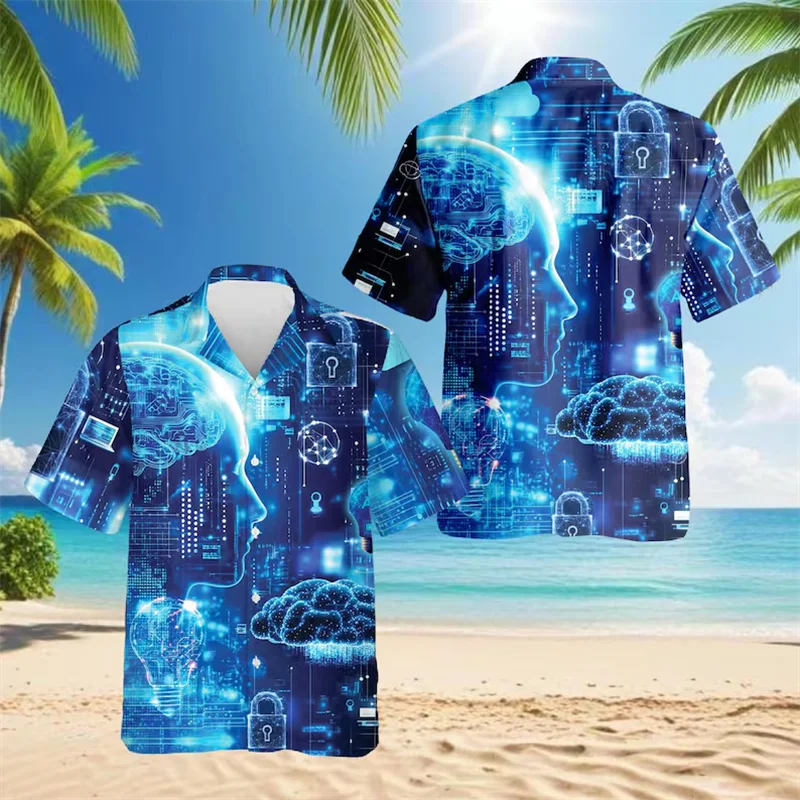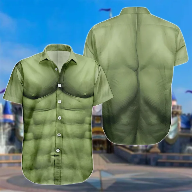 Funny Hairy Chest Hawaiian Shirt Men USA Flag Thong Print Novelty Short Sleeve Button Down Beach Tops clothing