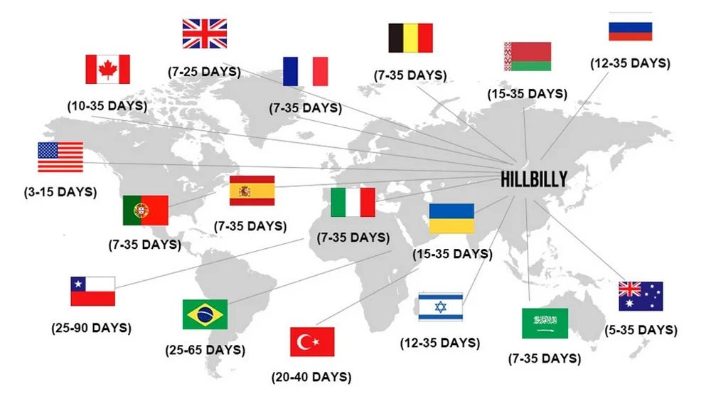 | Canada, Europe | 10-30 Business days |