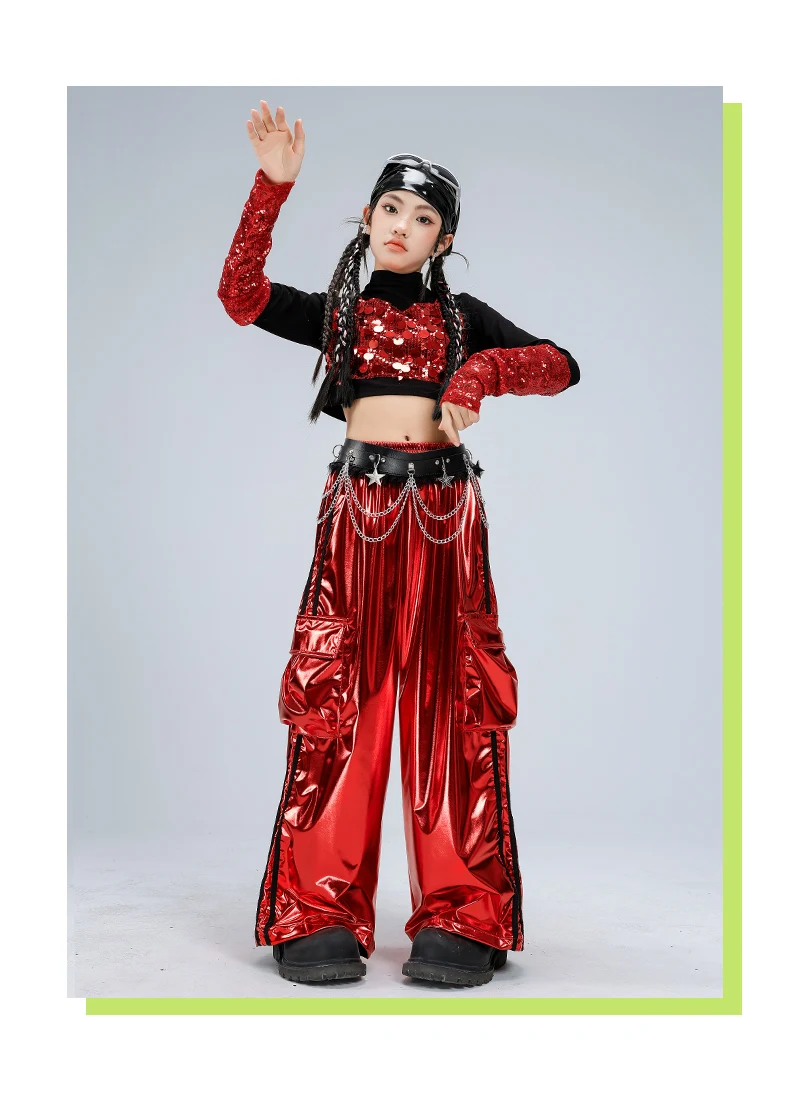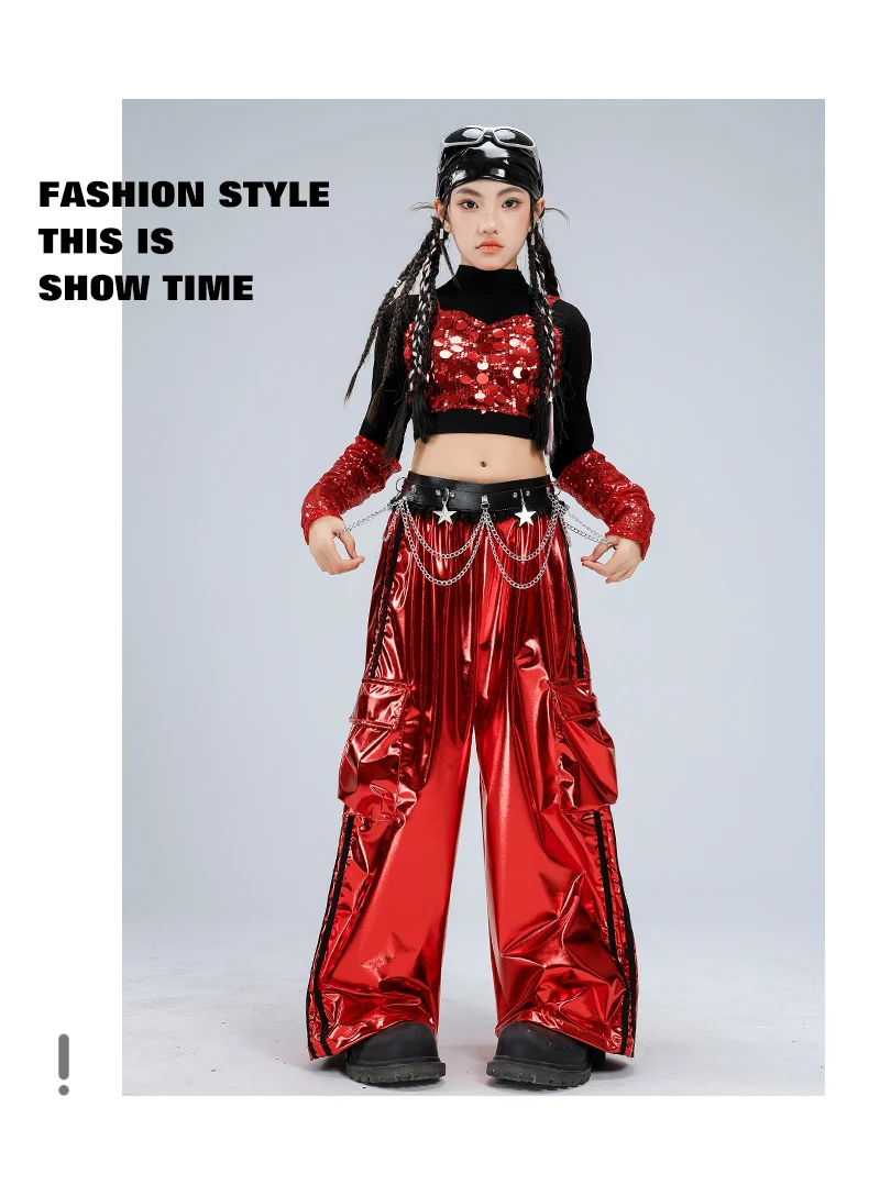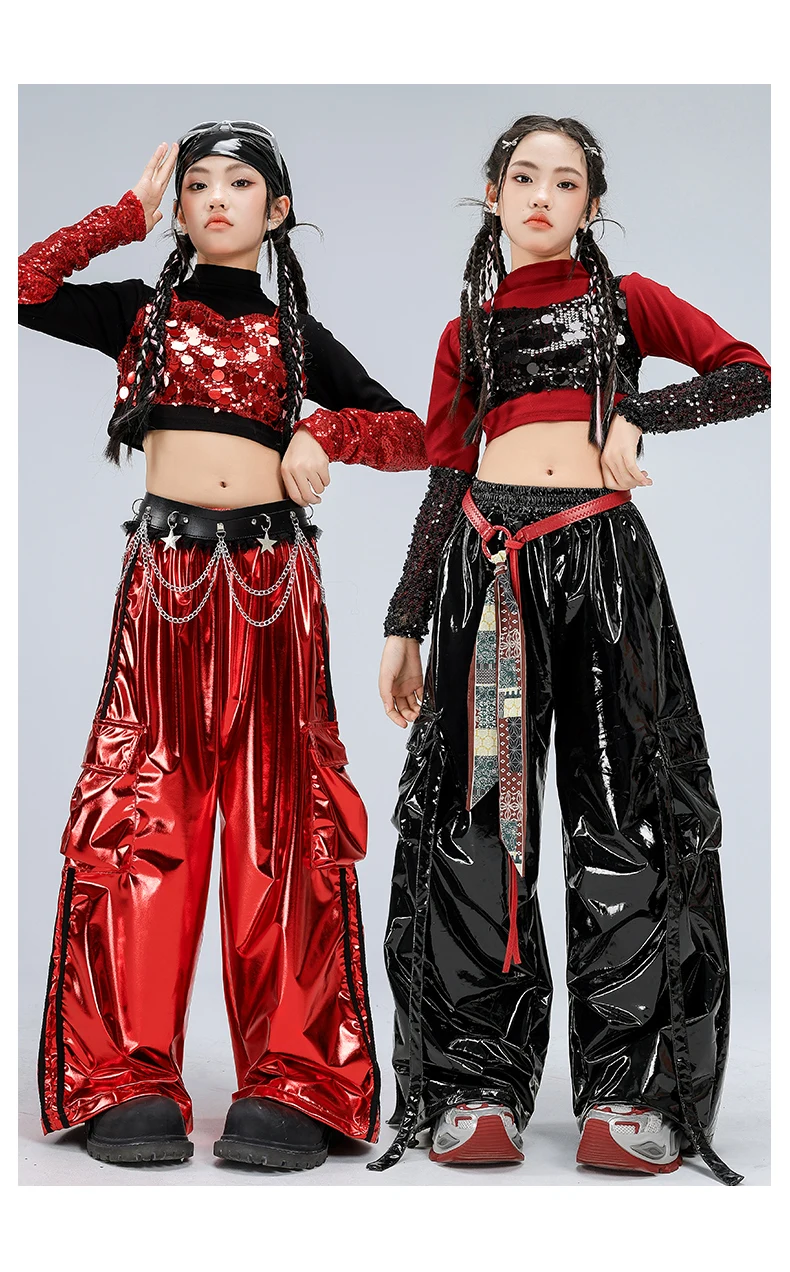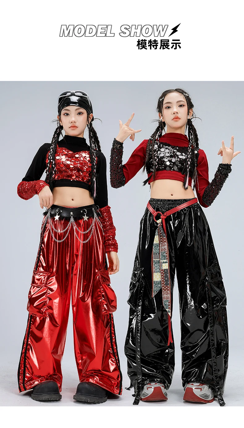 Girls Streetwear Sparkly Crop Top Sequined Pants Child Hip Hop Modern Dancing Clothes Sets Kids Cool Street Dance Jazz Costume