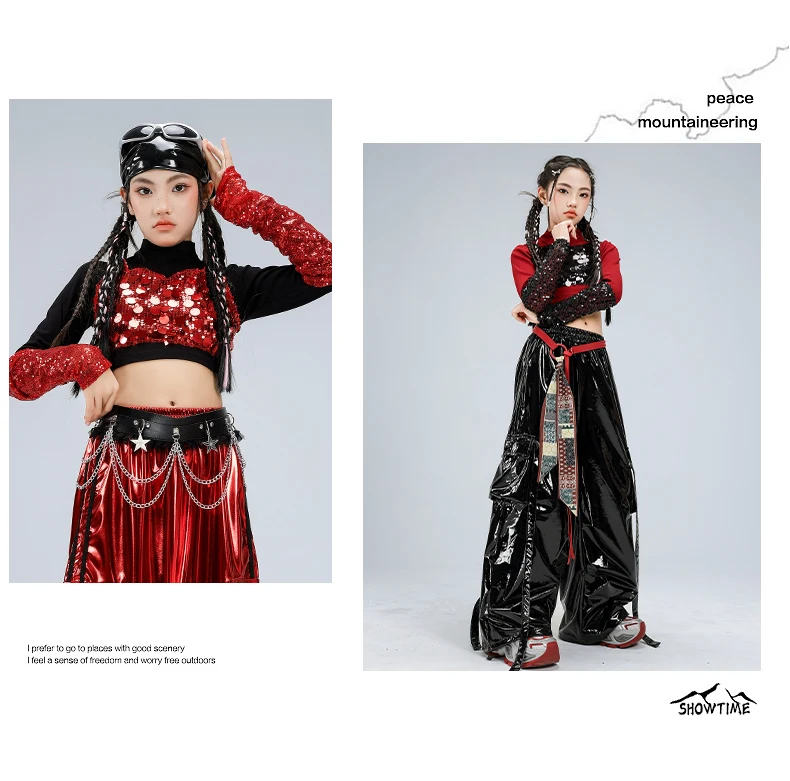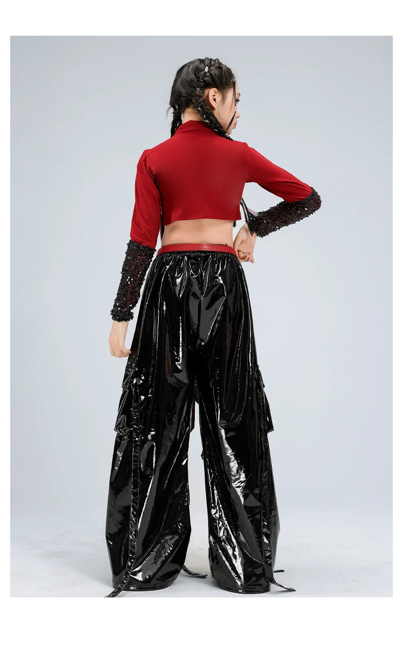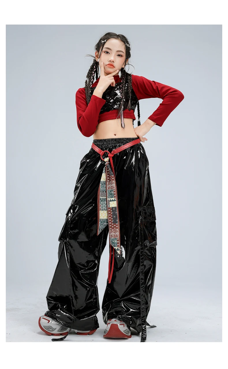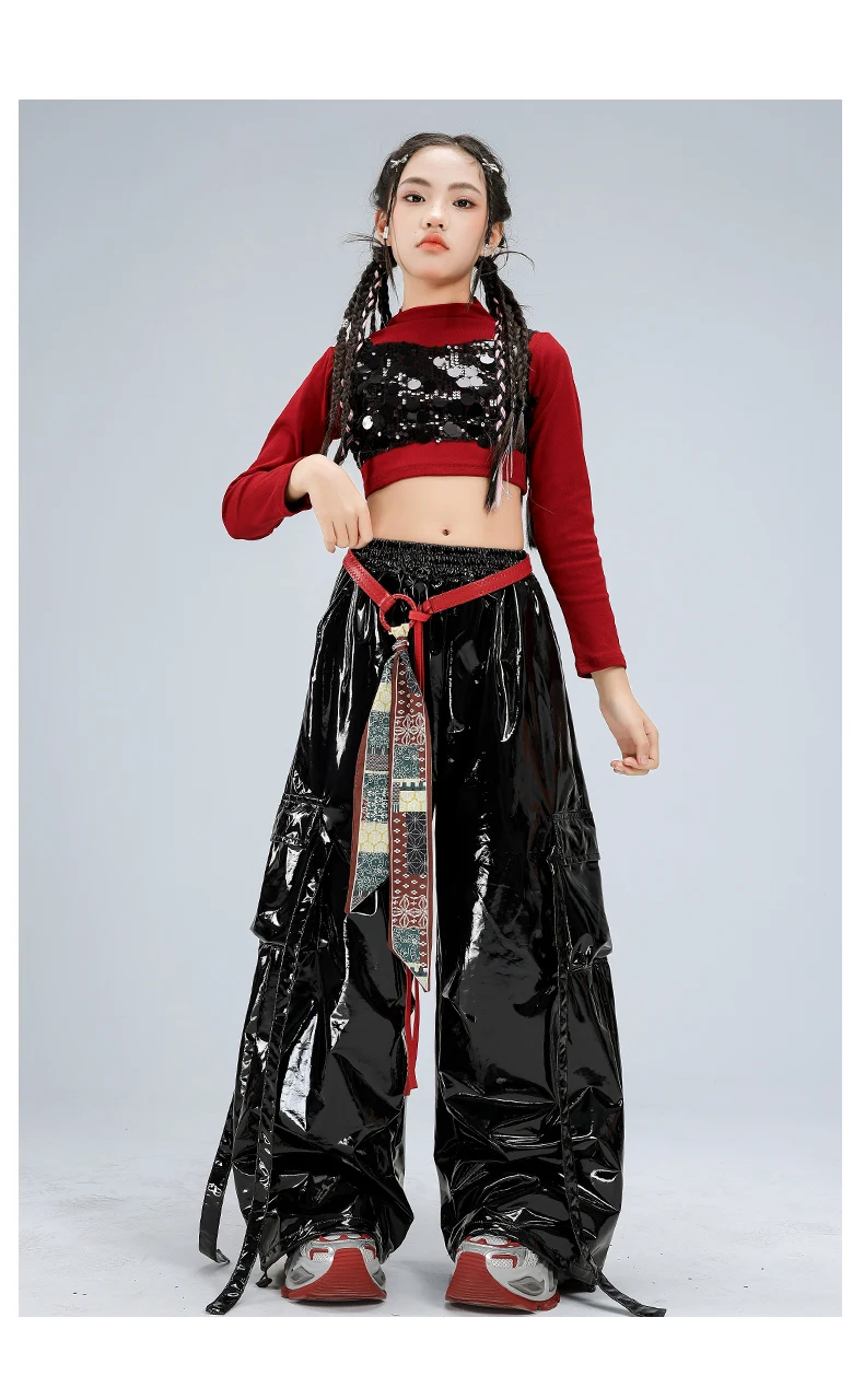 Girls Streetwear Sparkly Crop Top Sequined Pants Child Hip Hop Modern Dancing Clothes Sets Kids Cool Street Dance Jazz Costume