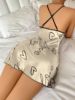 Heart Letter Print Nightdress Casual Round Neck Spaghetti Strap Sleep Dress Women’s Sleepwear Dresses