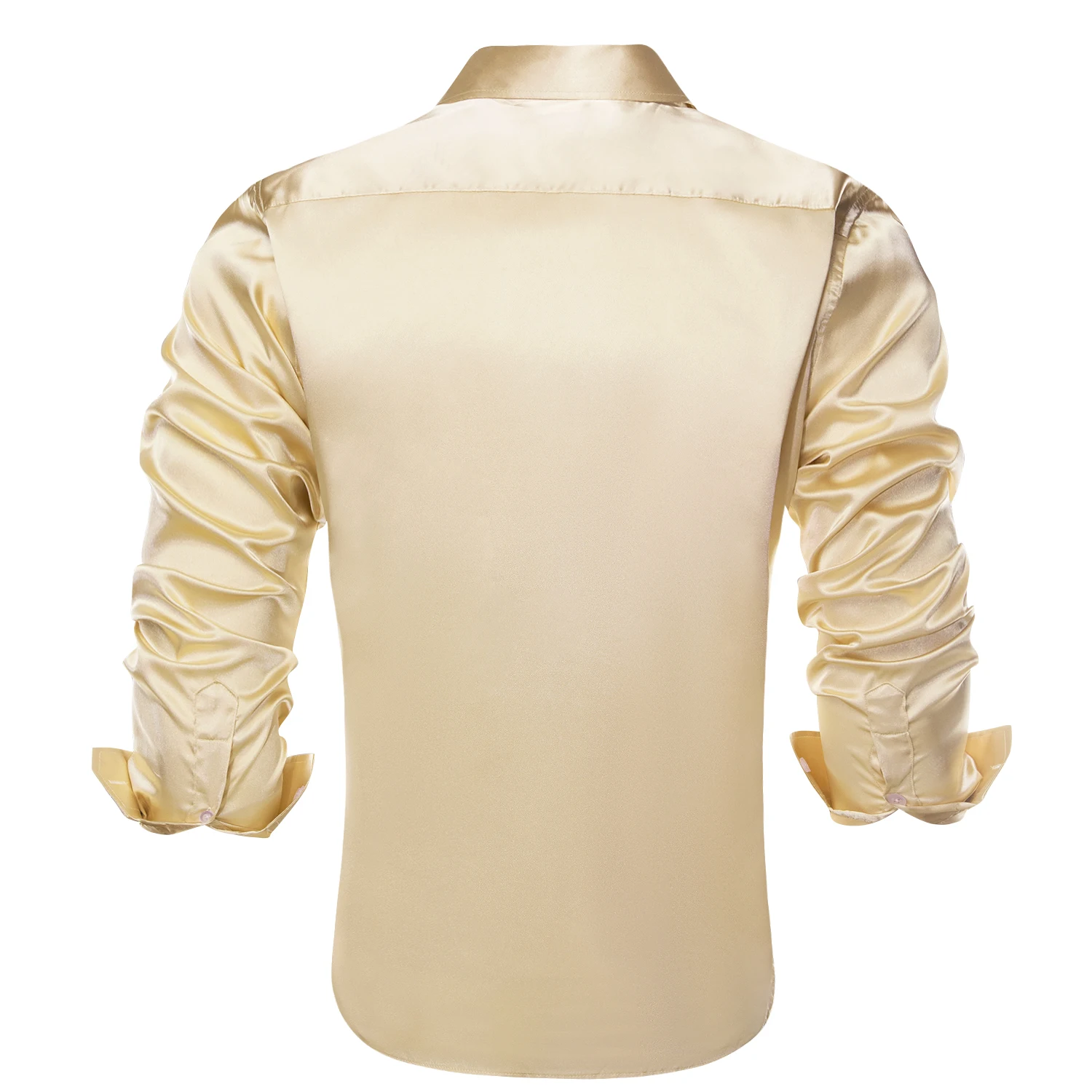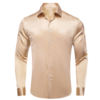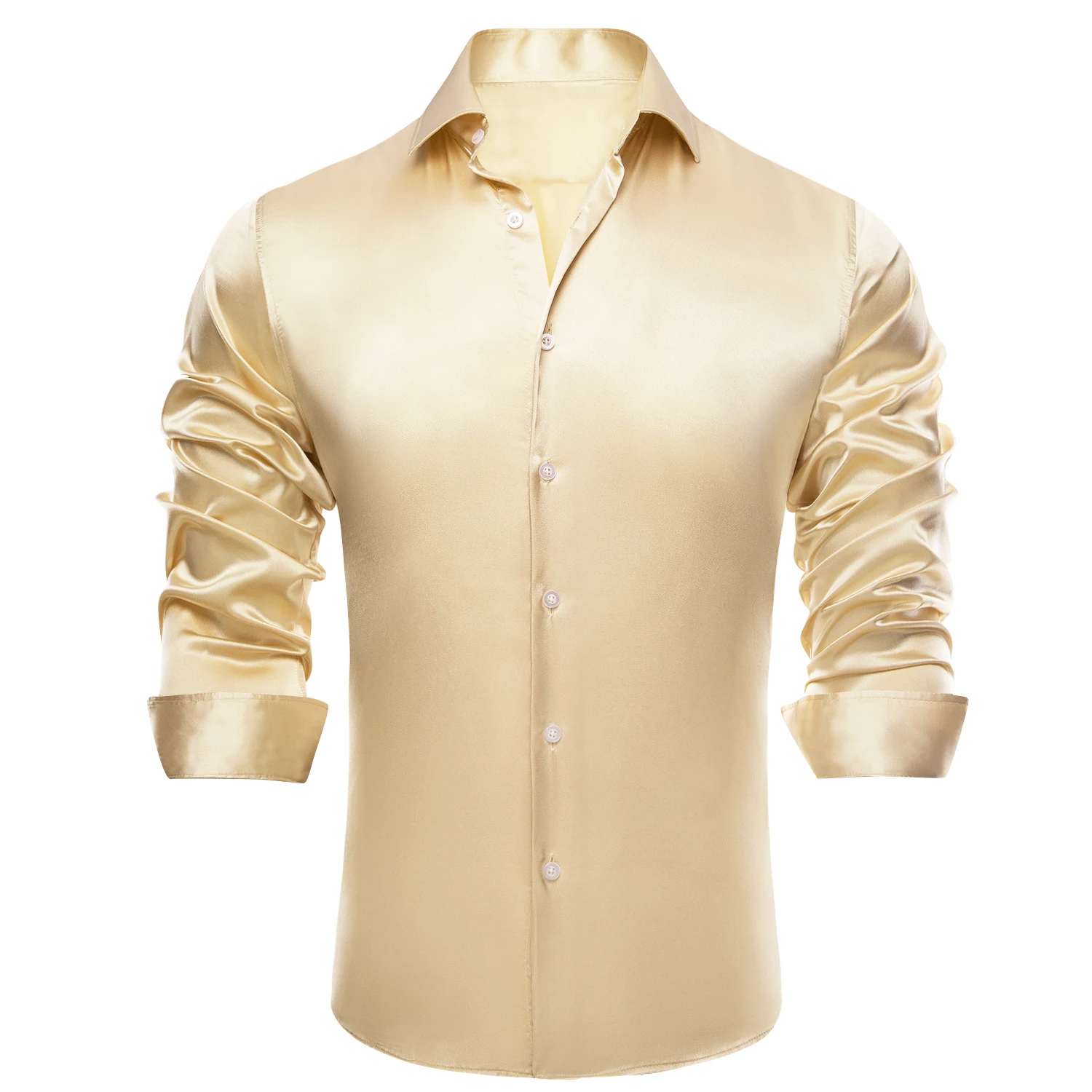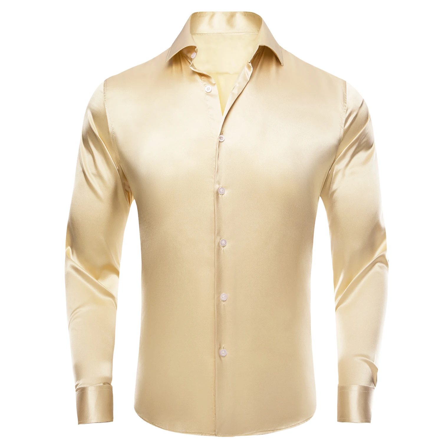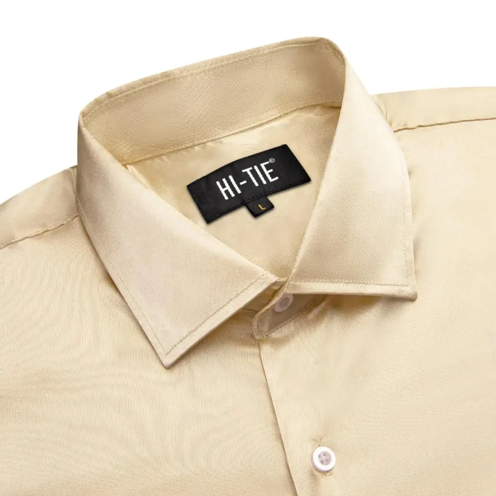 Hi-Tie Champagne Solid Mens Shirts Lapel Long Sleeve Dress Shirt Soft Blouse for Male Formal Casual Wedding Business Gift