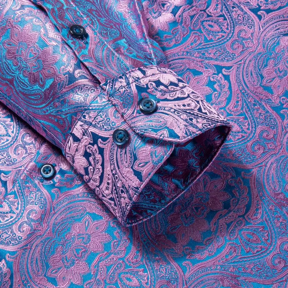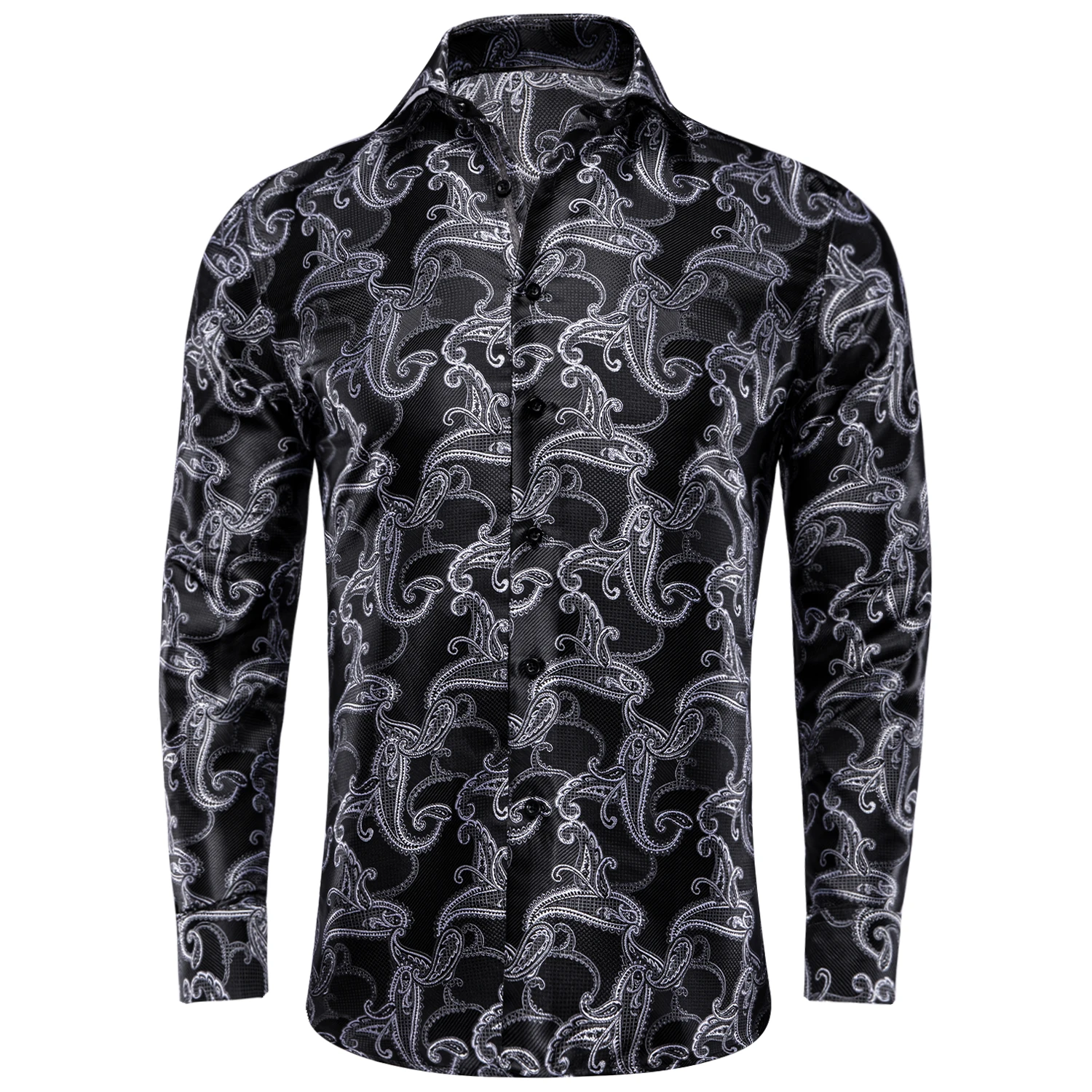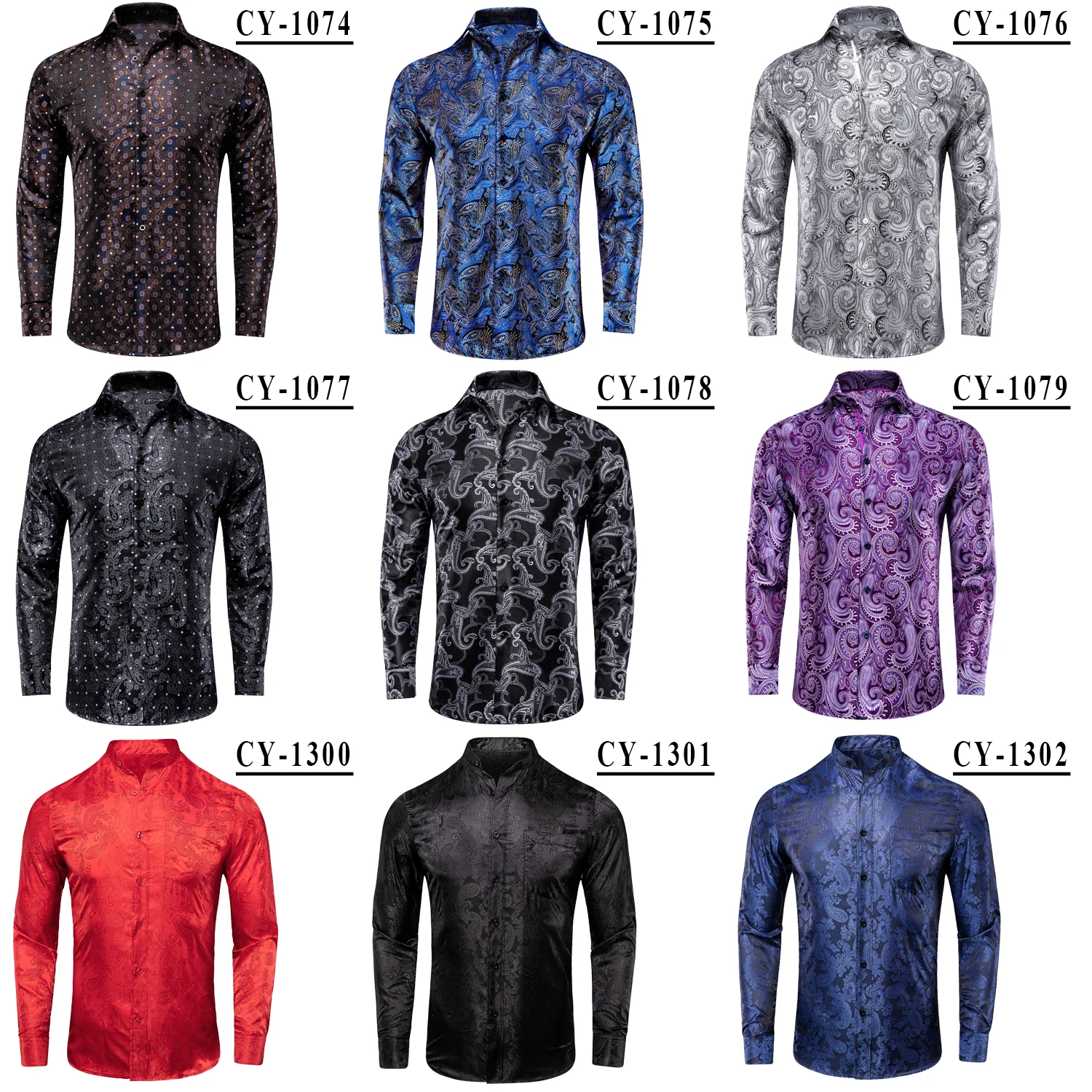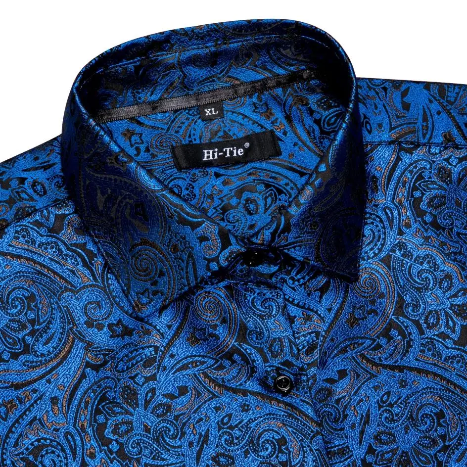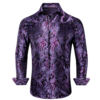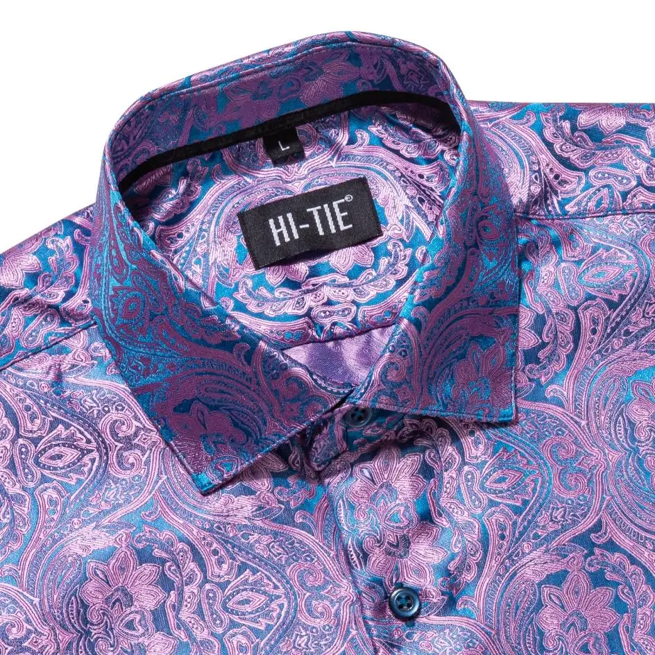 Hi-Tie Silk Mens Shirts Woven Male Outwear Long Sleeve Men Shirt Slim Fit Floral Paisley For Dress Suit Business Formal Casual