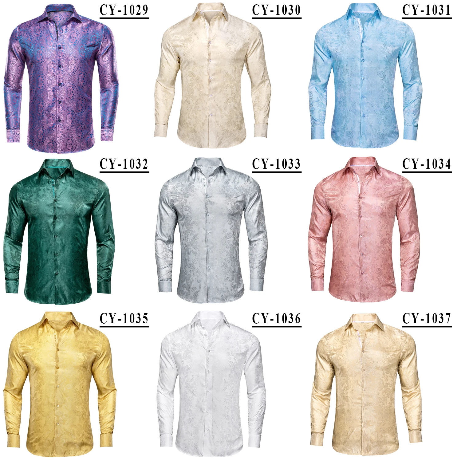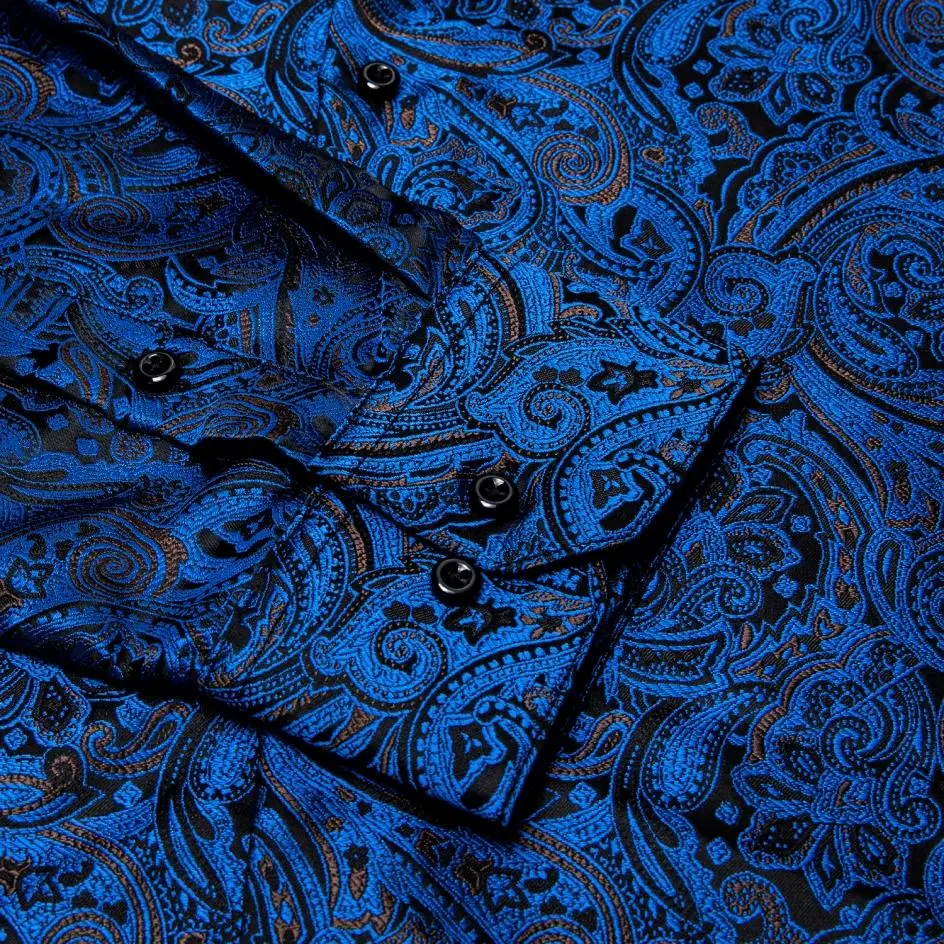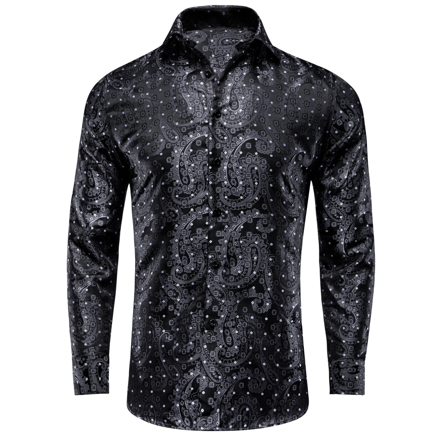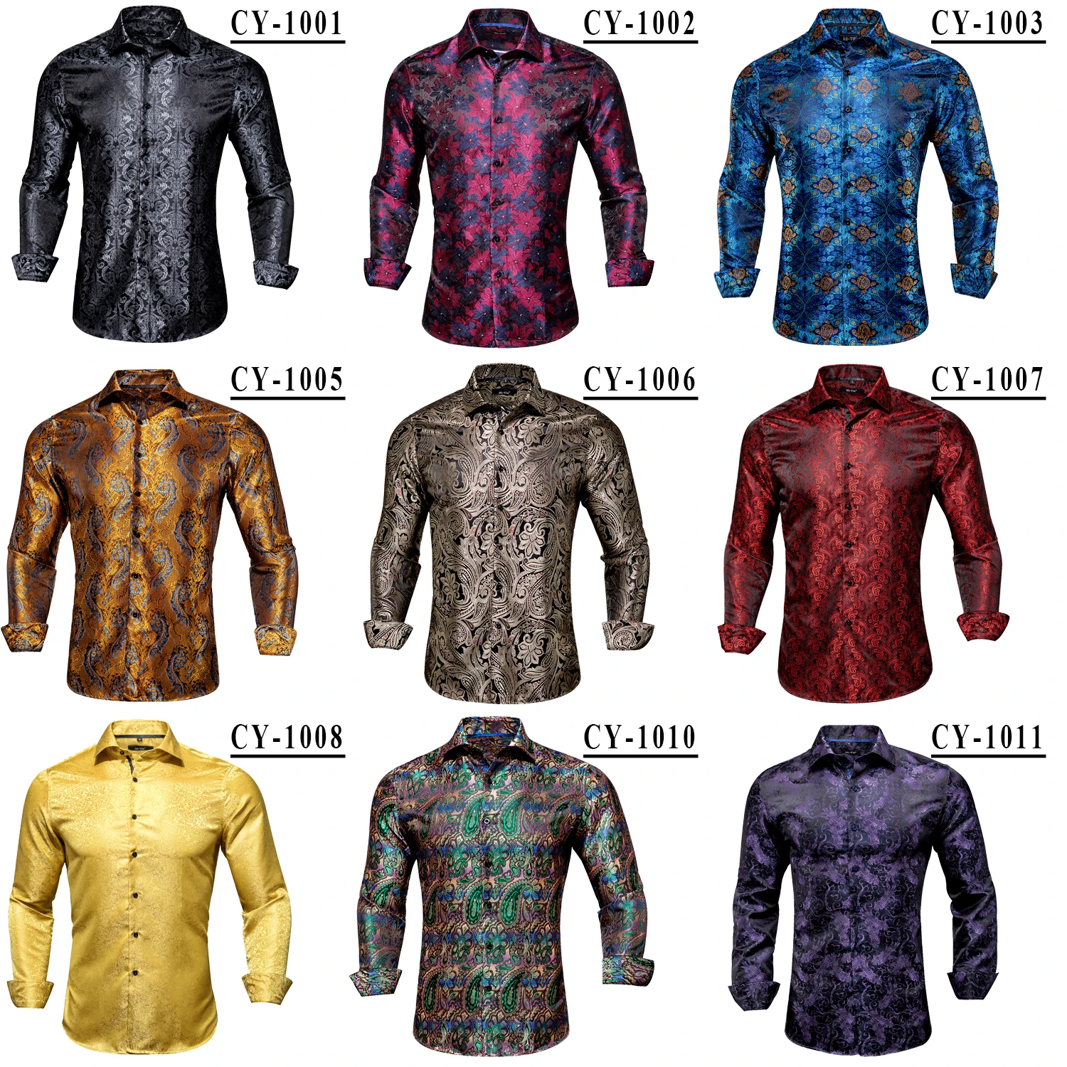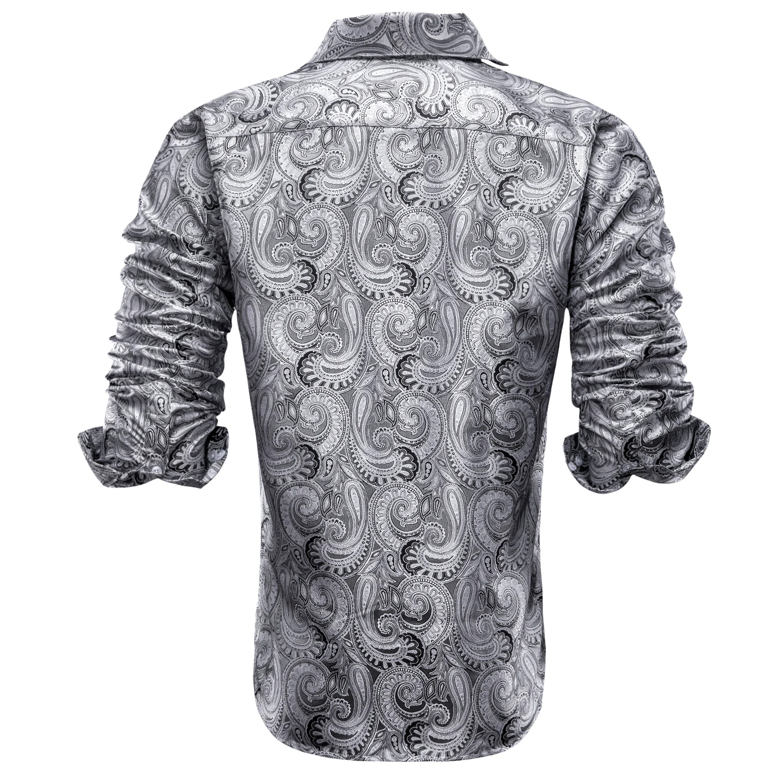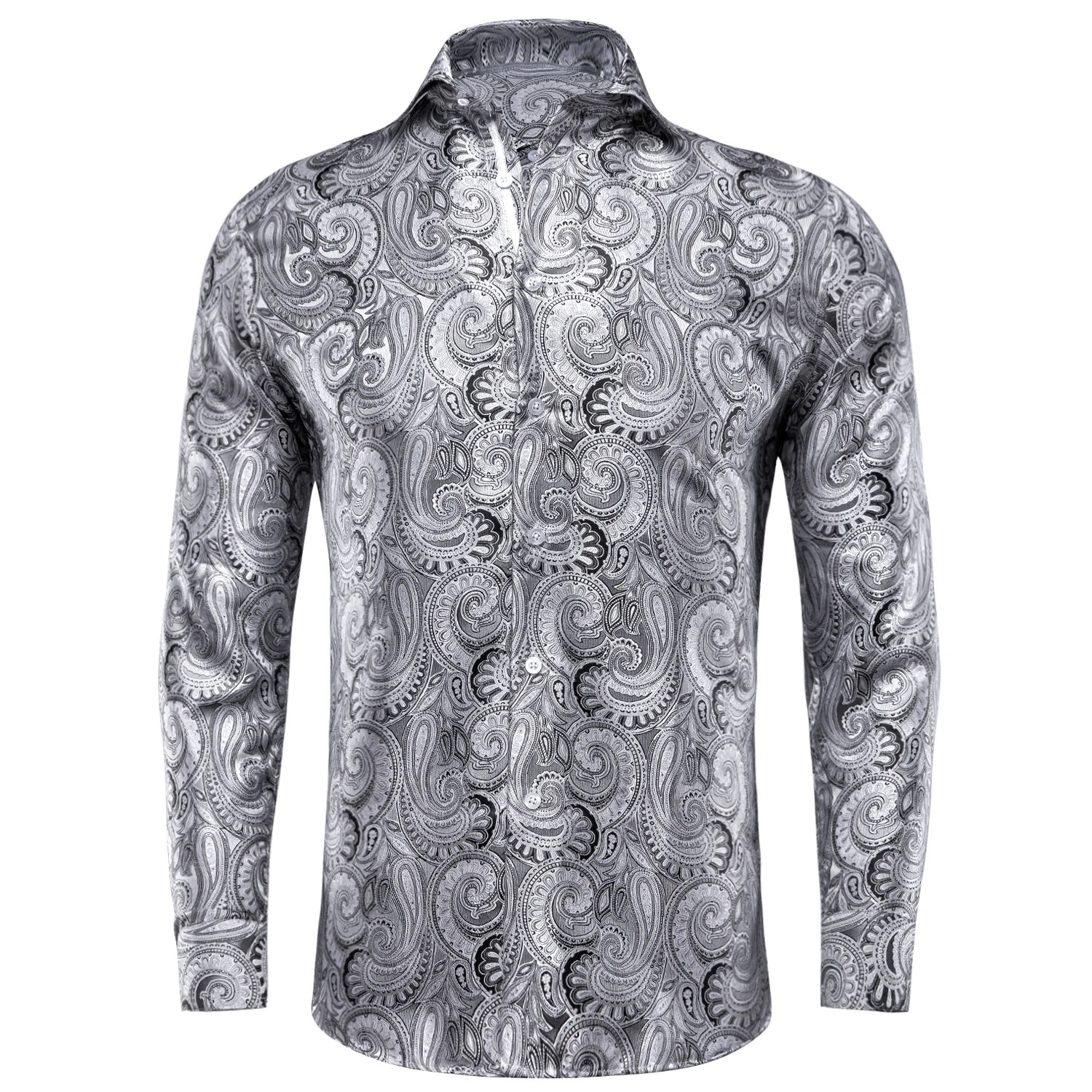 Hi-Tie Silk Mens Shirts Woven Male Outwear Long Sleeve Men Shirt Slim Fit Floral Paisley For Dress Suit Business Formal Casual
