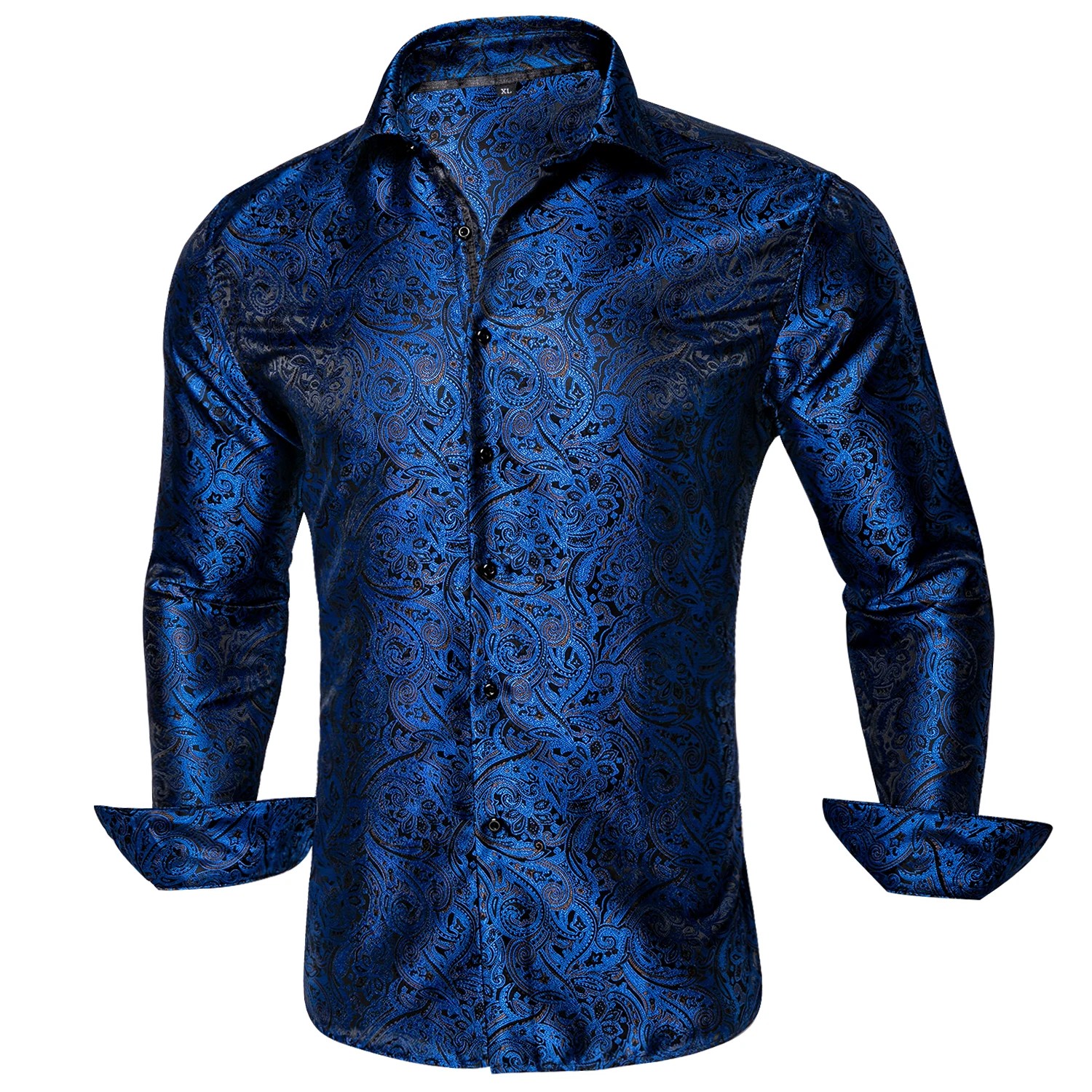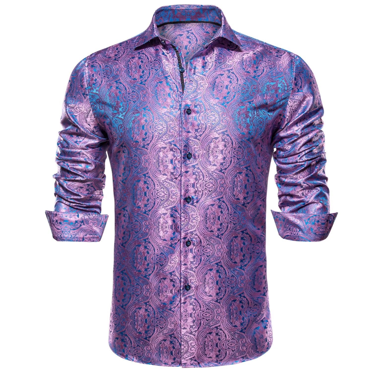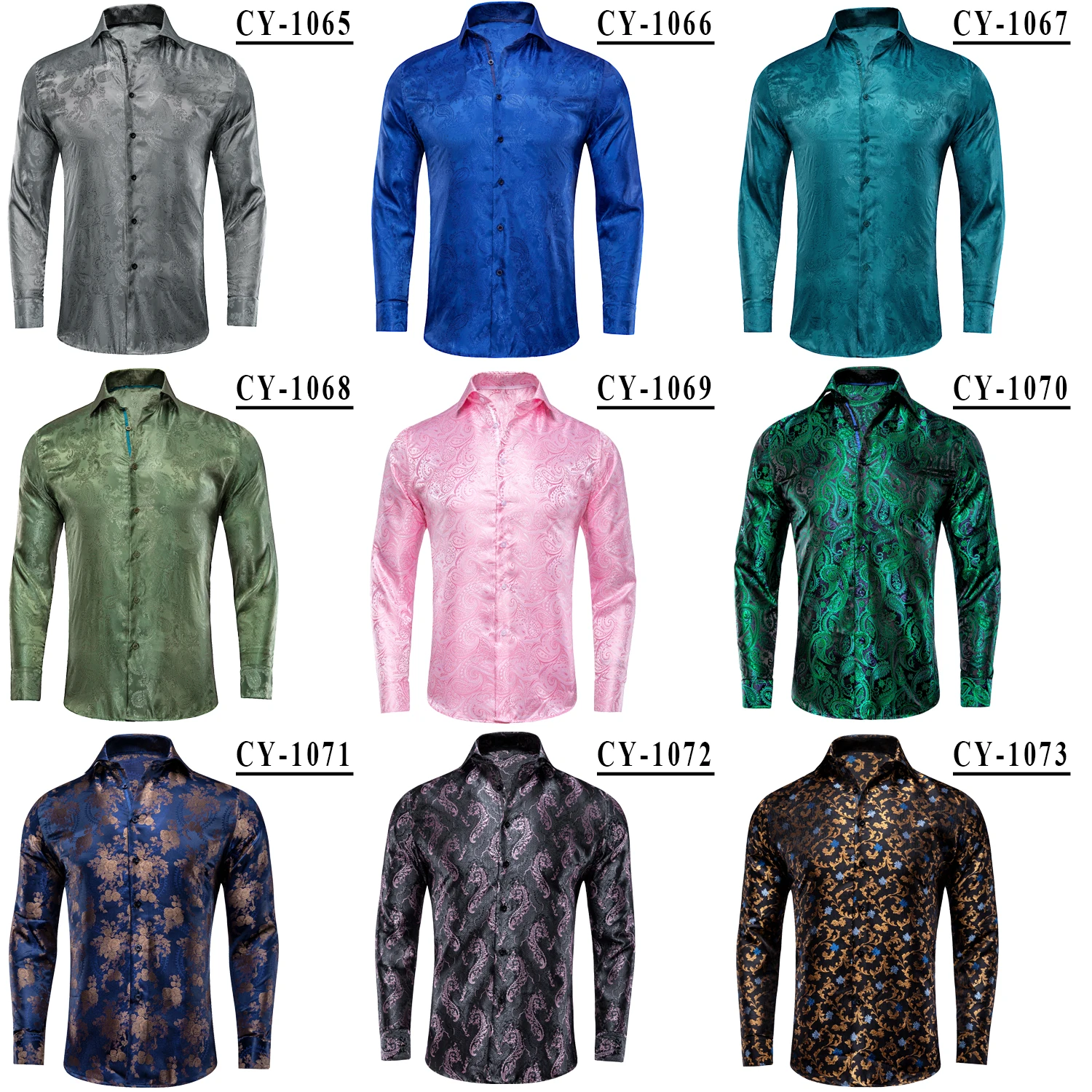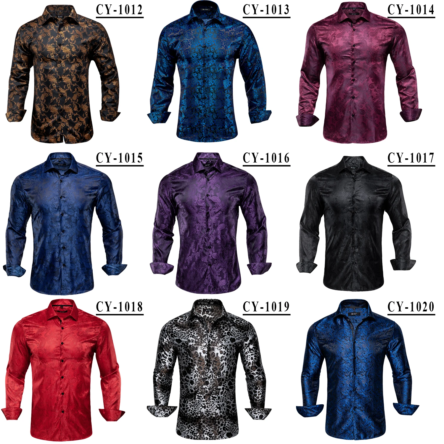 Hi-Tie Silk Mens Shirts Woven Male Outwear Long Sleeve Men Shirt Slim Fit Floral Paisley For Dress Suit Business Formal Casual