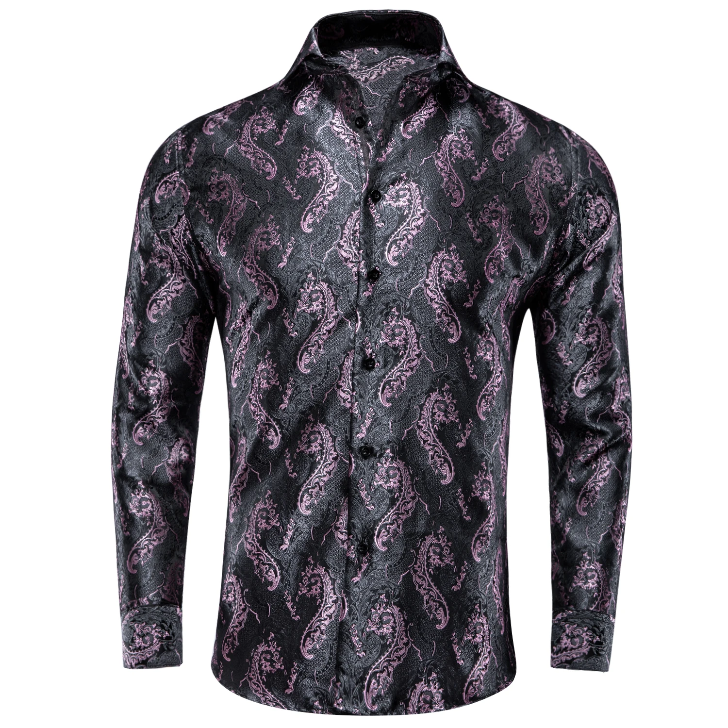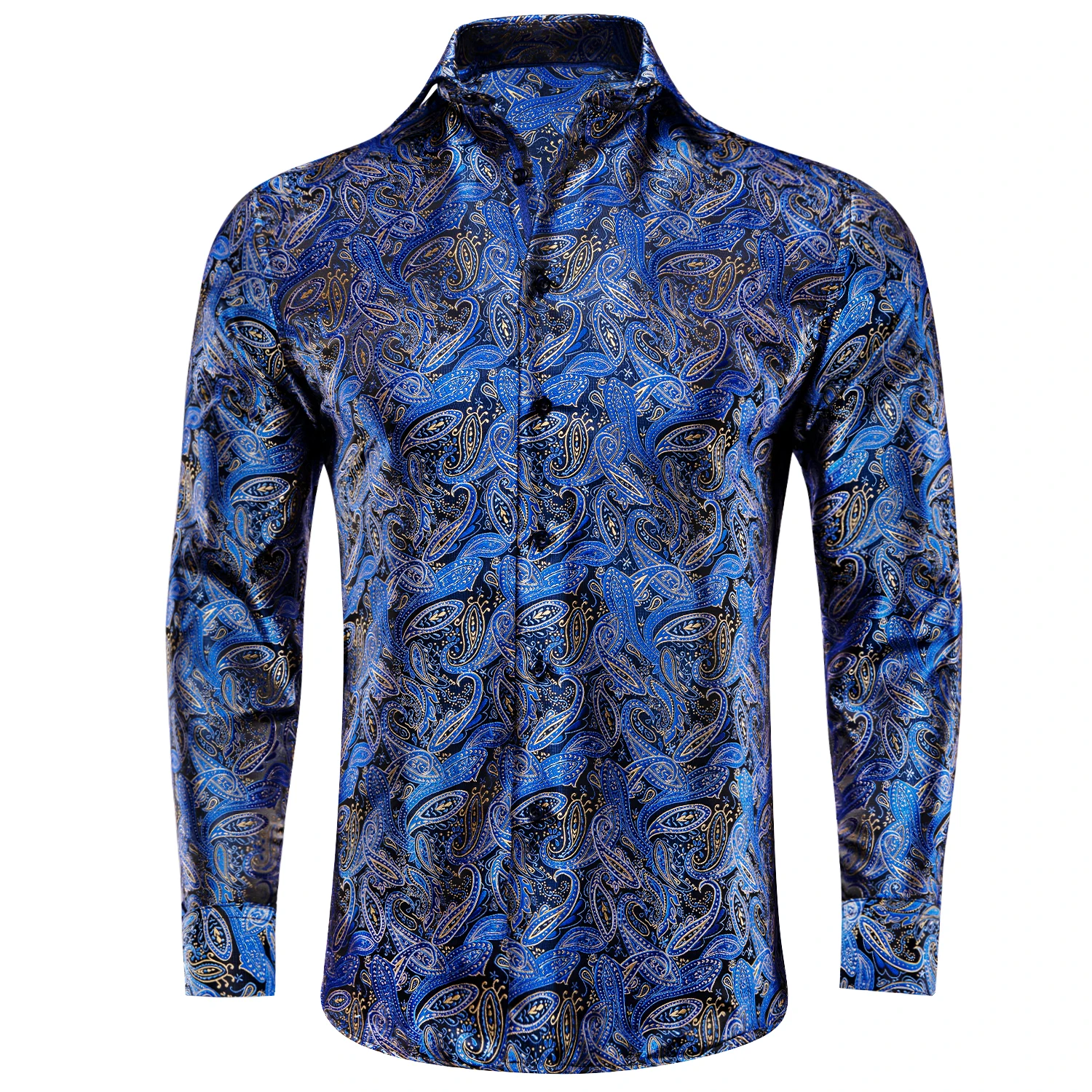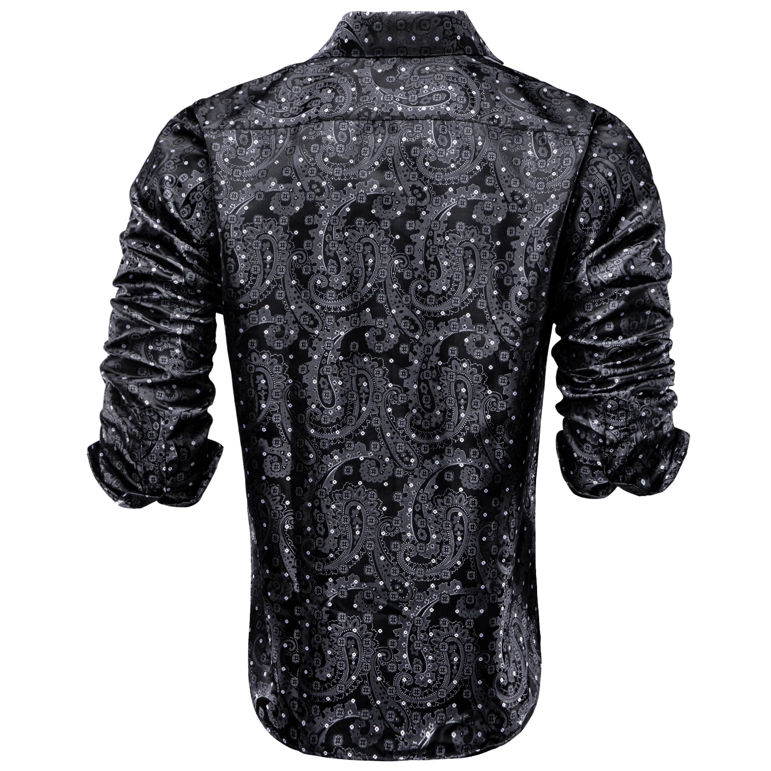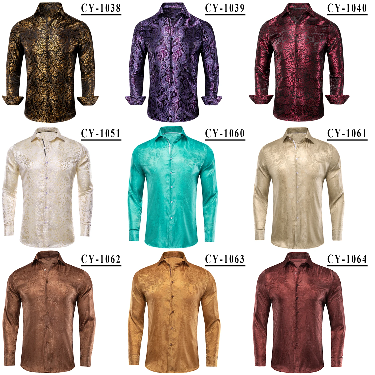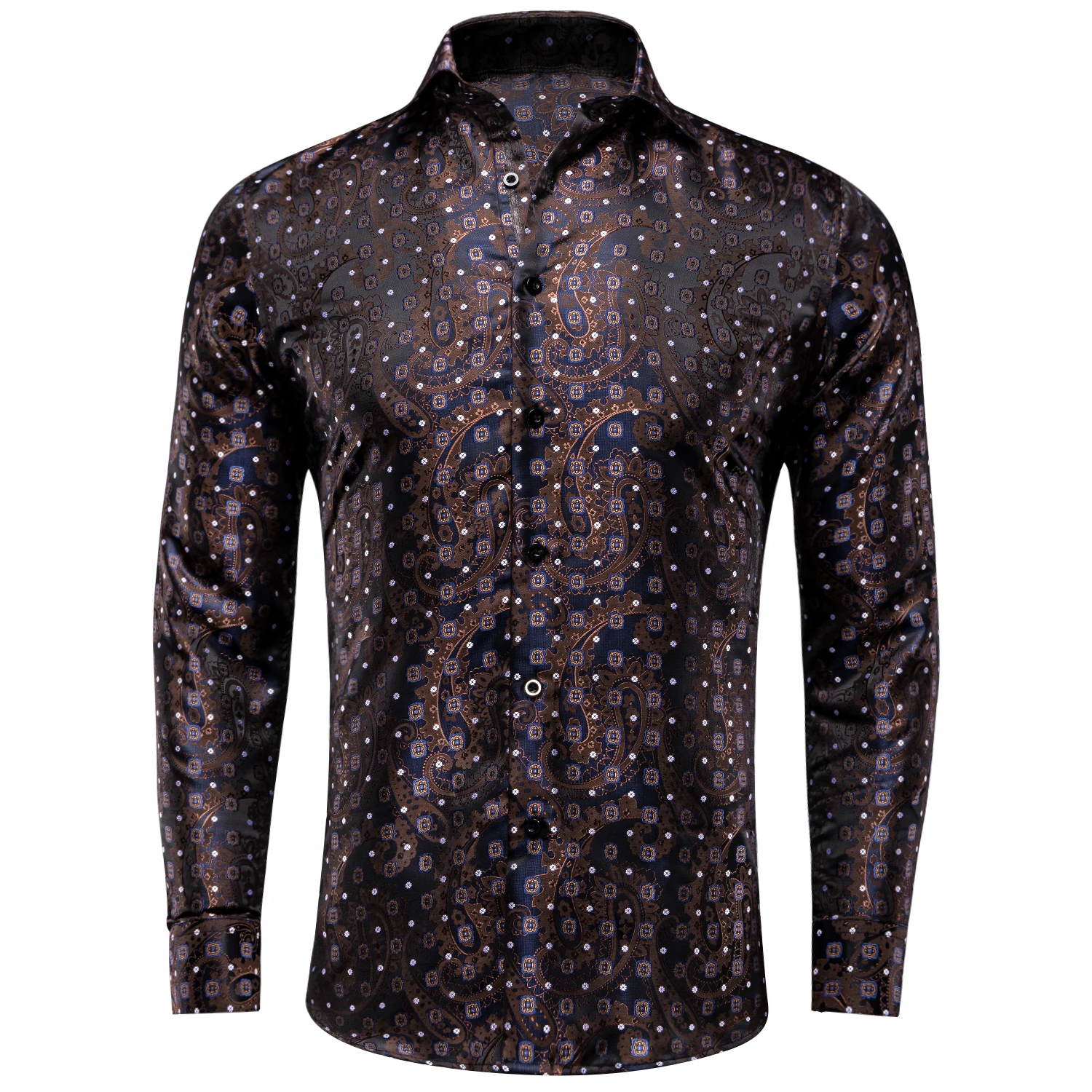 Hi-Tie Silk Mens Shirts Woven Male Outwear Long Sleeve Men Shirt Slim Fit Floral Paisley For Dress Suit Business Formal Casual