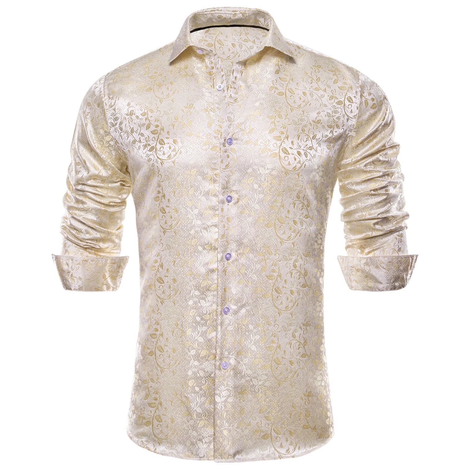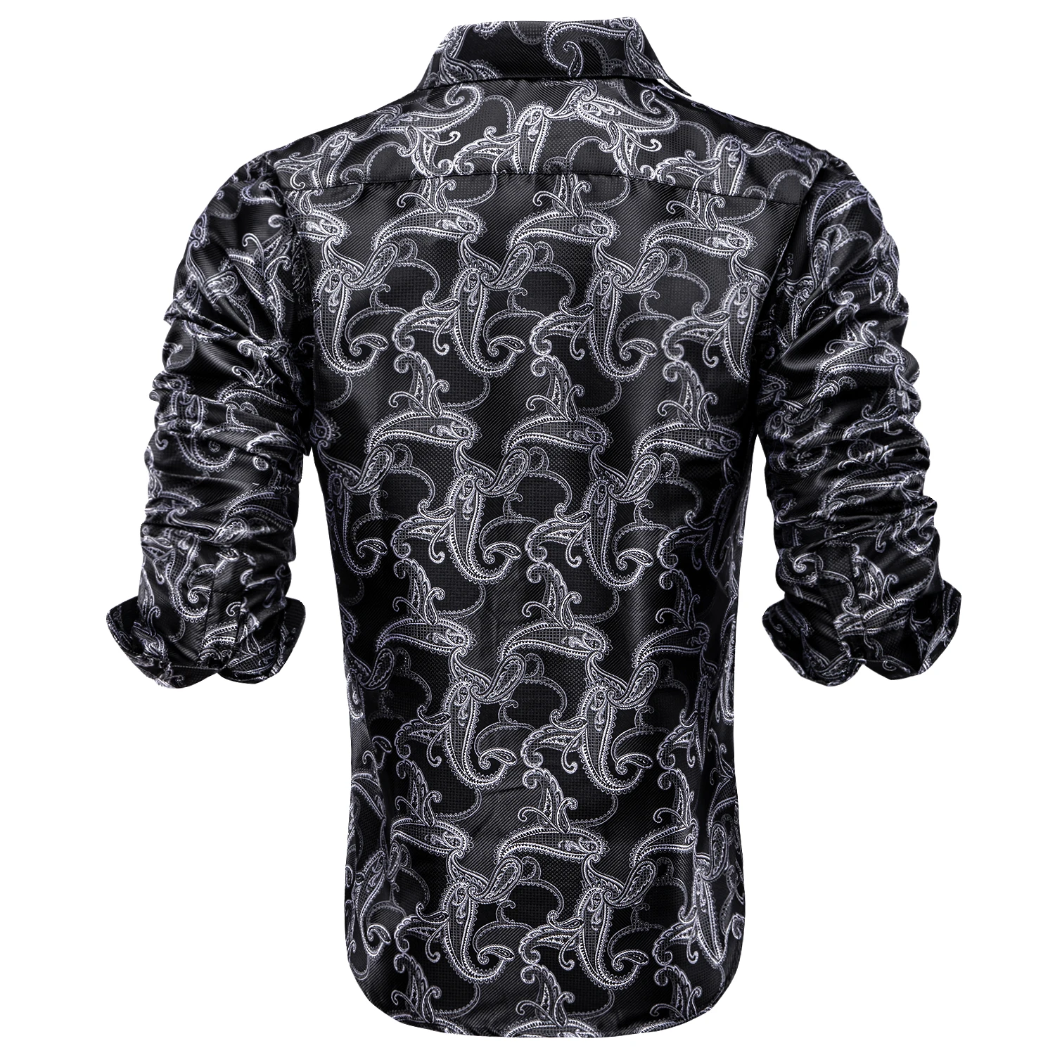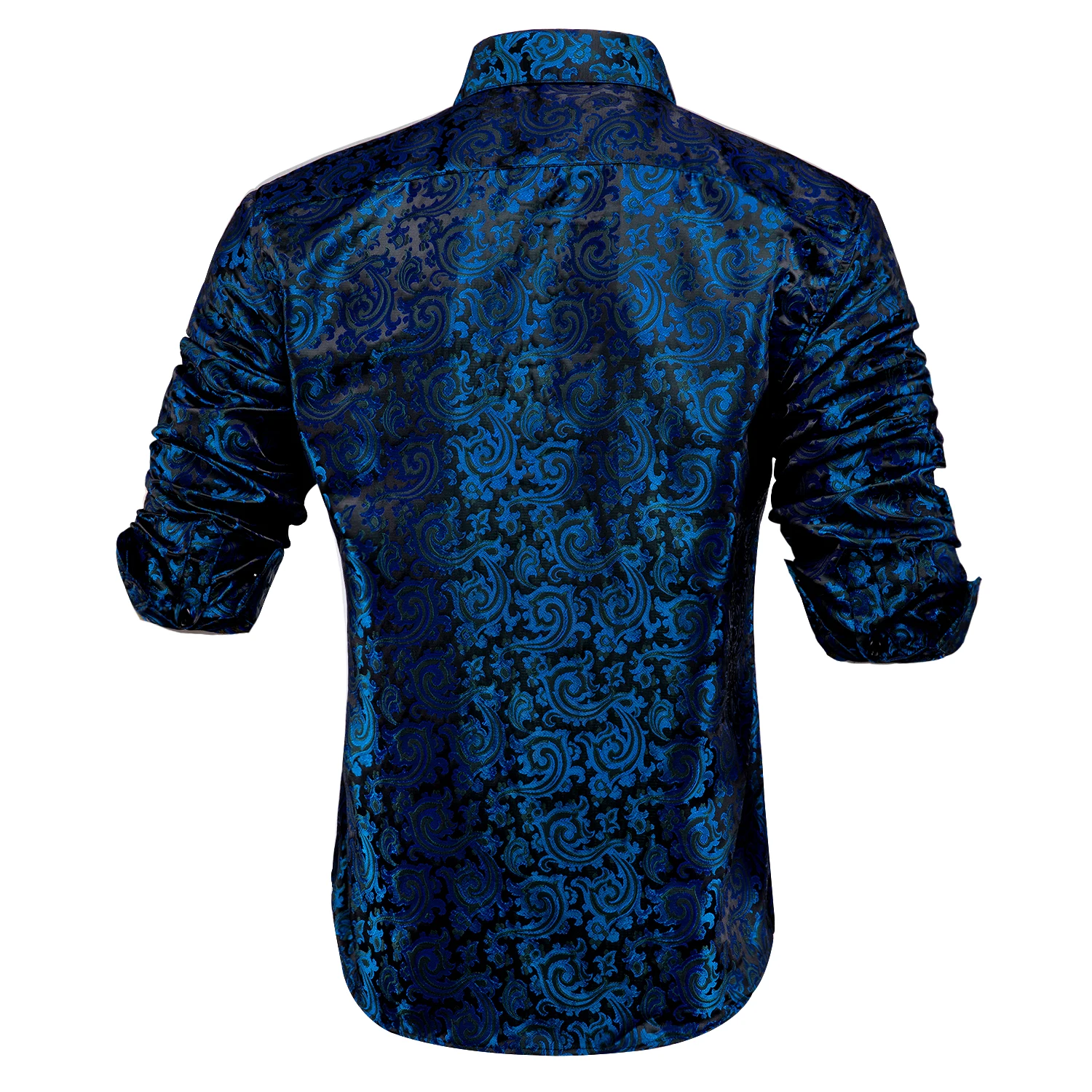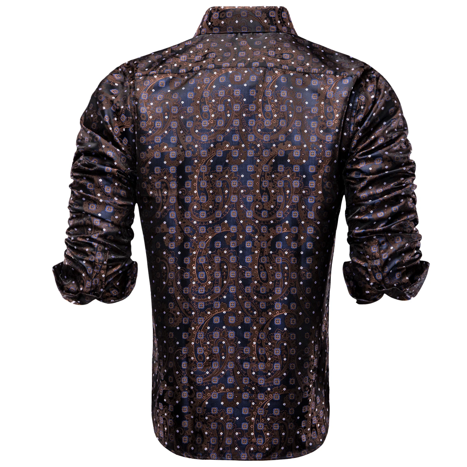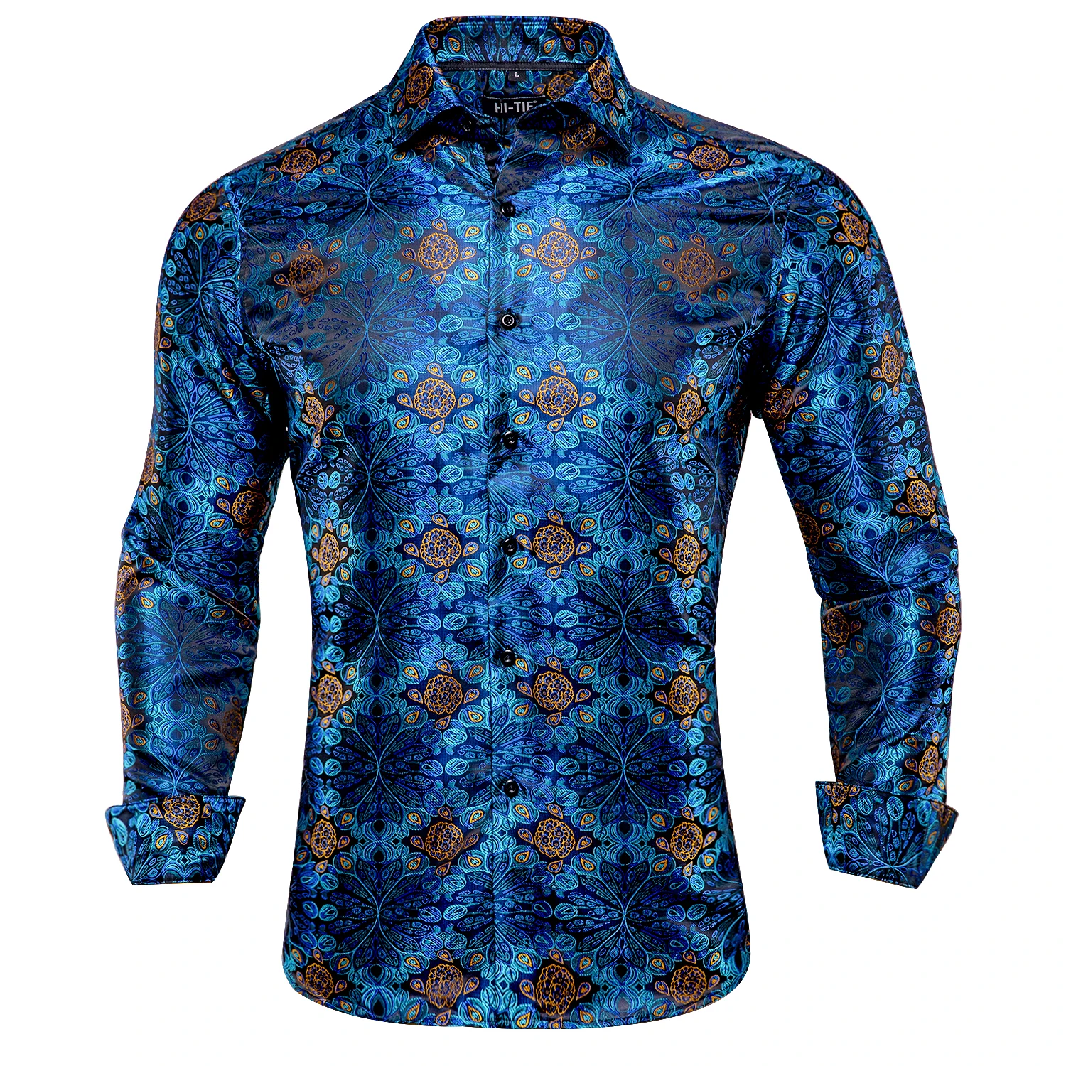 Hi-Tie Silk Mens Shirts Woven Male Outwear Long Sleeve Men Shirt Slim Fit Floral Paisley For Dress Suit Business Formal Casual