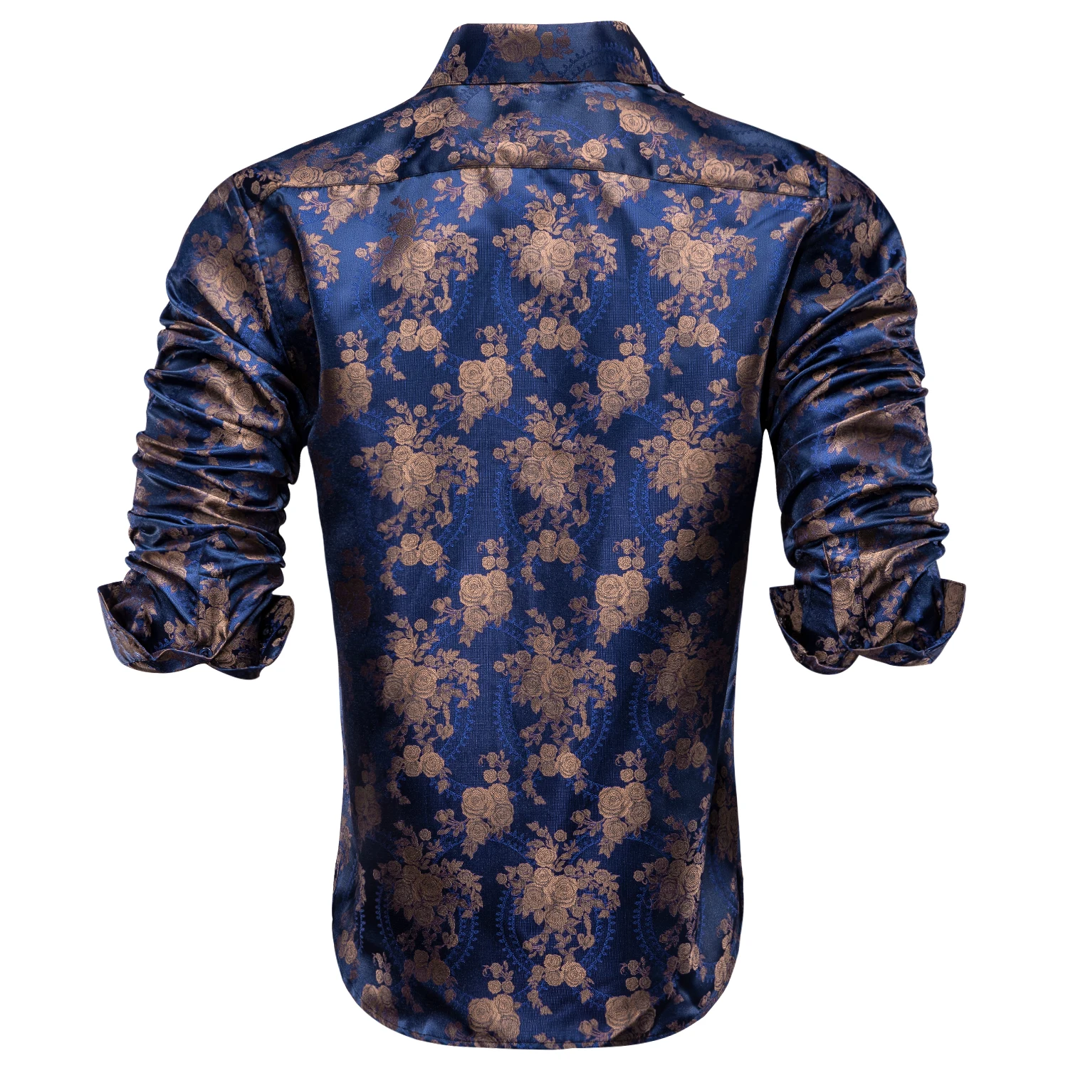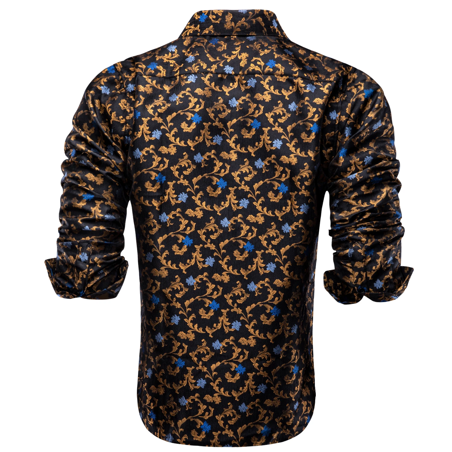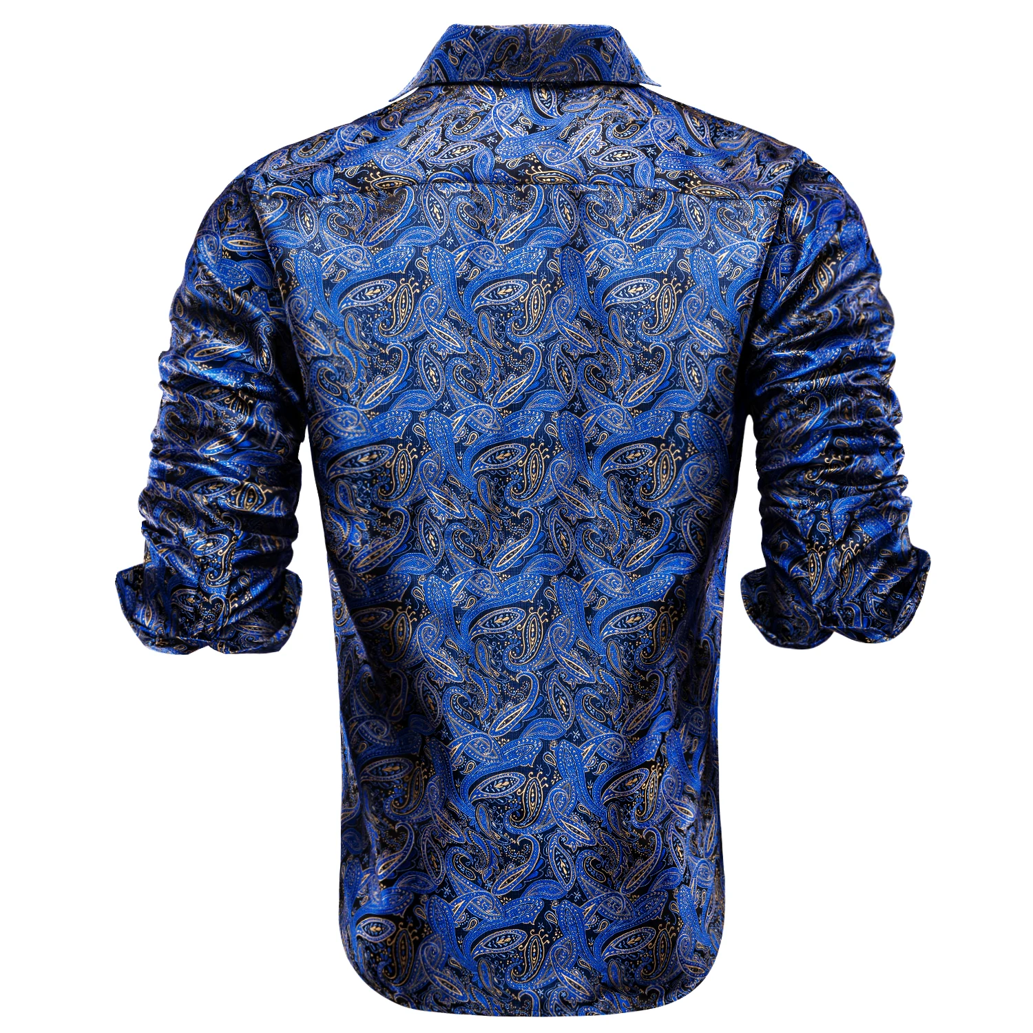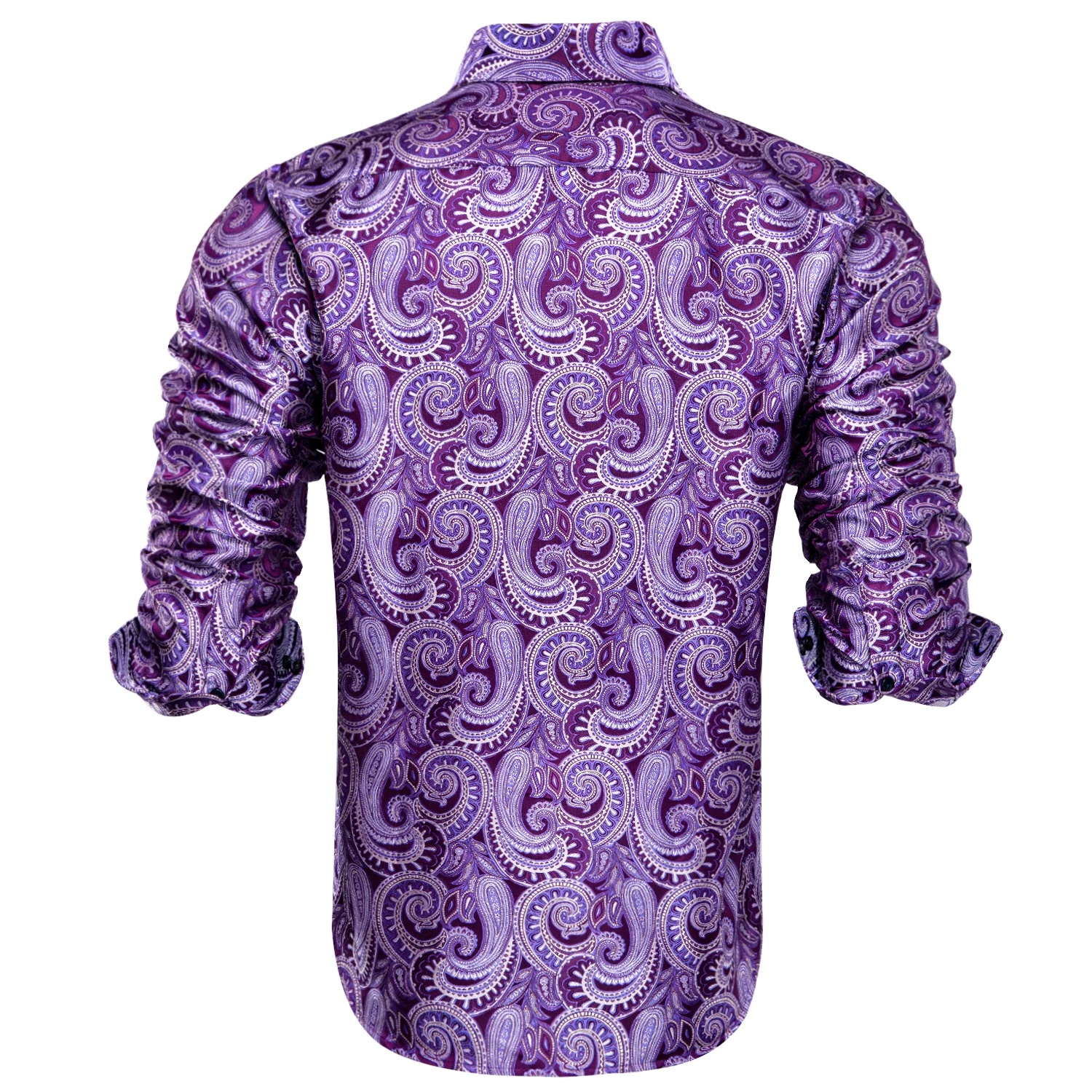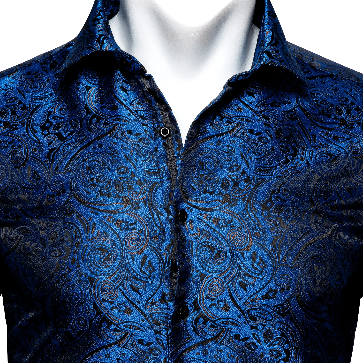 Hi-Tie Silk Mens Shirts Woven Male Outwear Long Sleeve Men Shirt Slim Fit Floral Paisley For Dress Suit Business Formal Casual