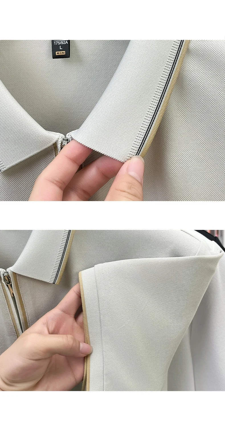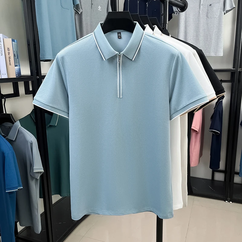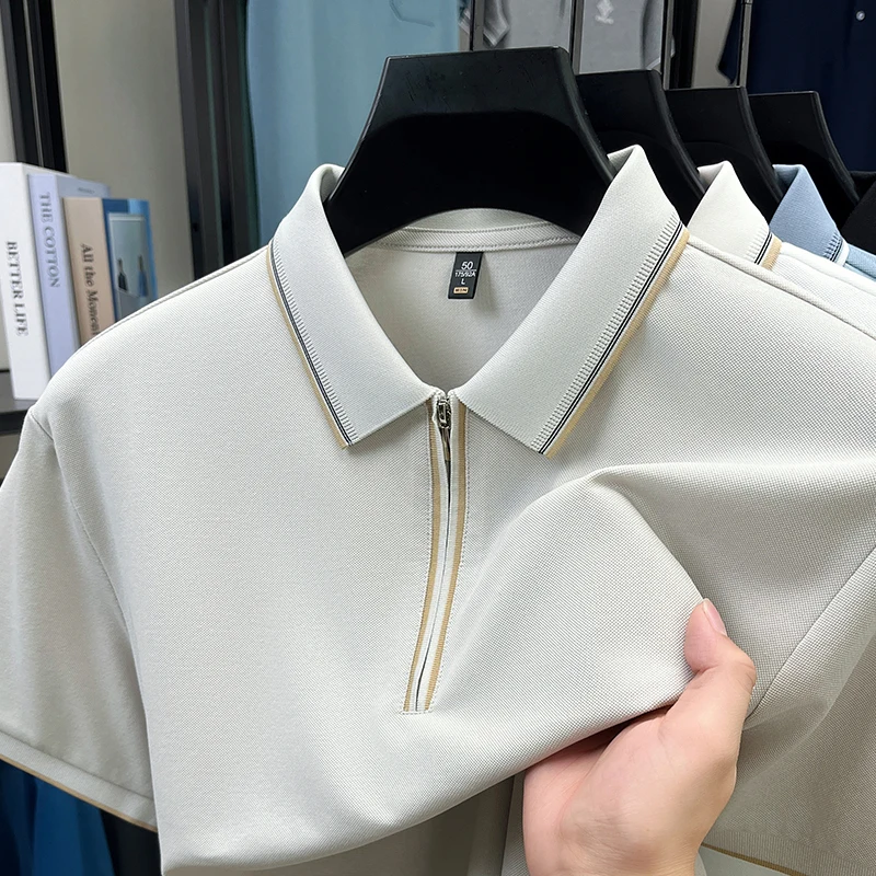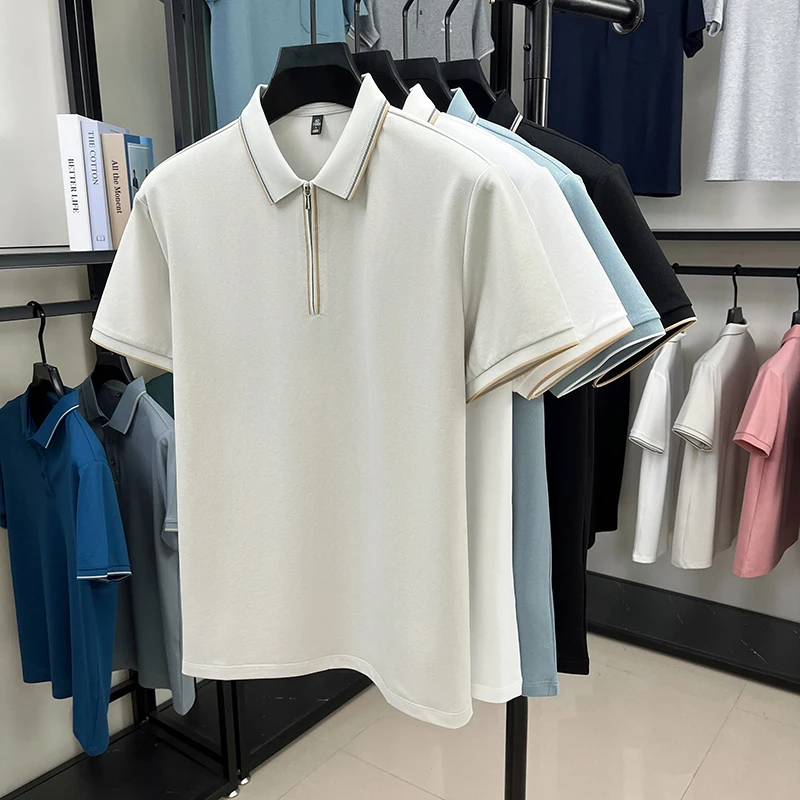 High end brand silk cotton polo shirt zipper design men’s T-shirt summer fashion comfort breath casual solid color short sleeve